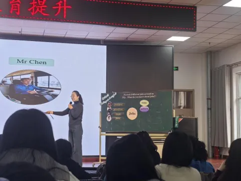 课标解读后,培训进入说课与课例展示环节。首先,区三实验小学白天佑主任围绕新教材四年级下册Unit3 “What's great about jobs?”进行单元整体教学设计说课。白主任从新课标核心素养要求出发,明确单元主题意义与育人目标,梳理了“不同职业认知—职业职责探究—梦想职业畅谈—职业价值感悟”的问题链,解析语篇研读方法与4个课时的划分逻辑,为参训教师呈现了清晰完整的单元教学蓝图。