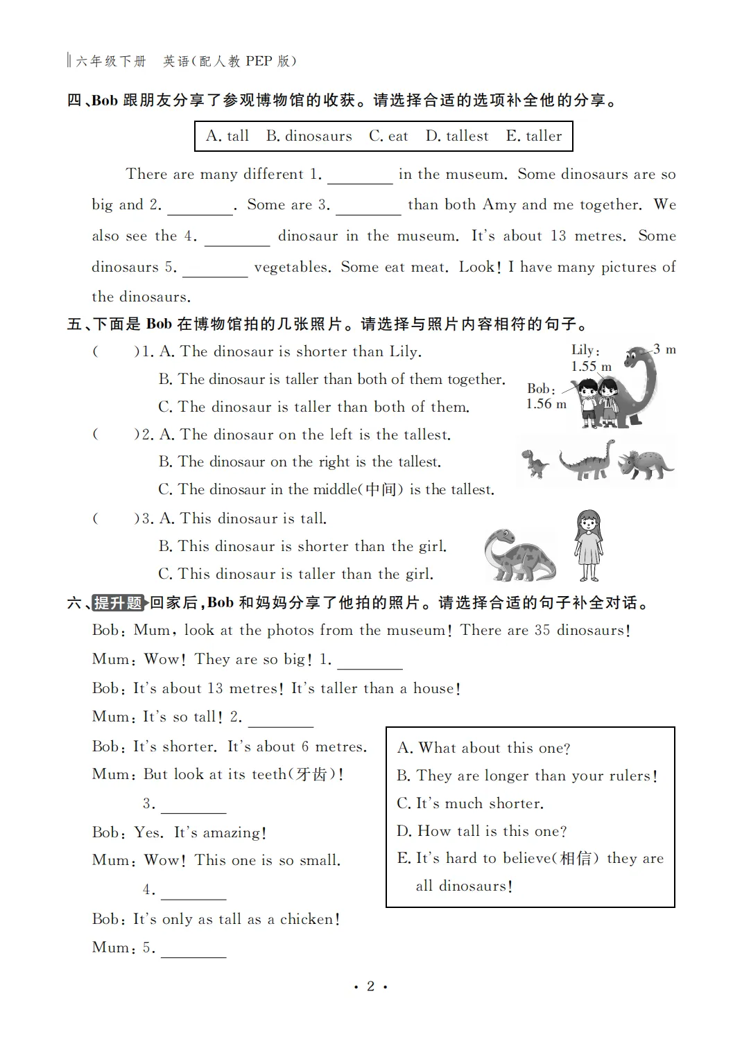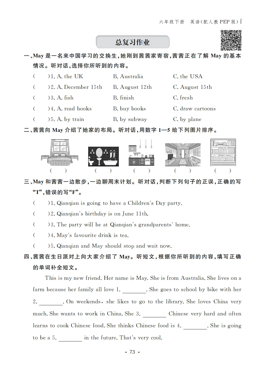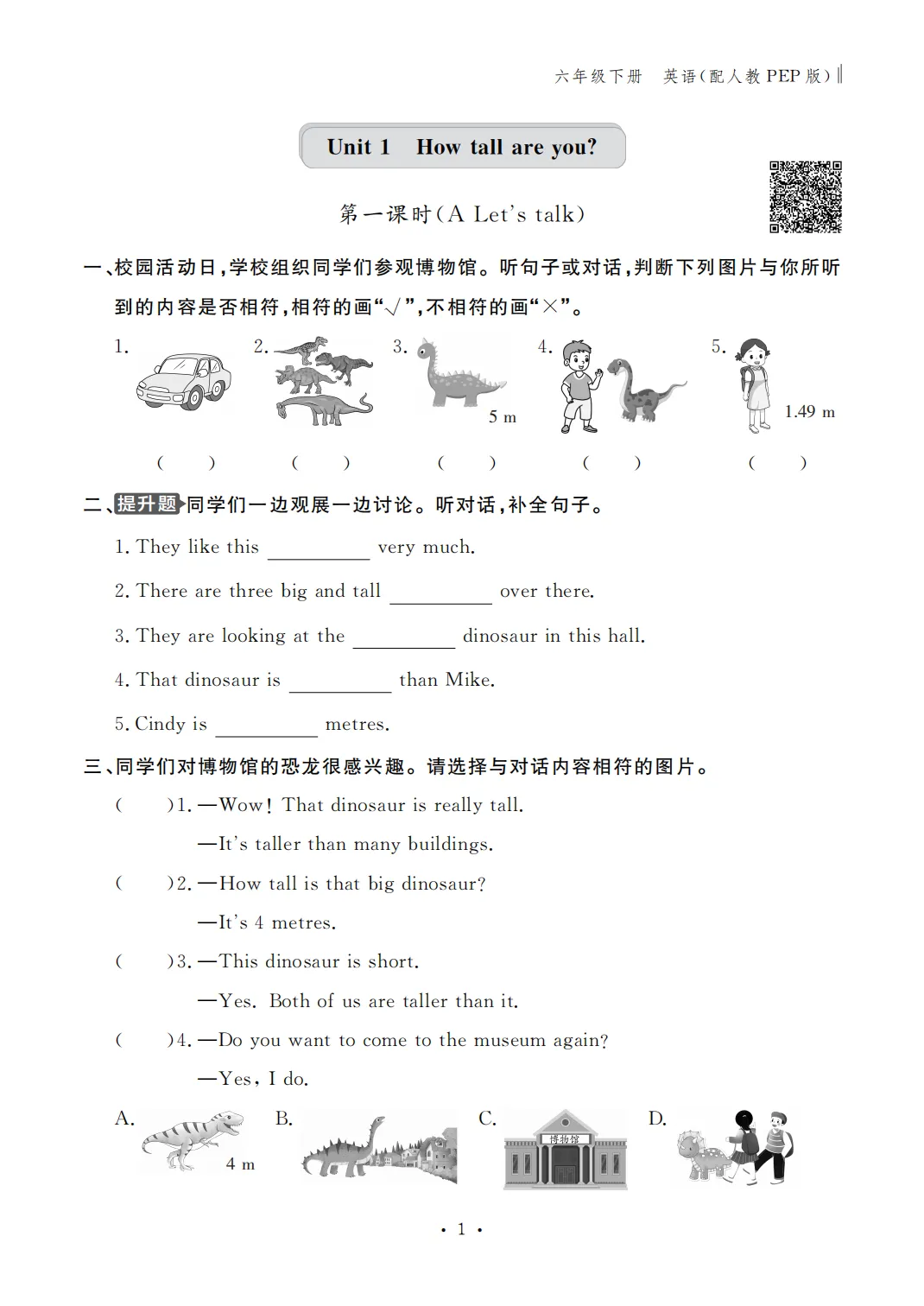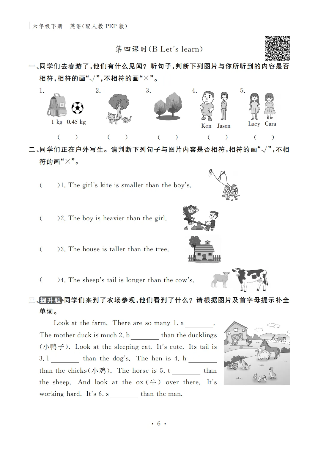 人教pep版六年级下册英语电子课本+小学英语同步教材点读小程序(免费点读)