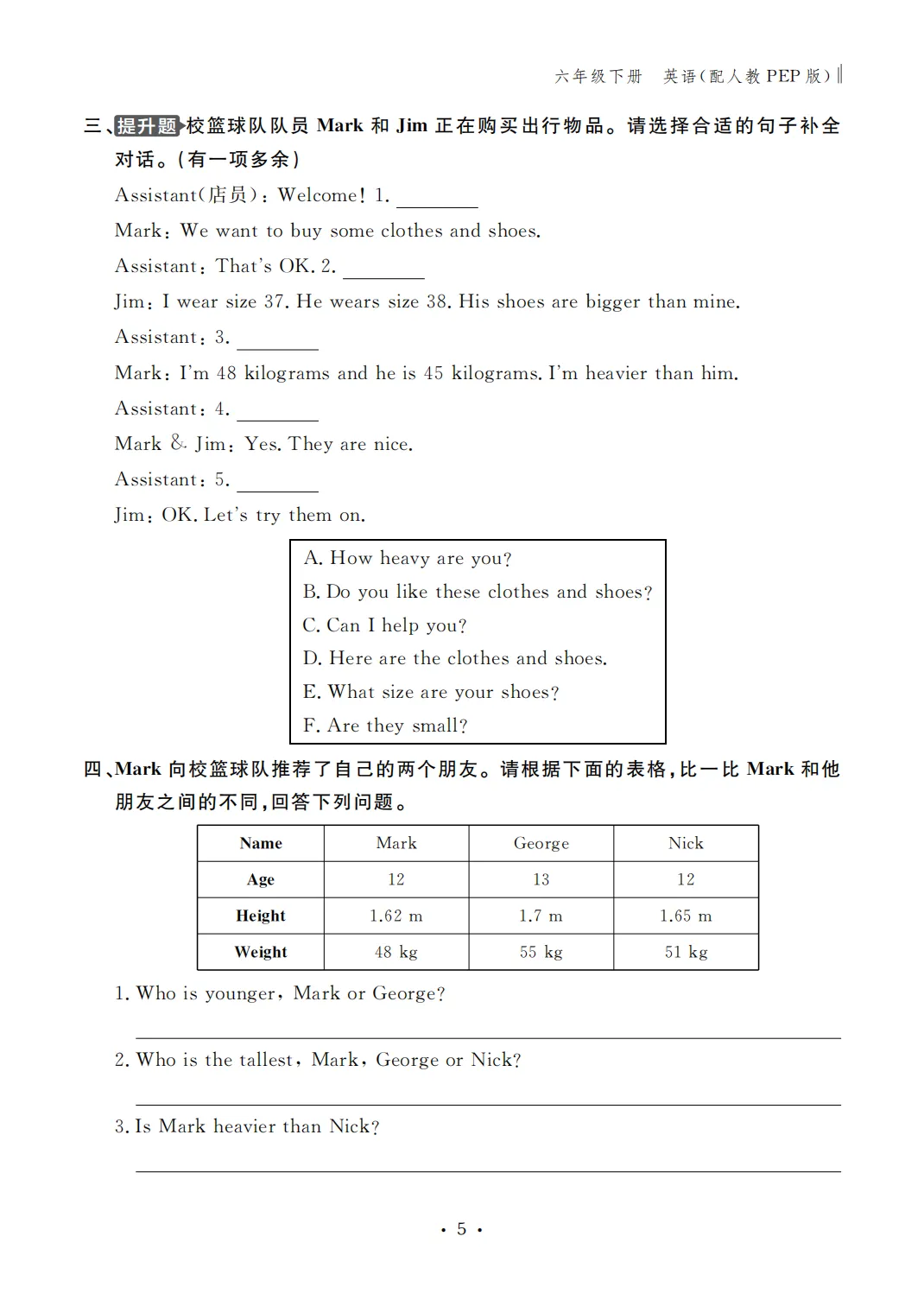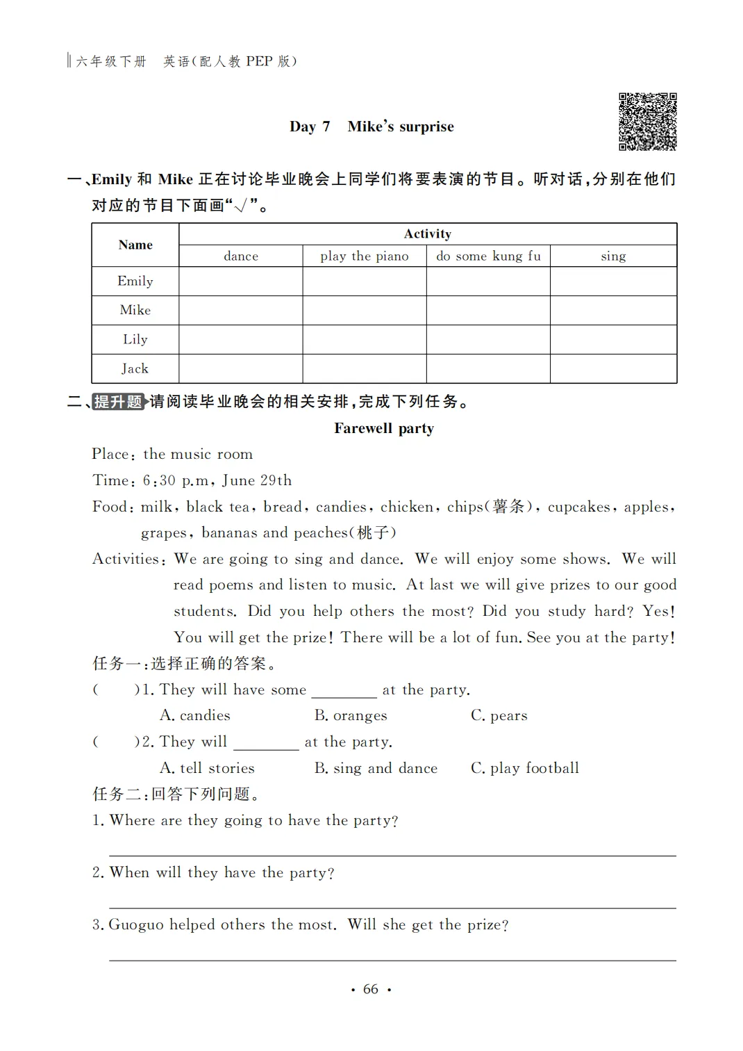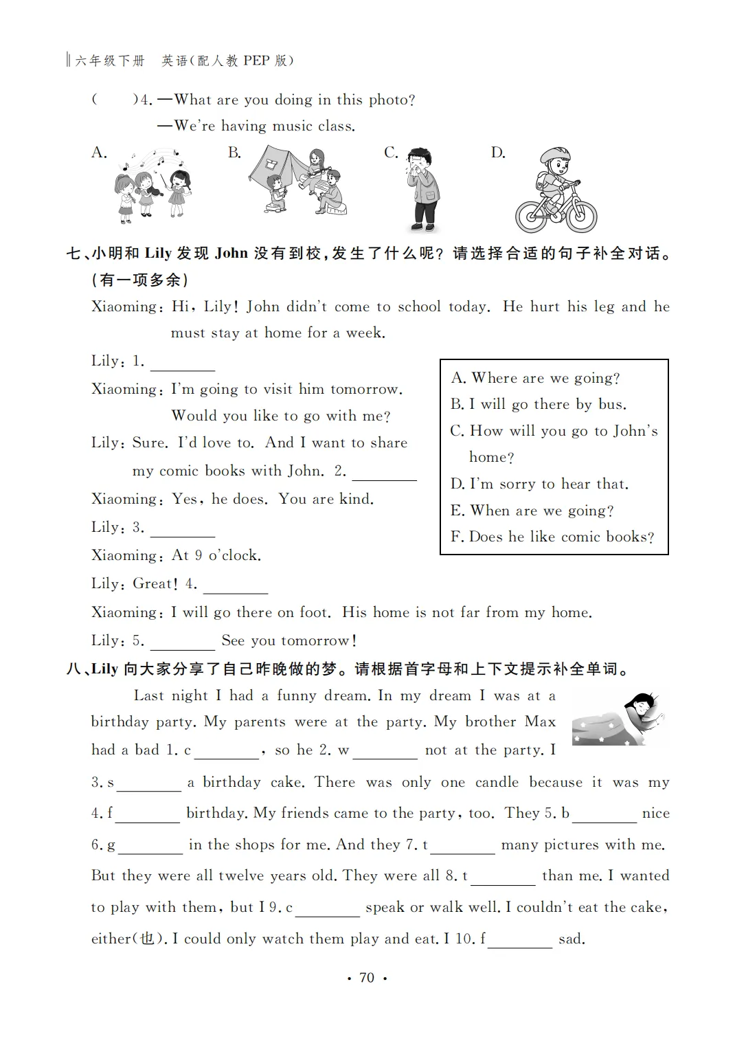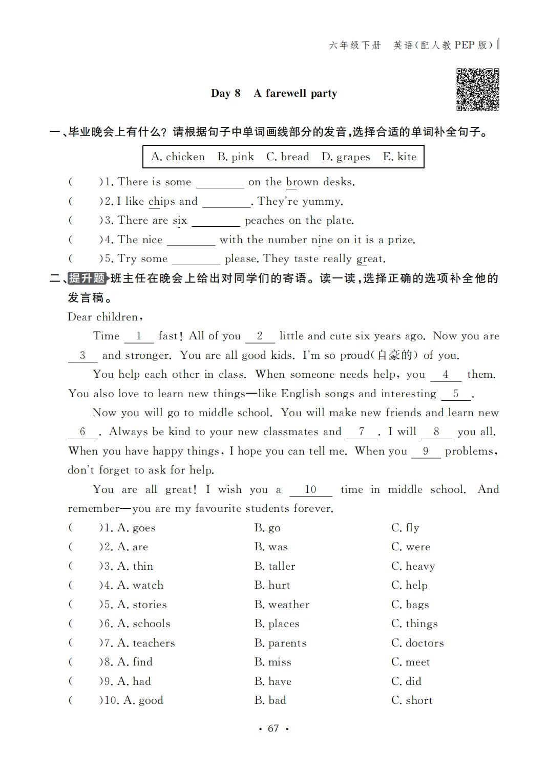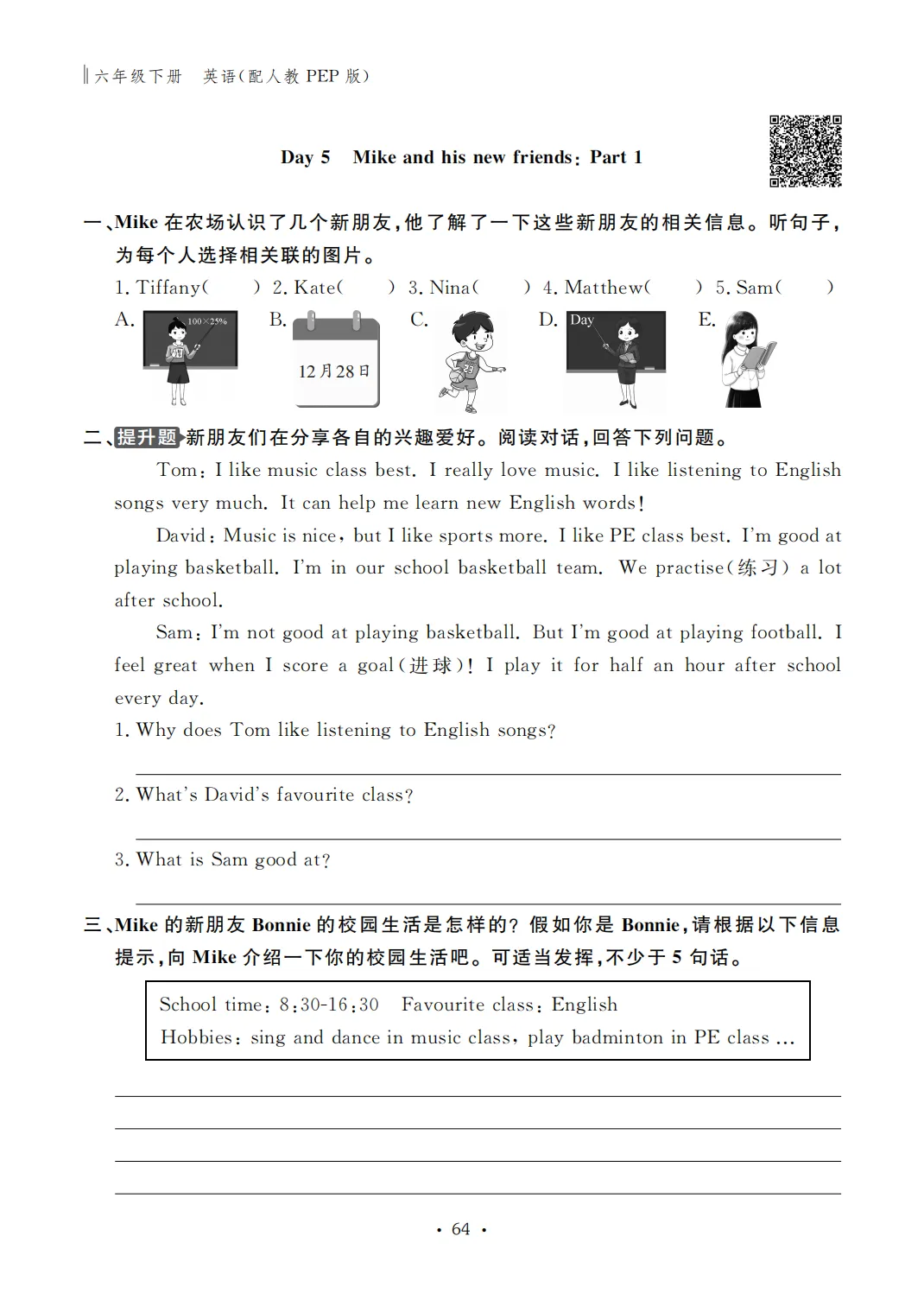 人教pep版六年级下册英语电子课本+小学英语同步教材点读小程序(免费点读)