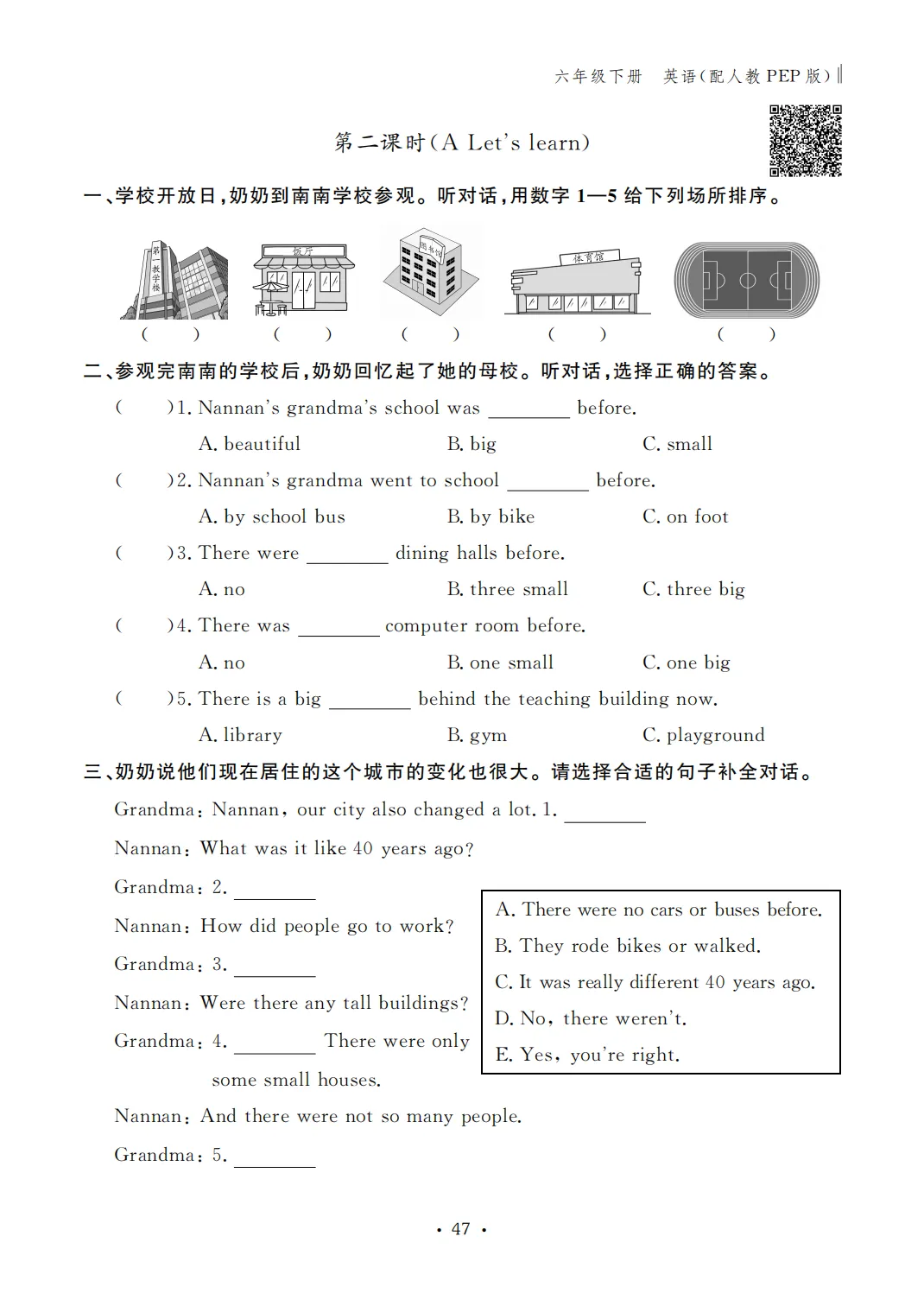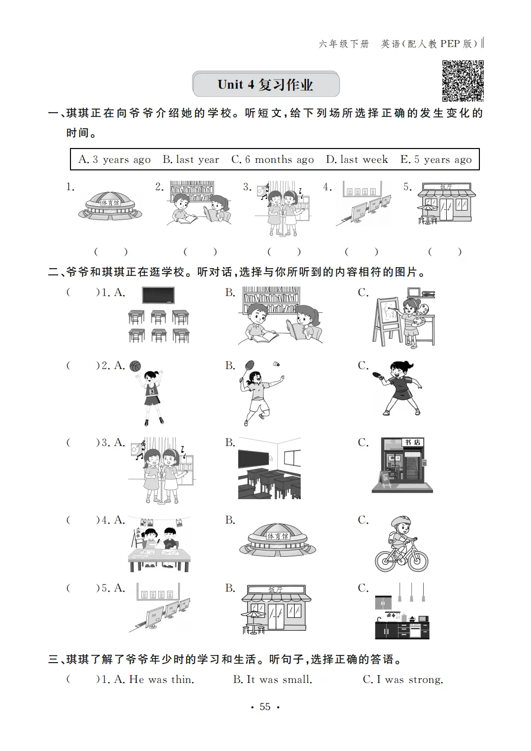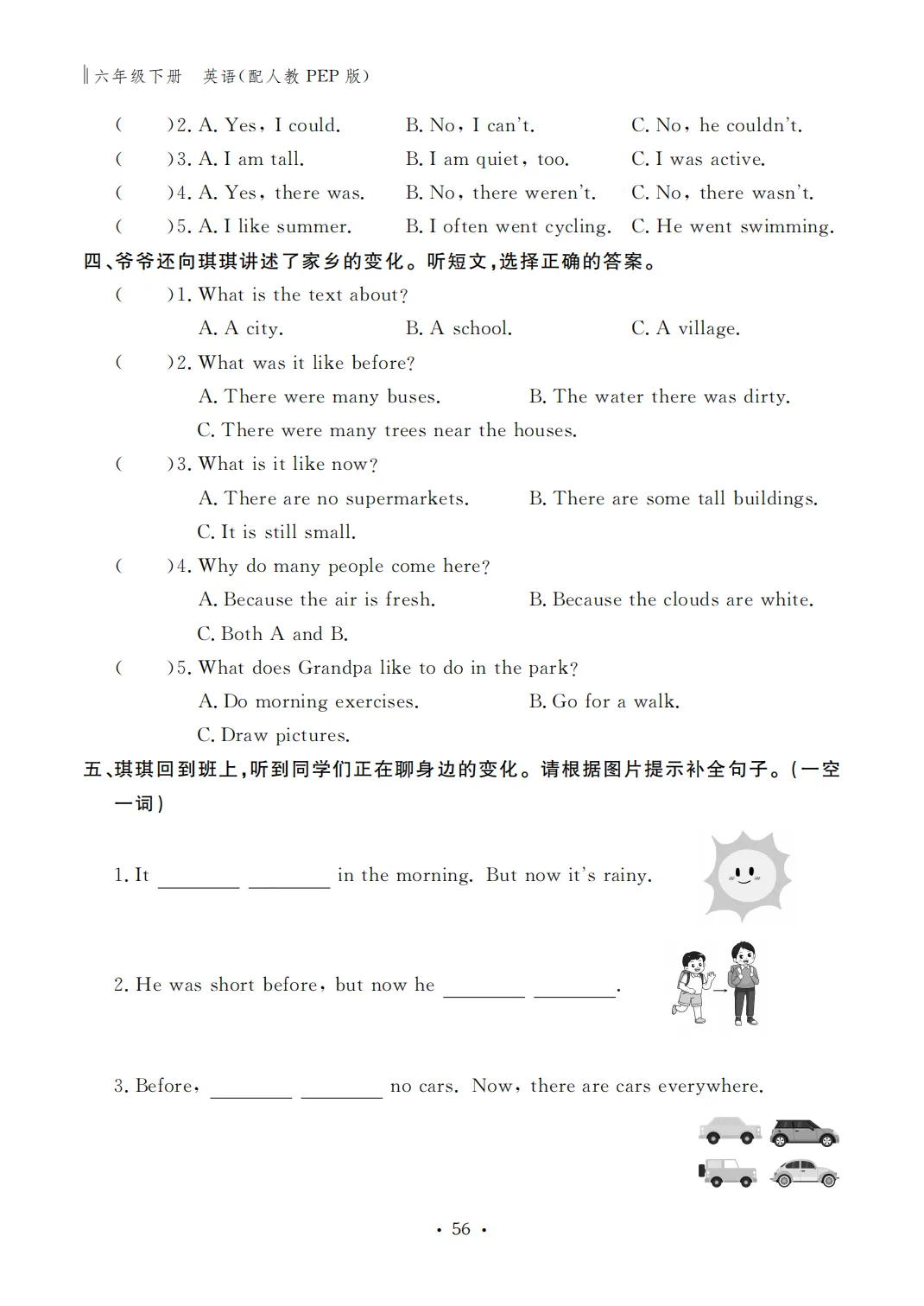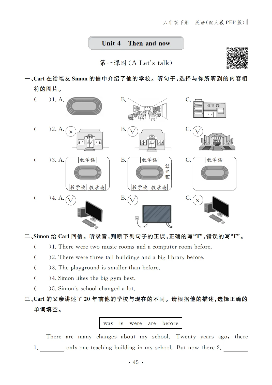 PEP人教版新教材小学英语六年级下册作业本配套听力U4 Then and now