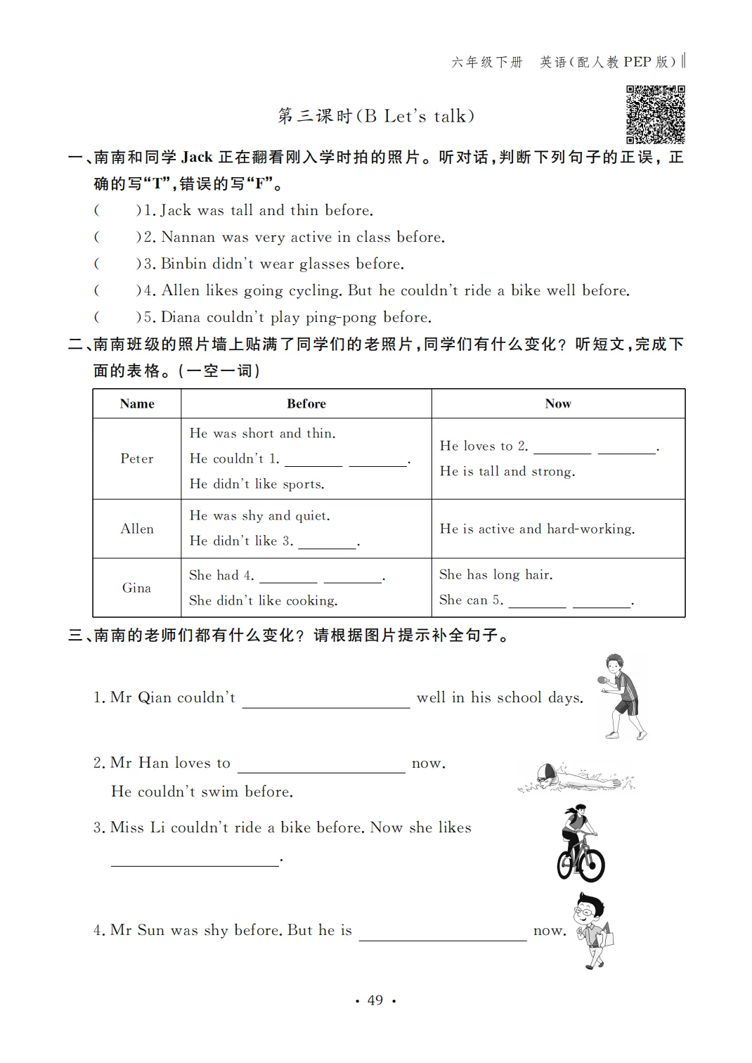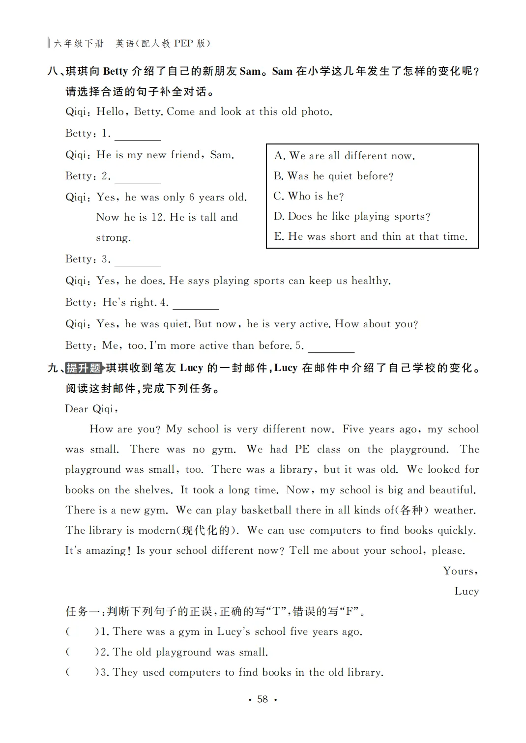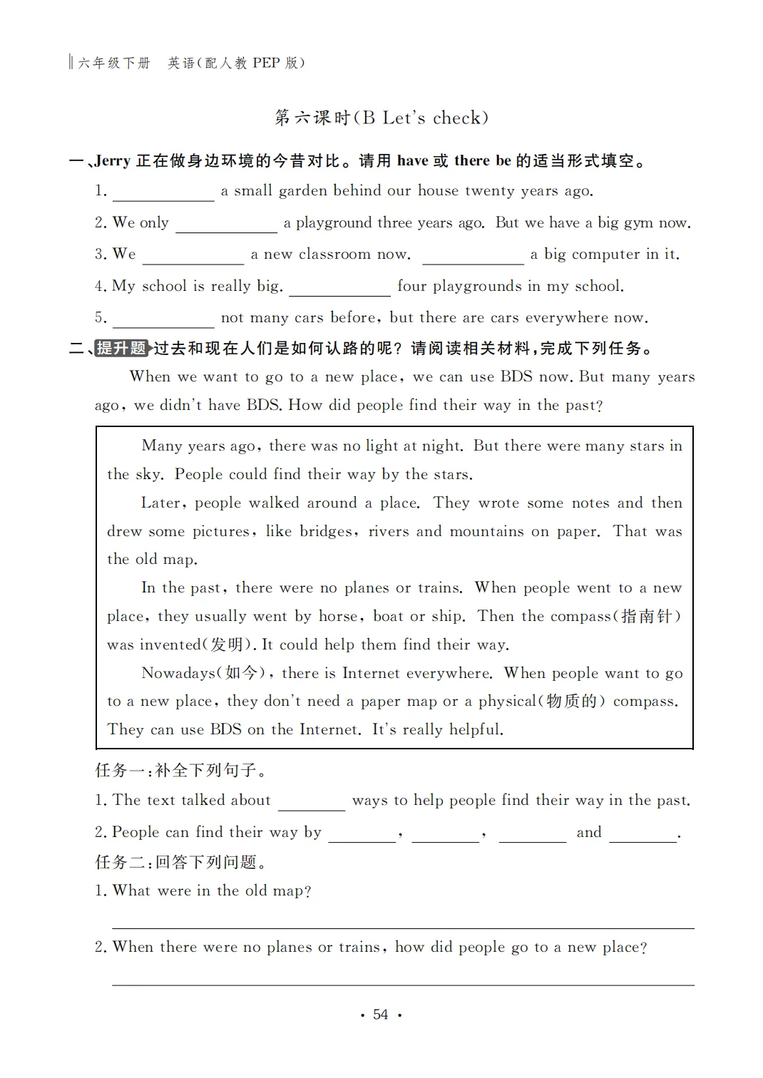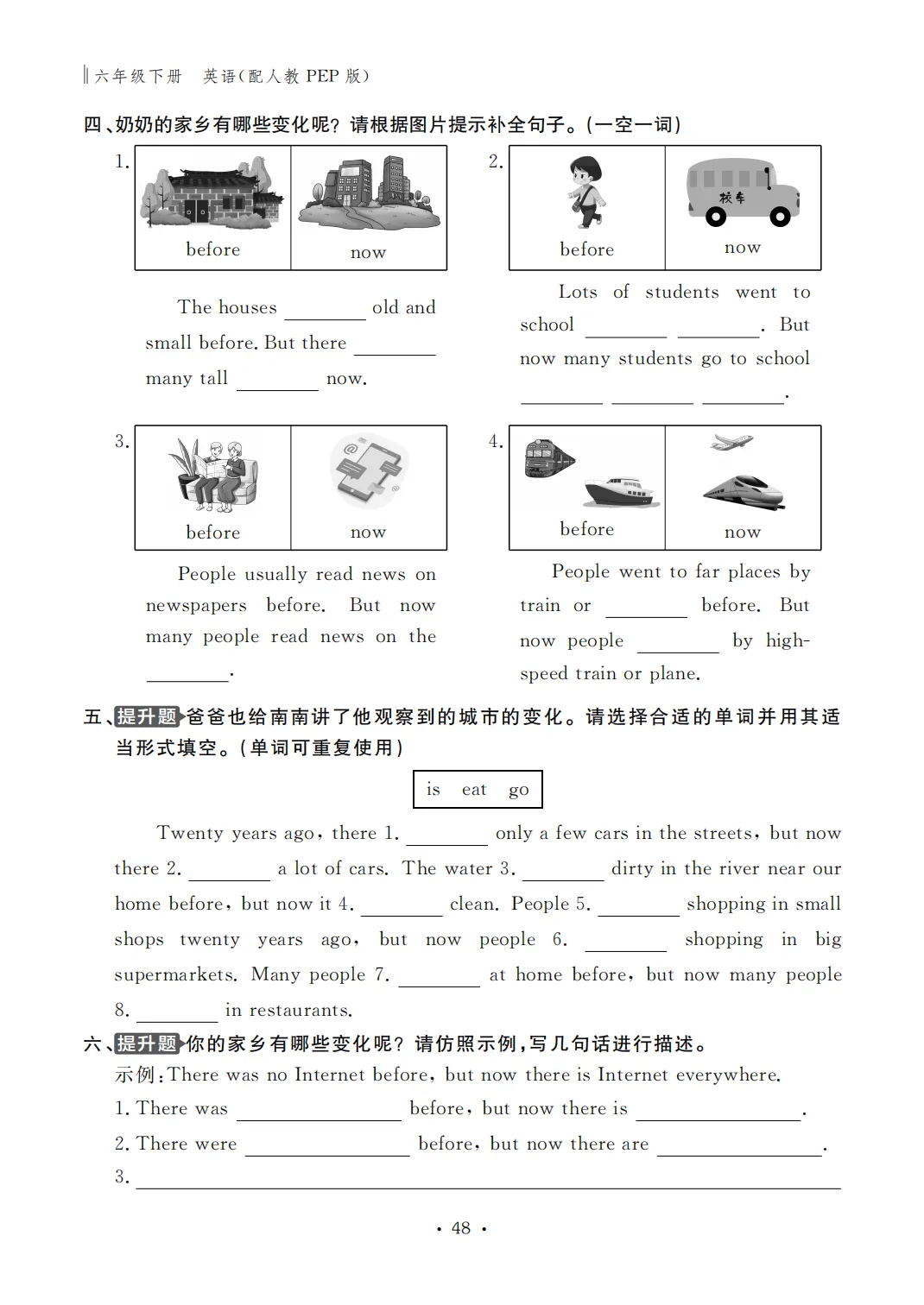 PEP人教版新教材小学英语六年级下册作业本配套听力U4 Then and now