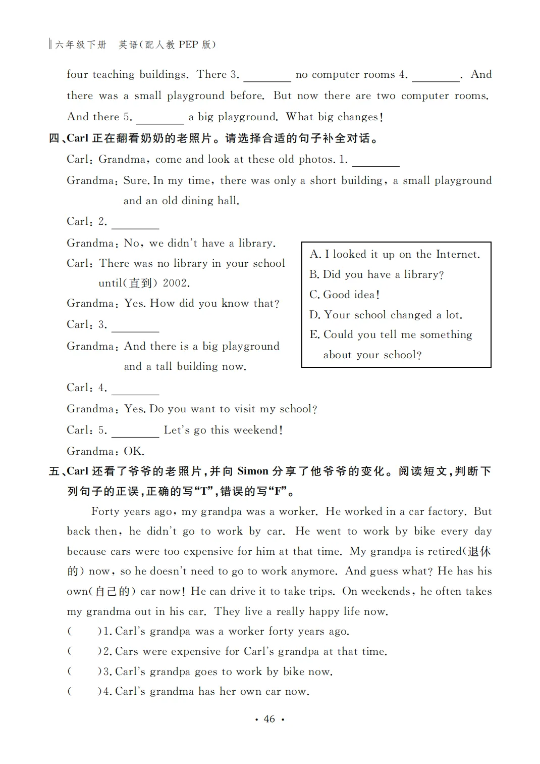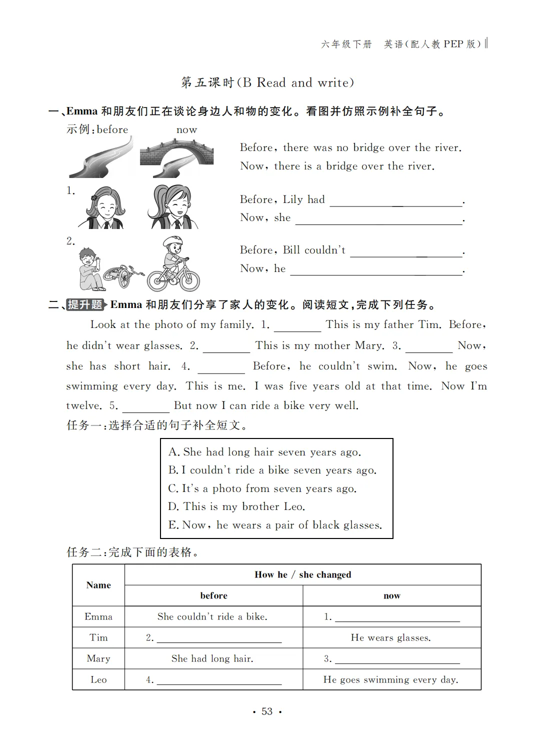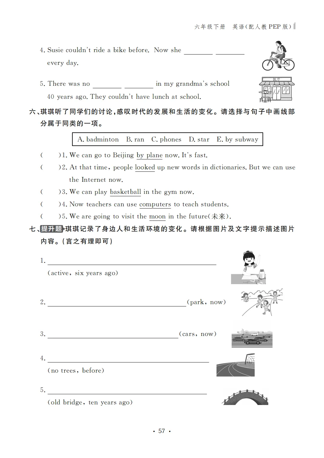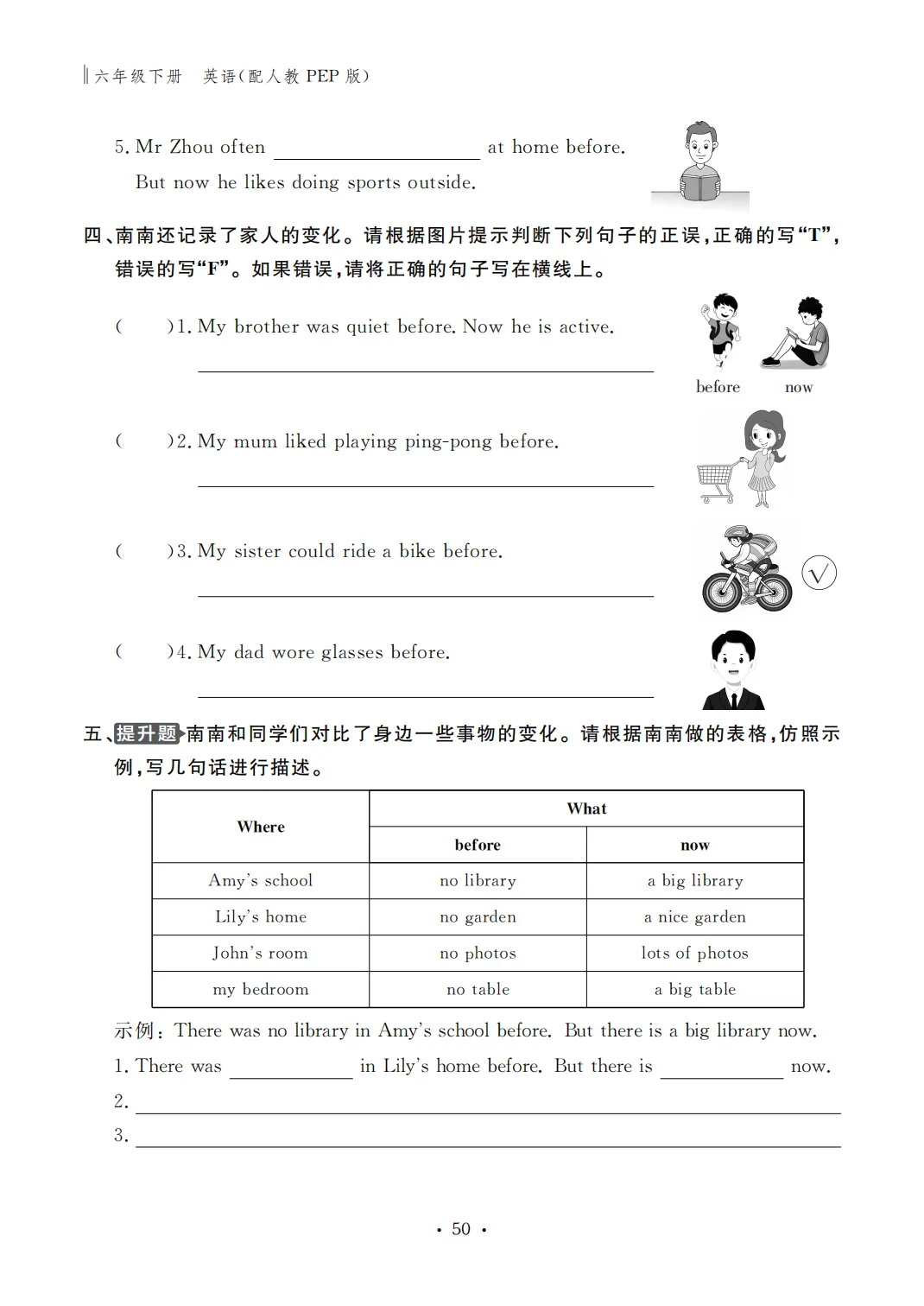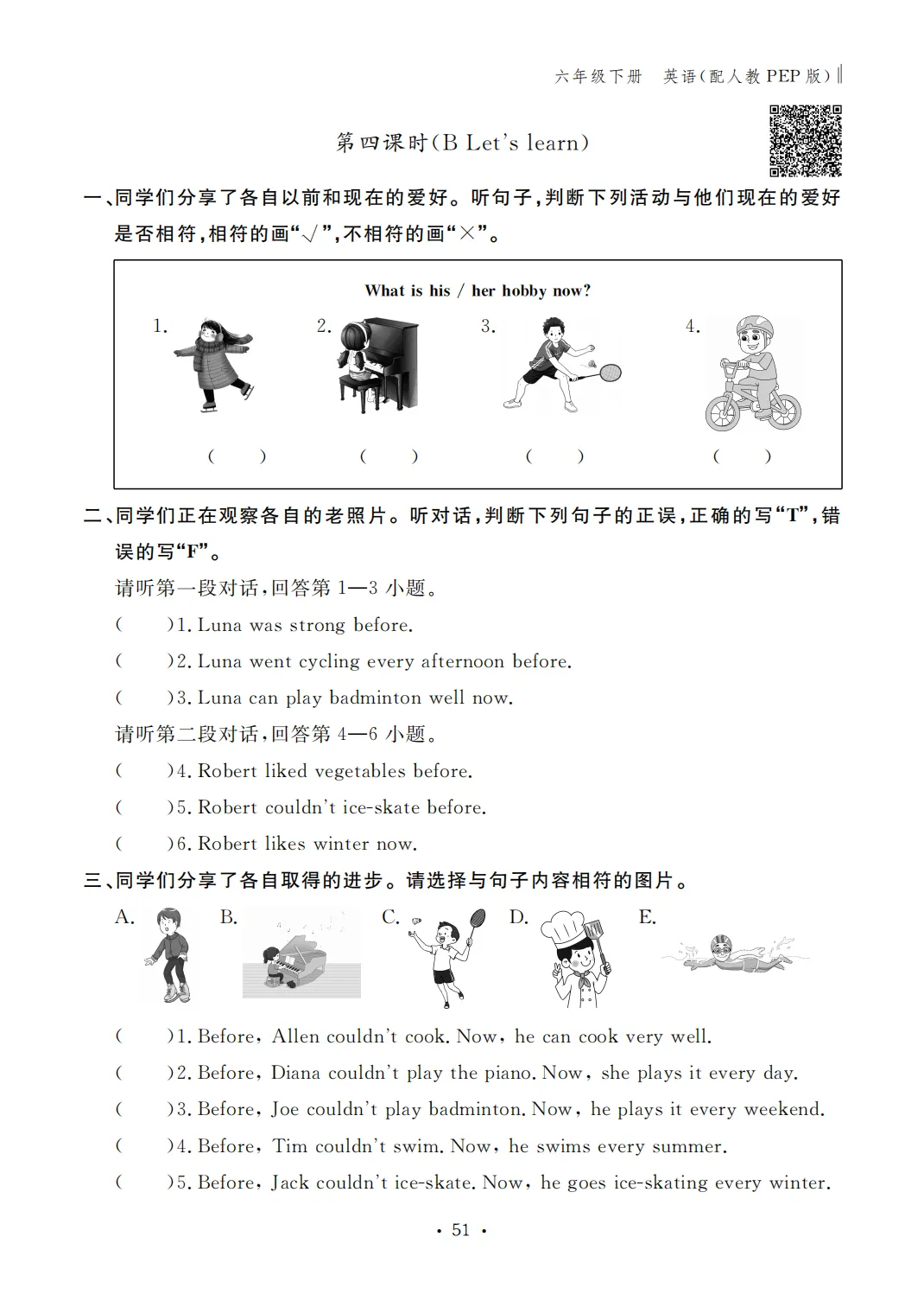 PEP人教版新教材小学英语六年级下册作业本配套听力U4 Then and now