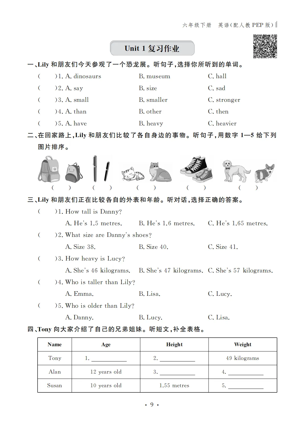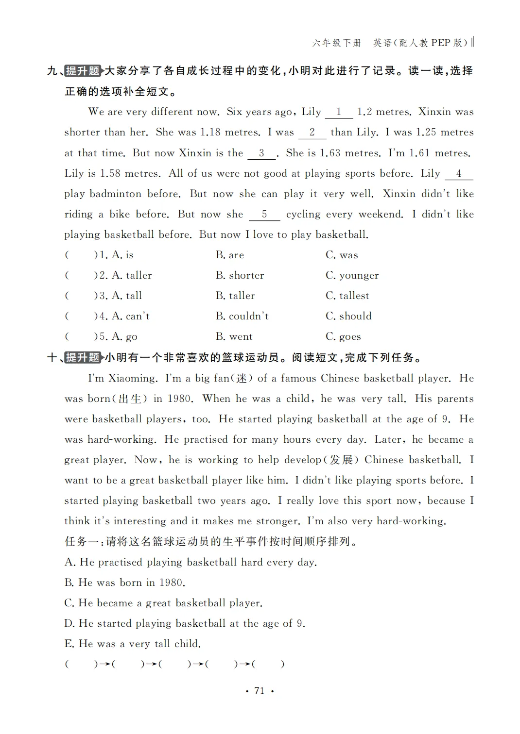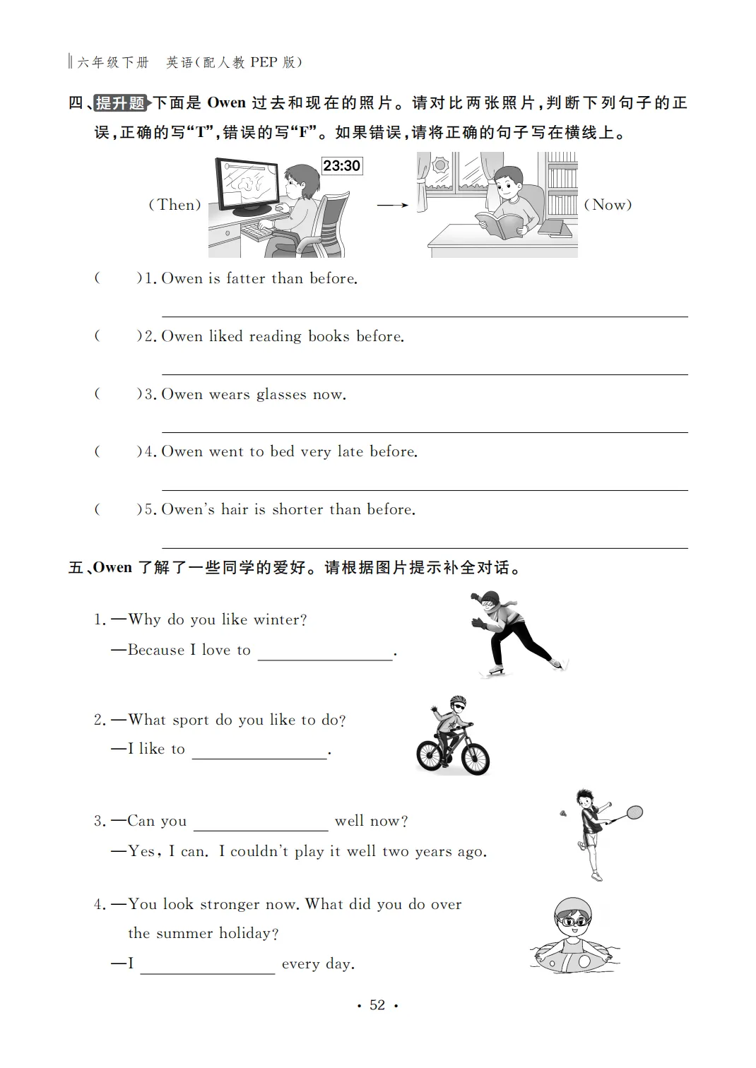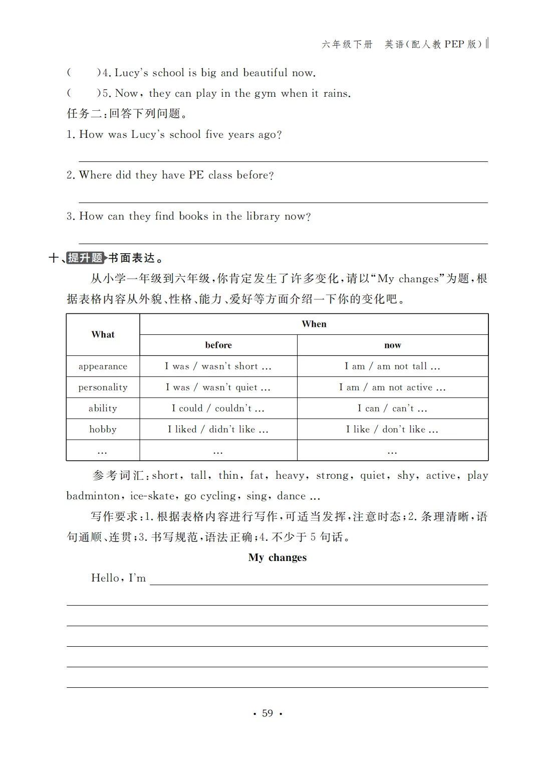 PEP人教版新教材小学英语六年级下册作业本配套听力U4 Then and now