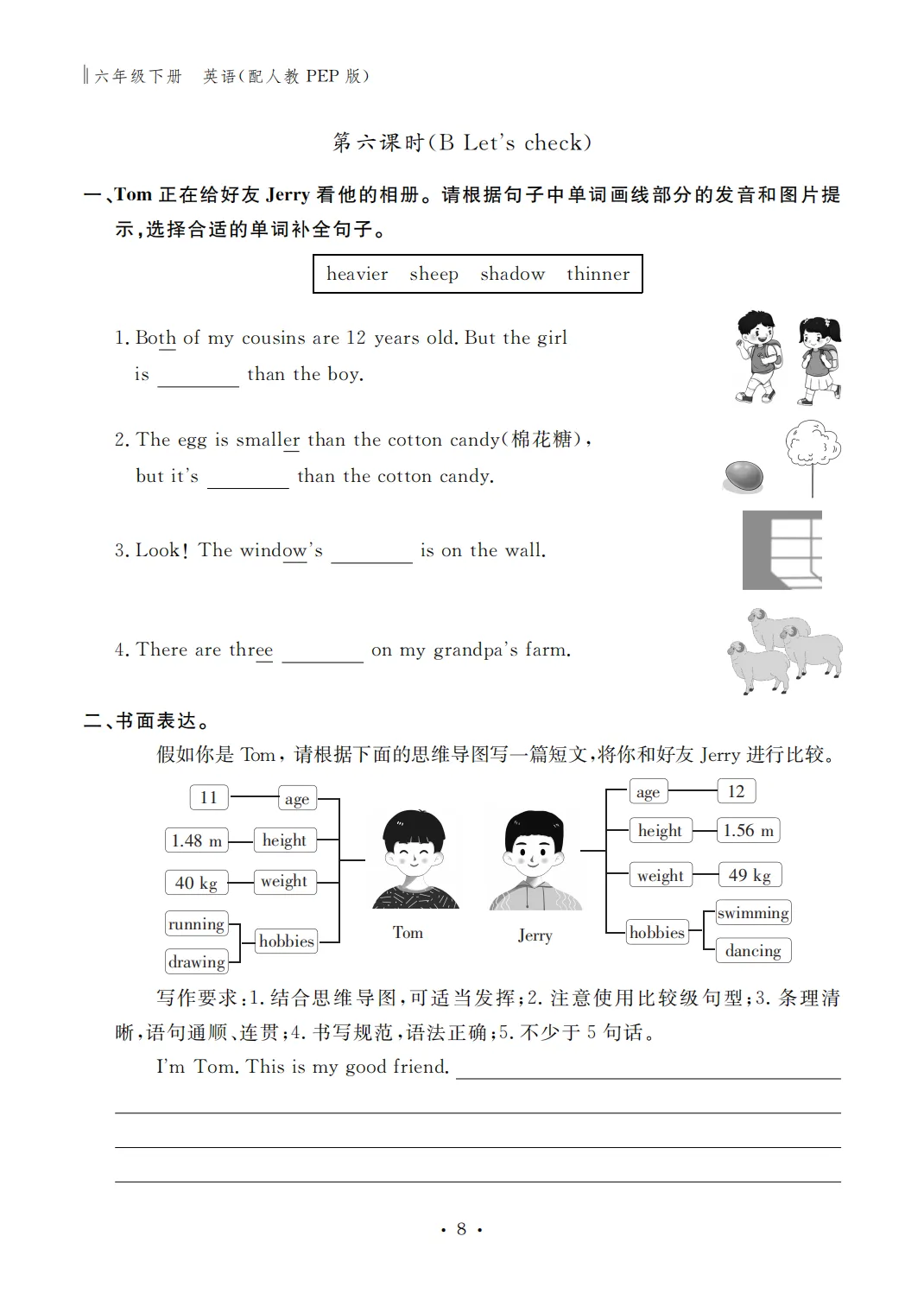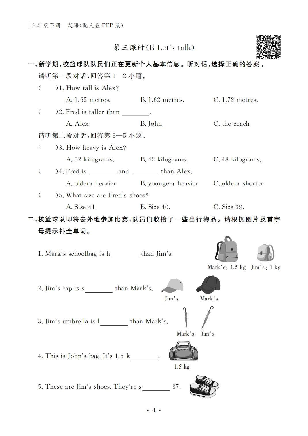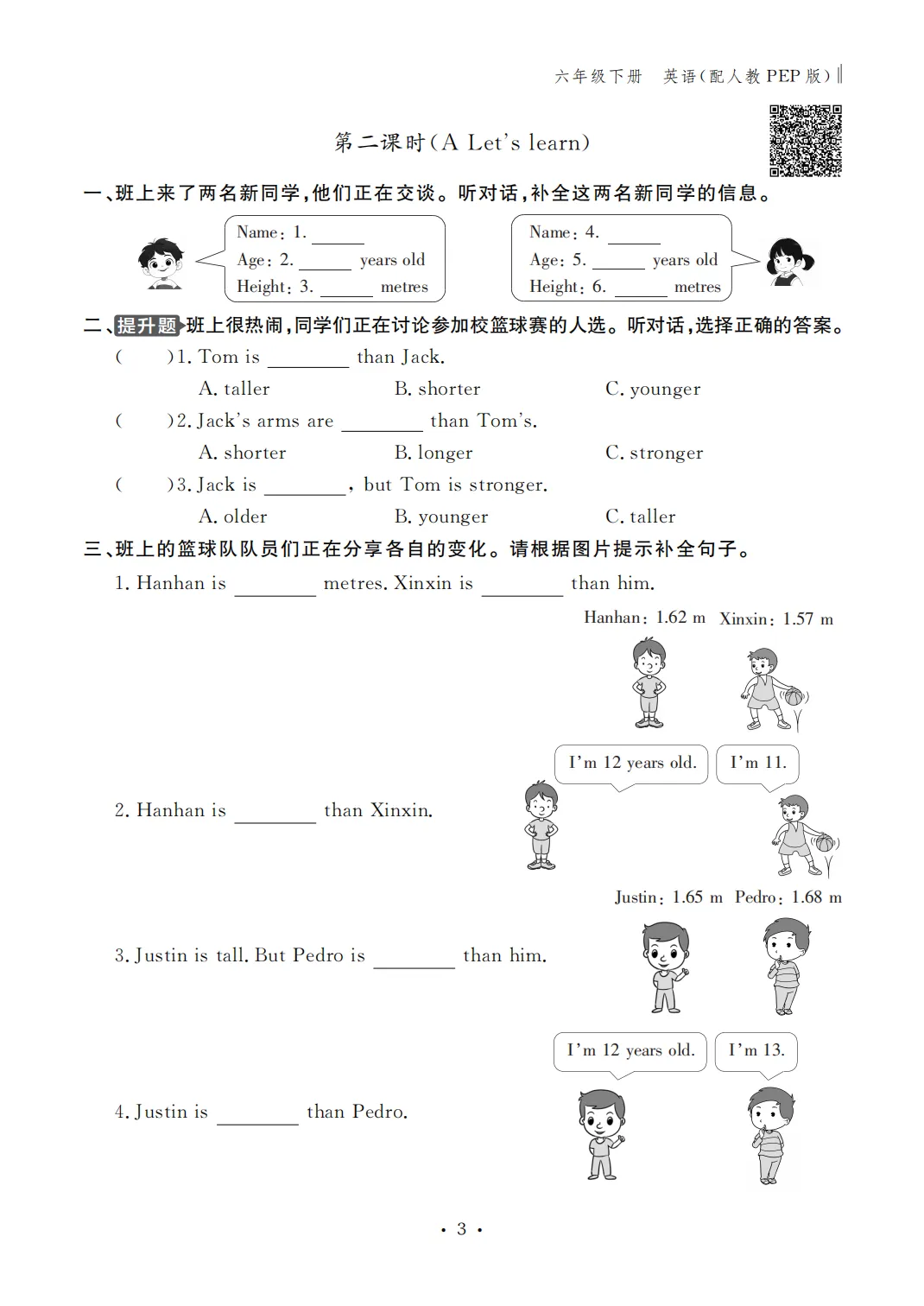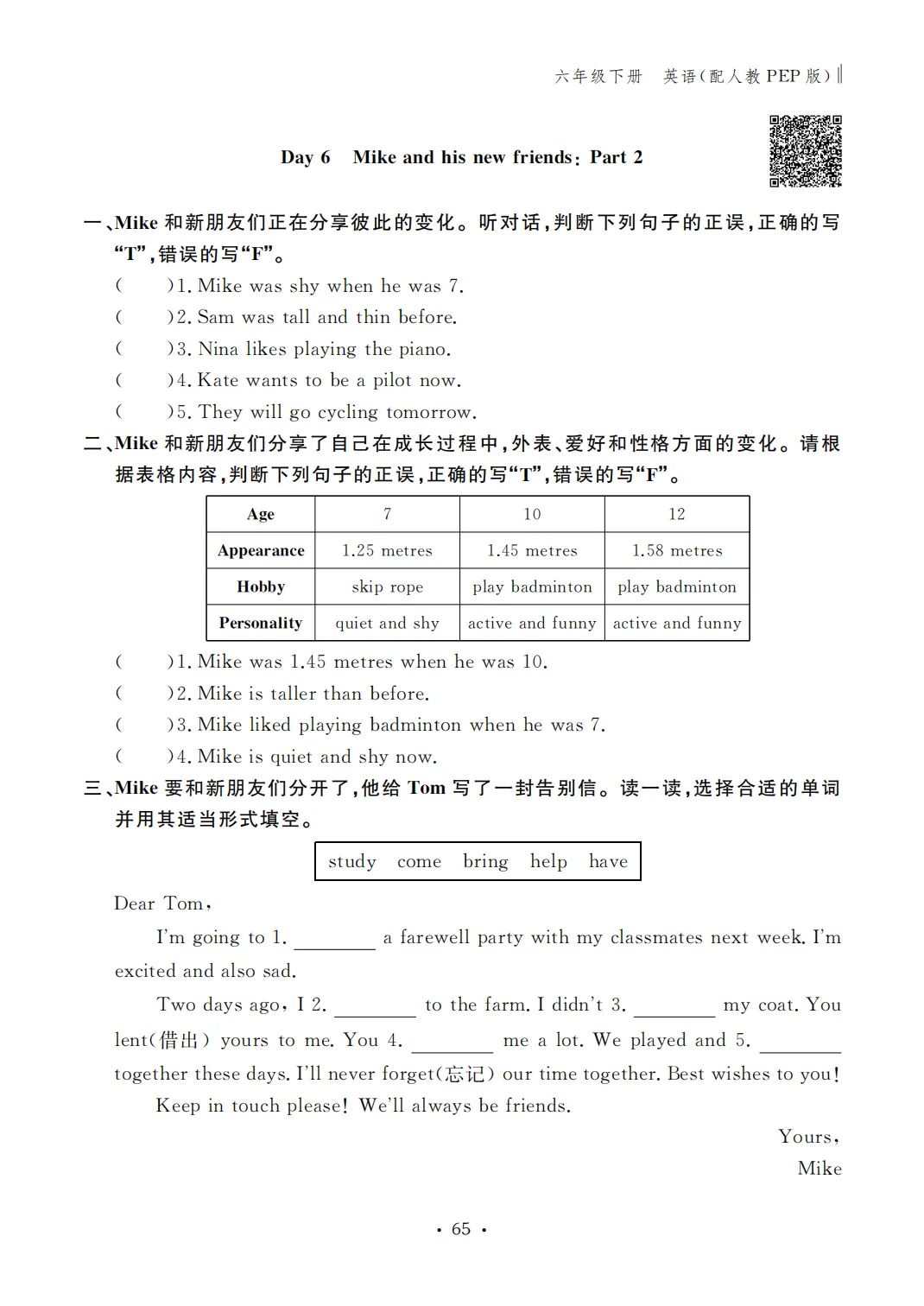 PEP人教版新教材小学英语六年级下册作业本配套听力U4 Then and now