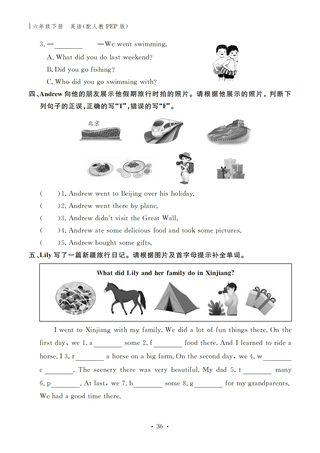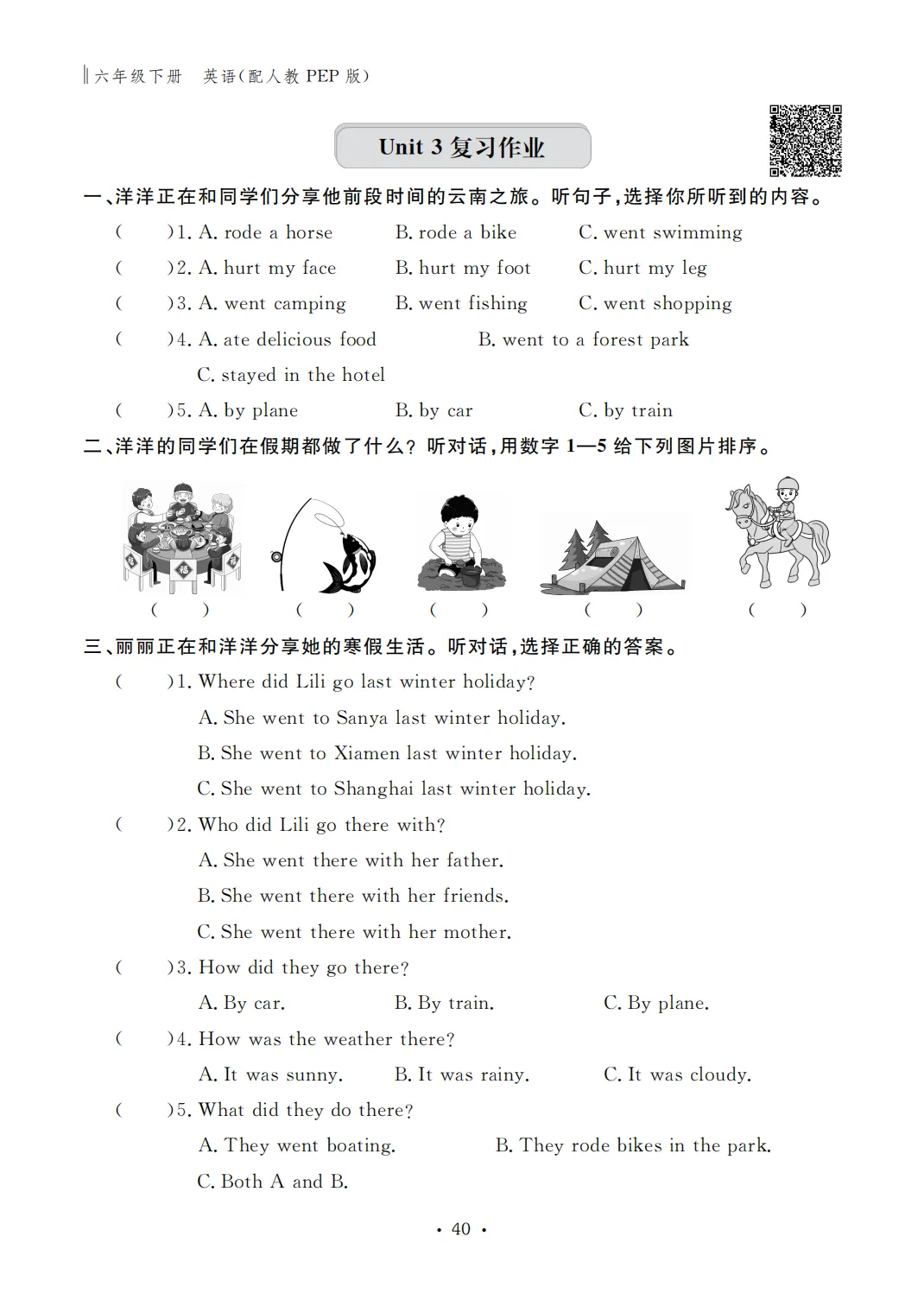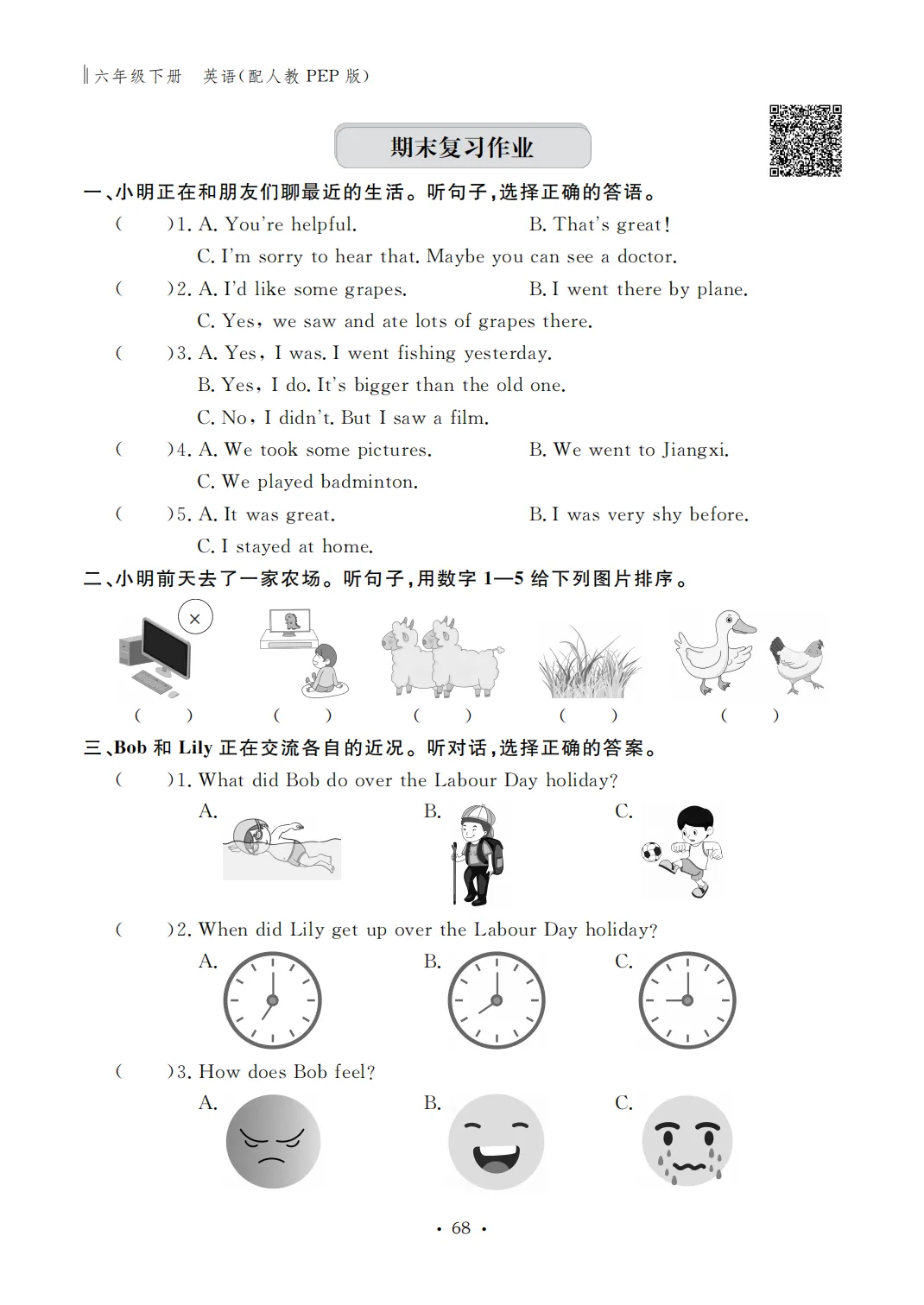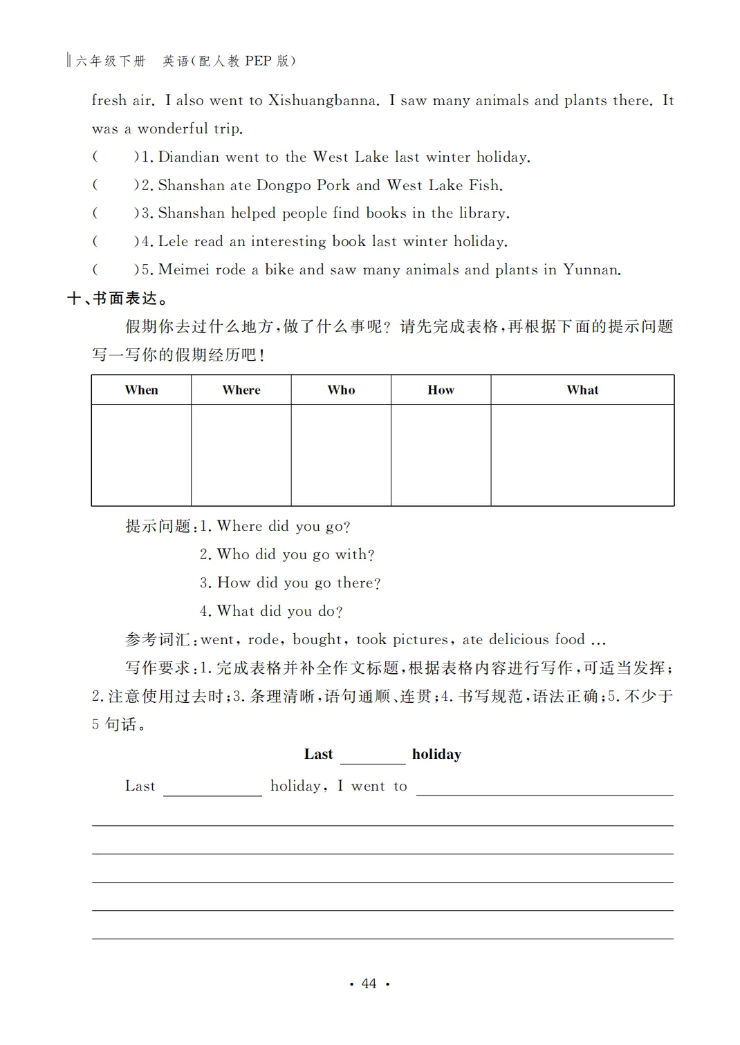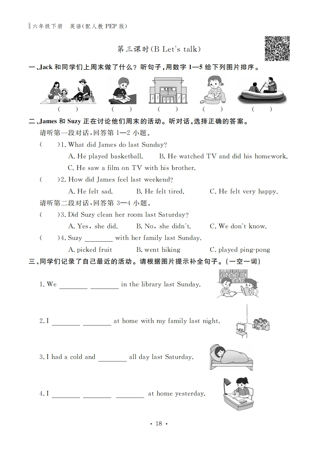 PEP人教版新教材小学英语六年级下册作业本配套听力U2 Last week