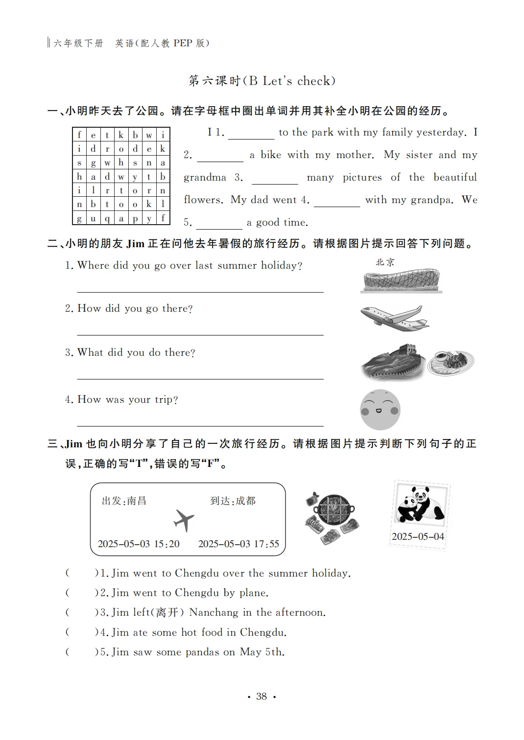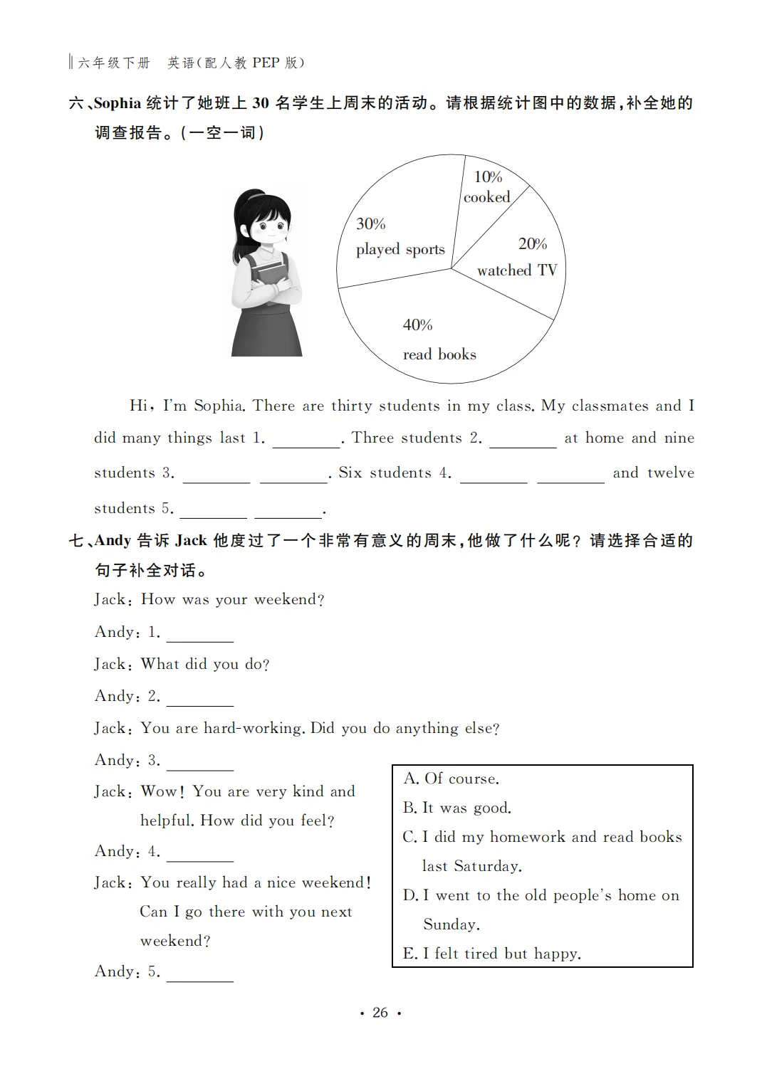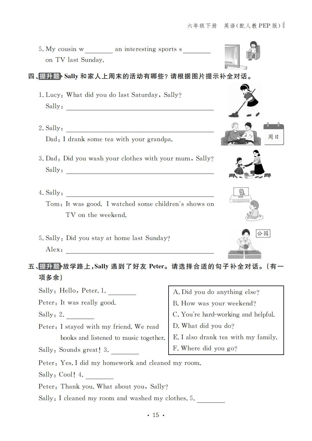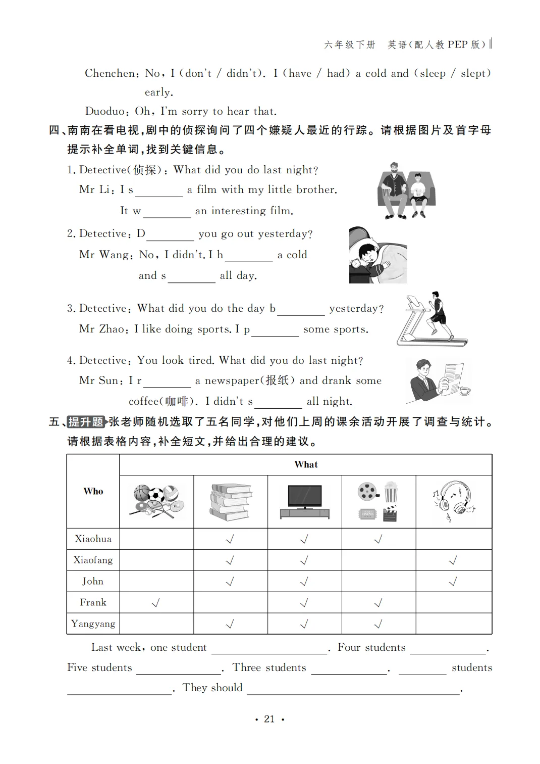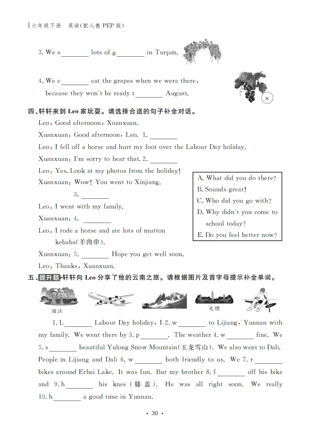 PEP人教版新教材小学英语六年级下册作业本配套听力U2 Last week