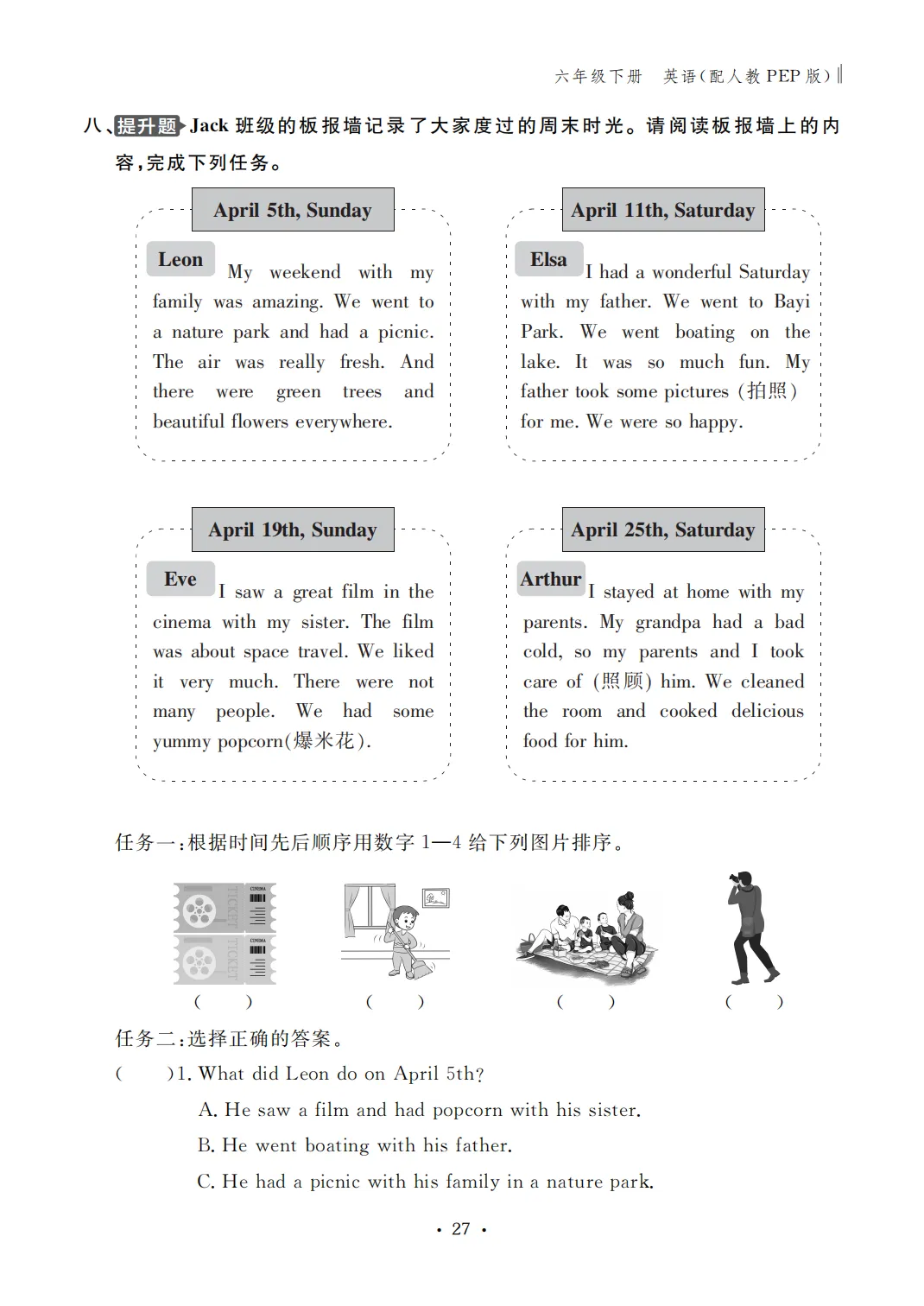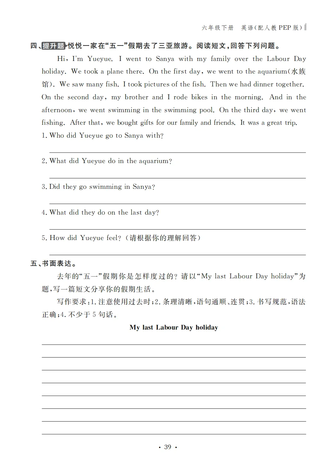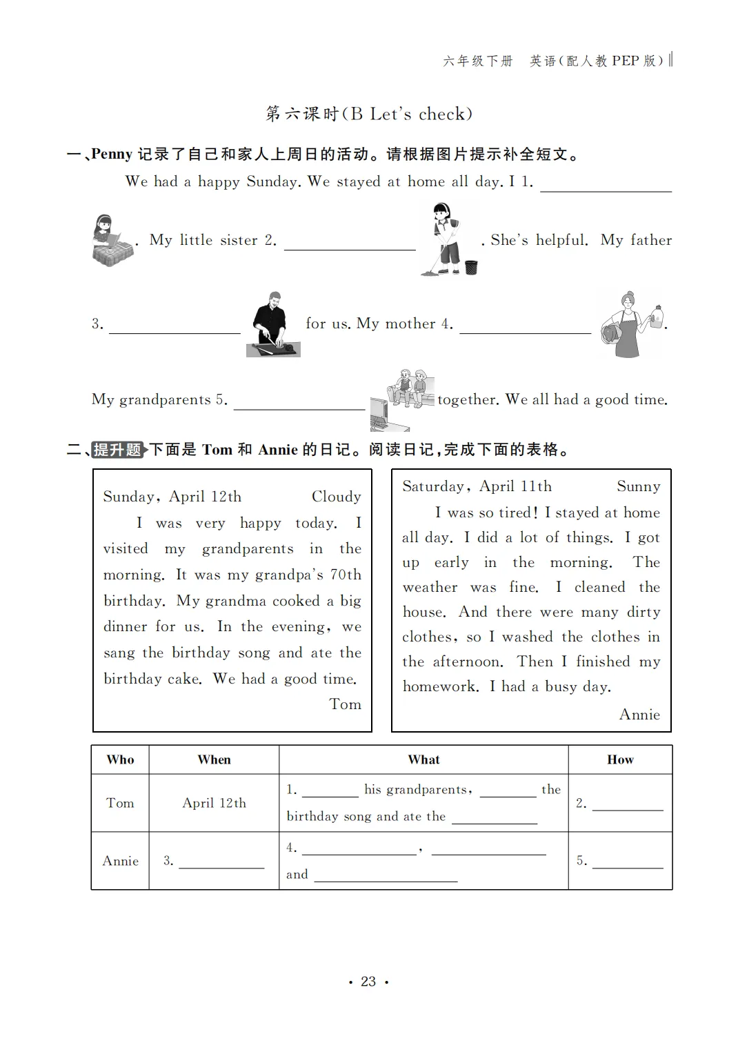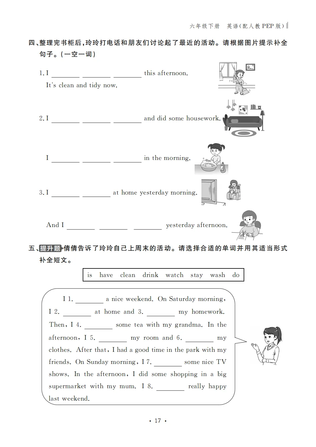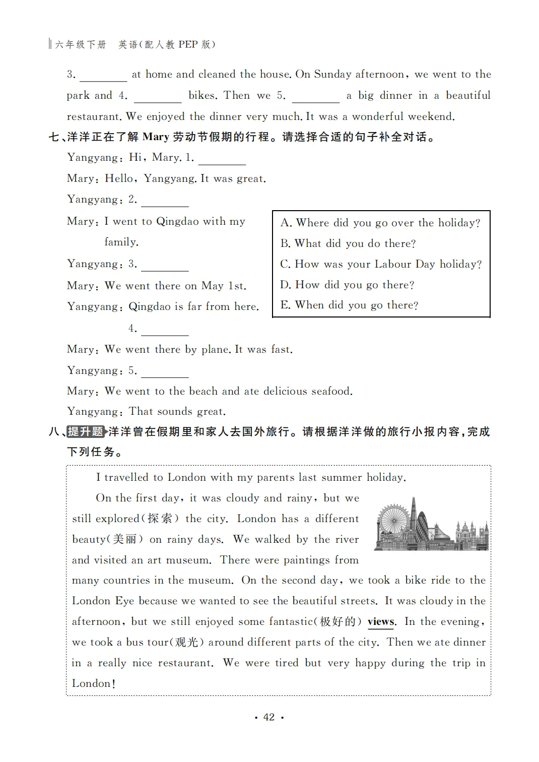 PEP人教版新教材小学英语六年级下册作业本配套听力U2 Last week