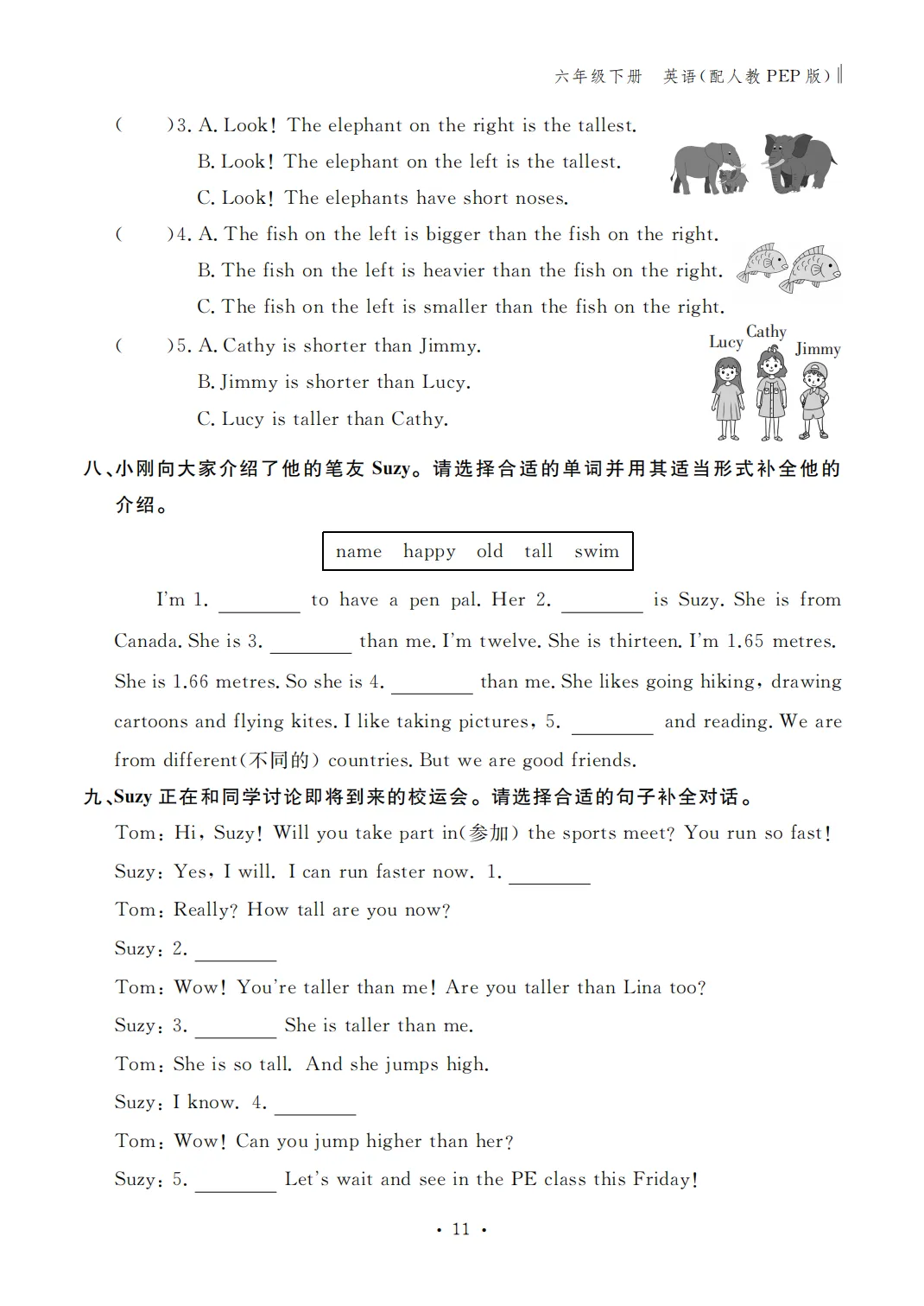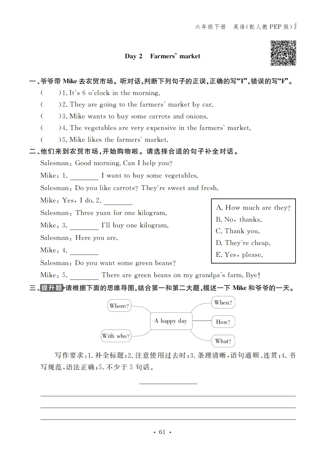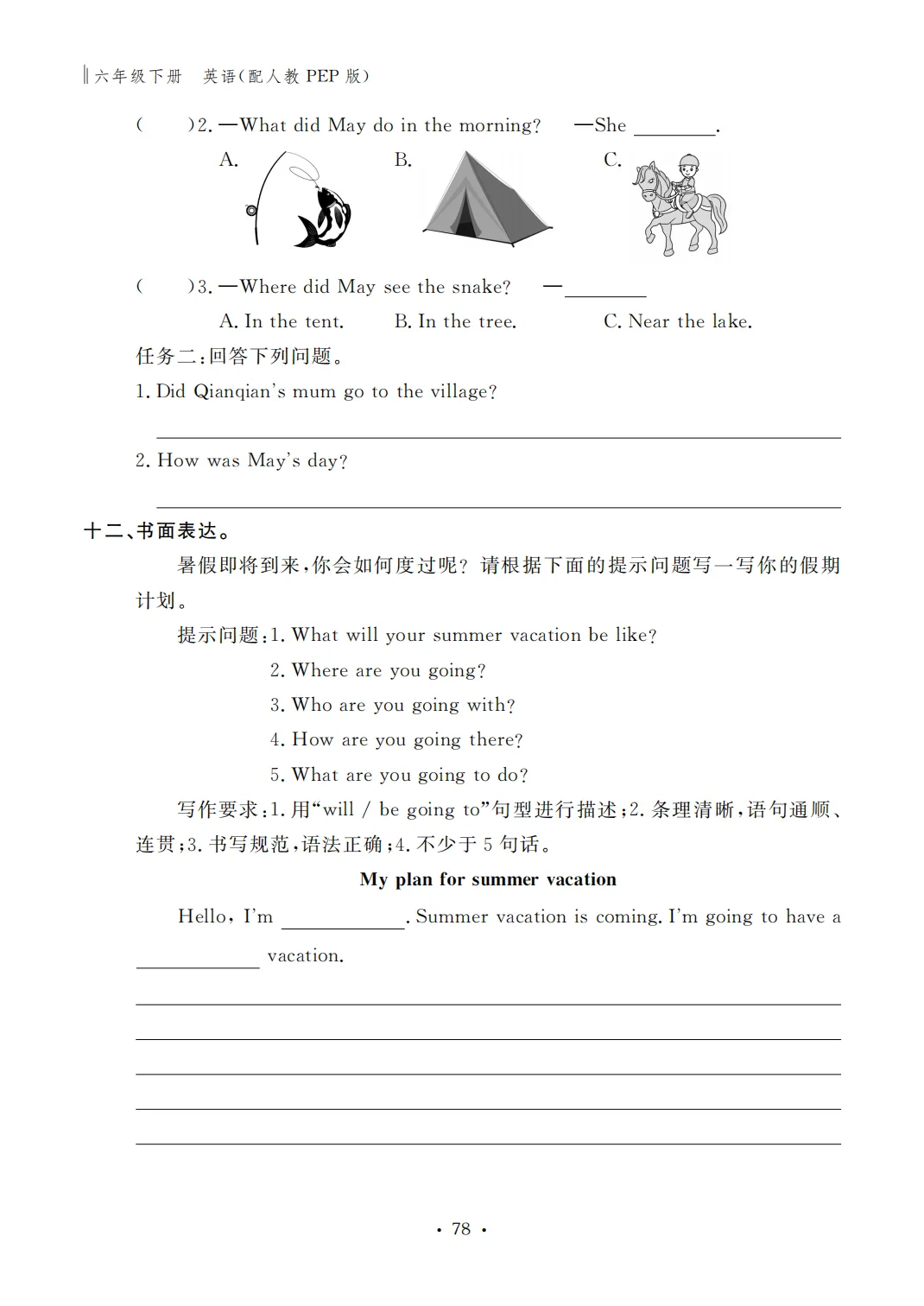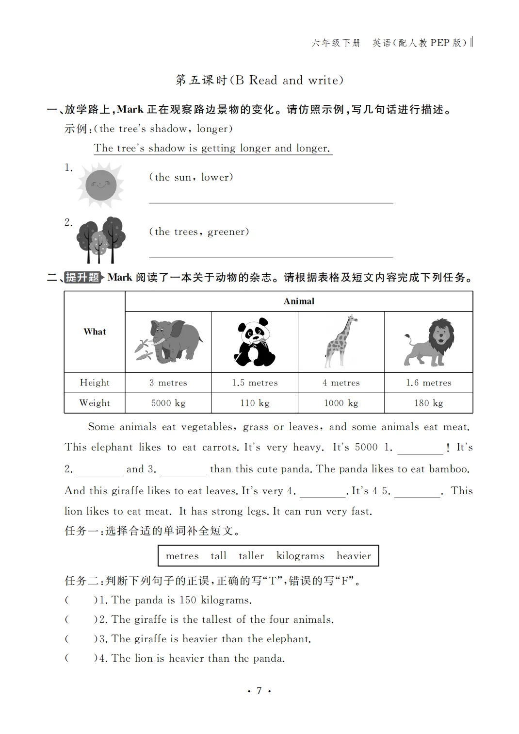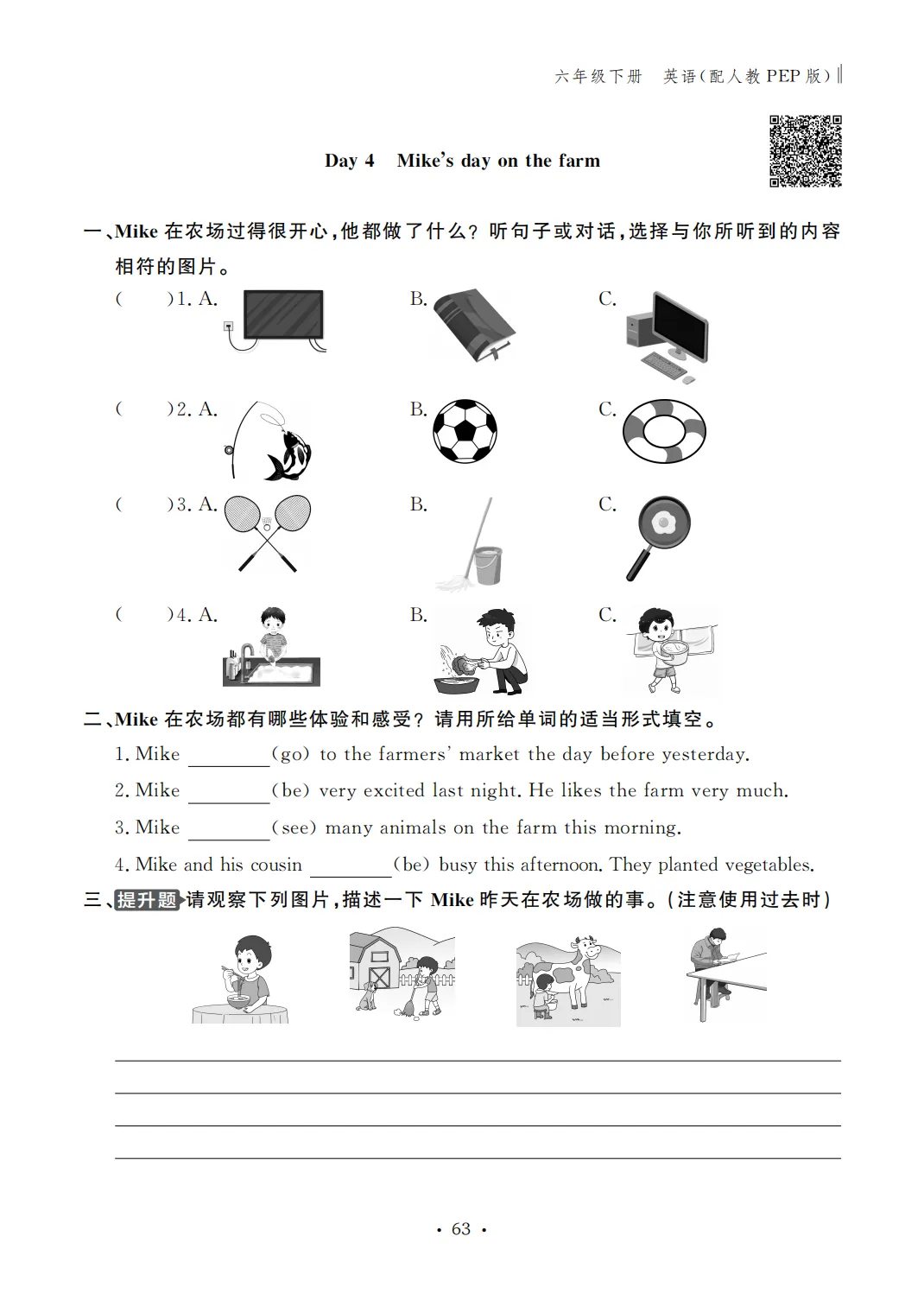 PEP人教版新教材小学英语六年级下册作业本配套听力U2 Last week