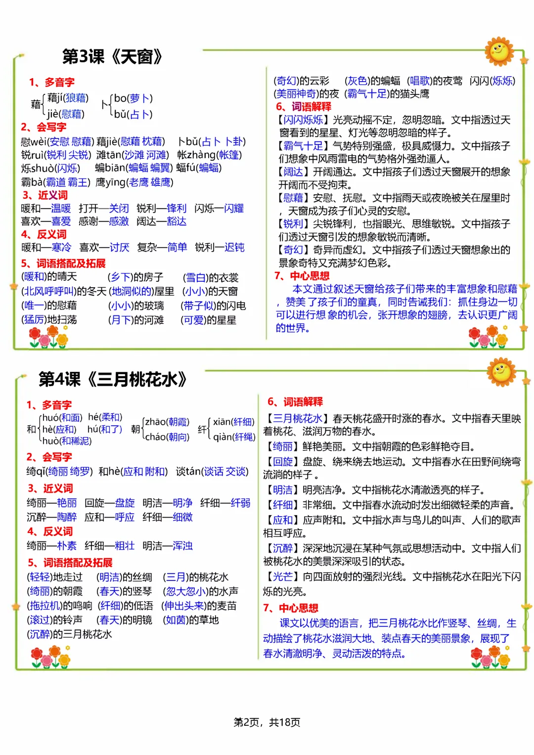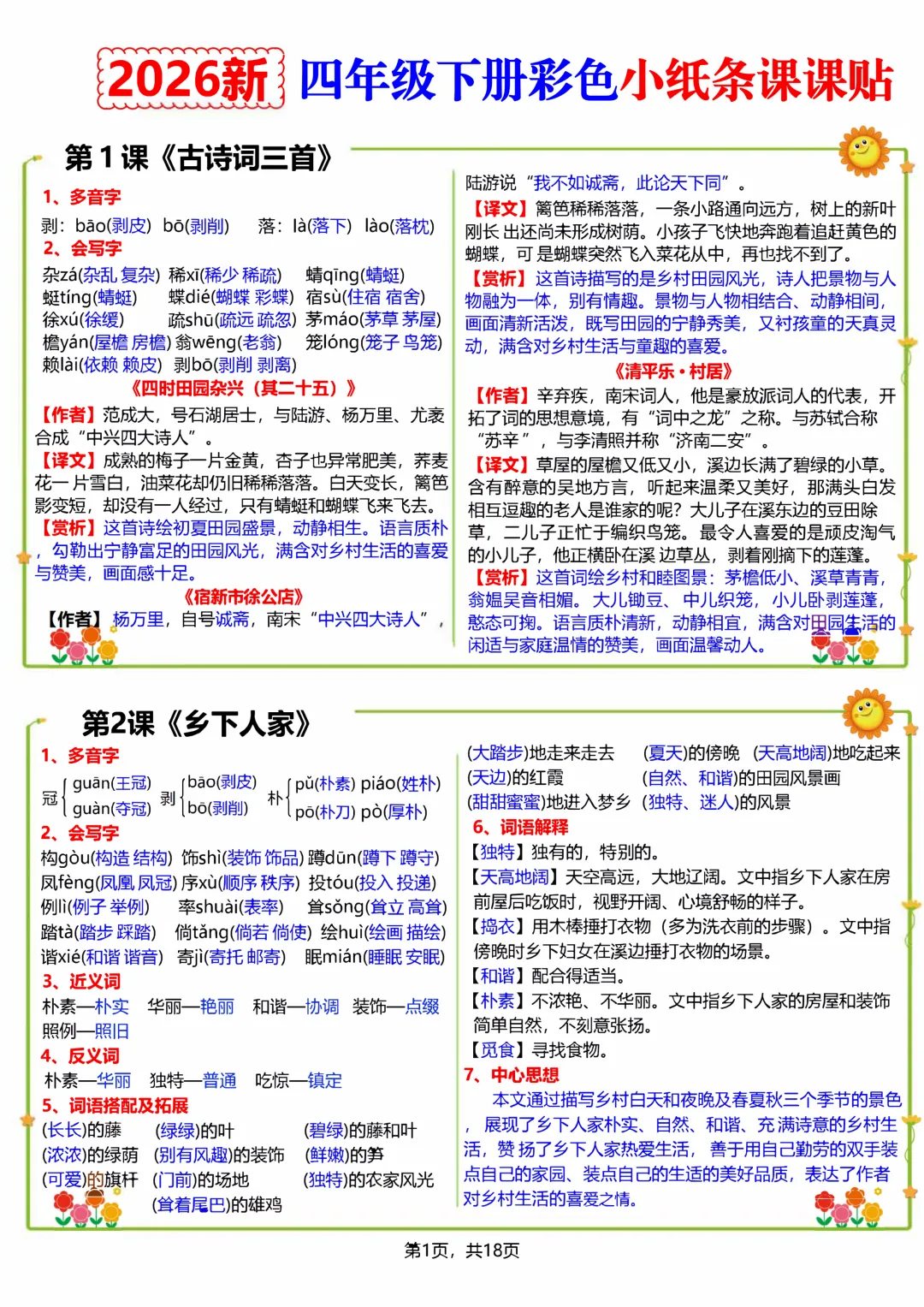 #四年级语文#26 春资料 #彩色小纸条#课课贴#一课一贴#同步课本#小学语文#可打印资料#课堂笔记