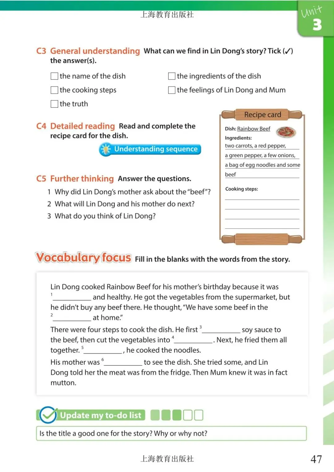 上海市初中六年级上学期英语教材及音频 Unit 3