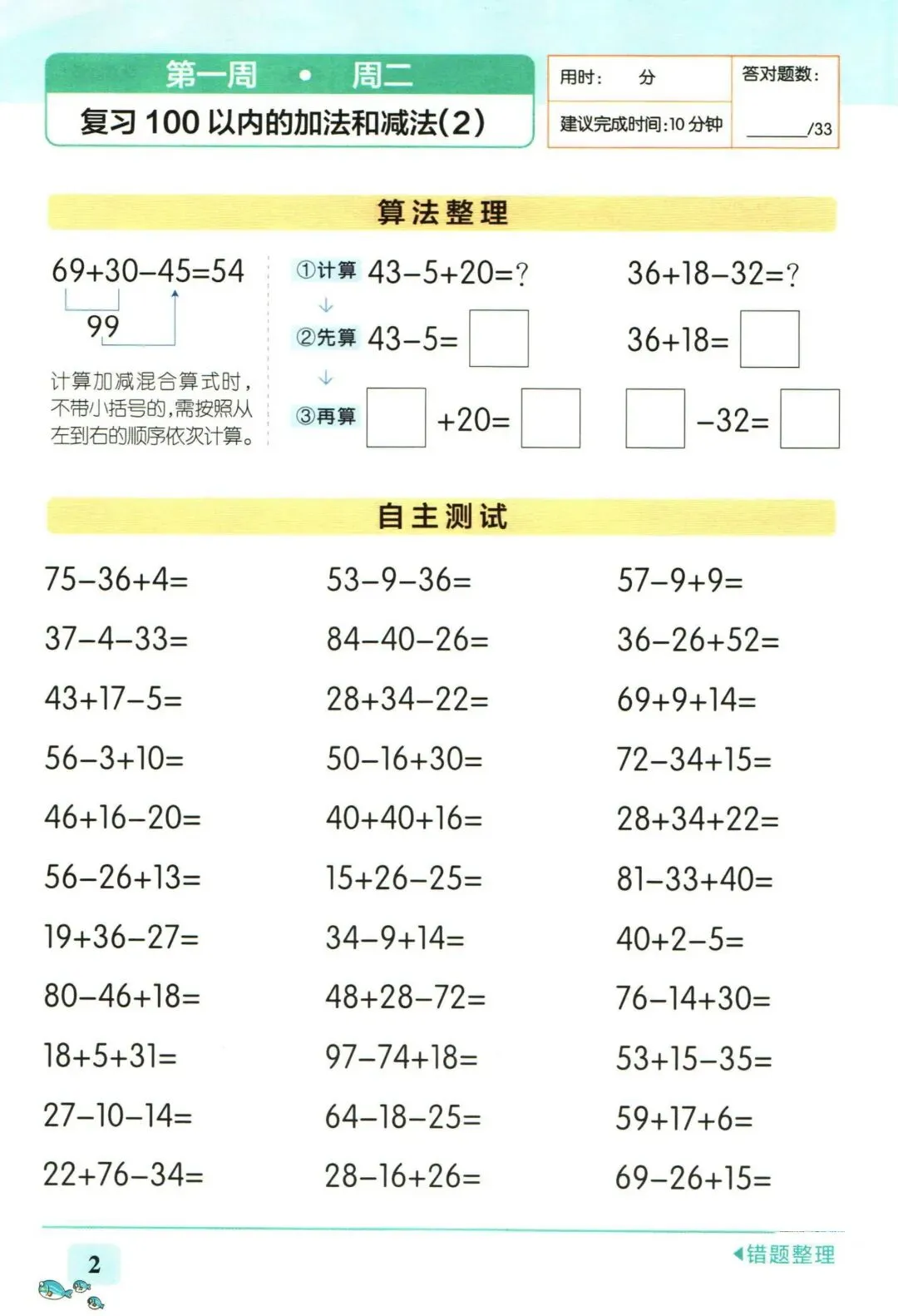 小学学霸天天计算二年级下册人教版-同步教材,电子版可打印