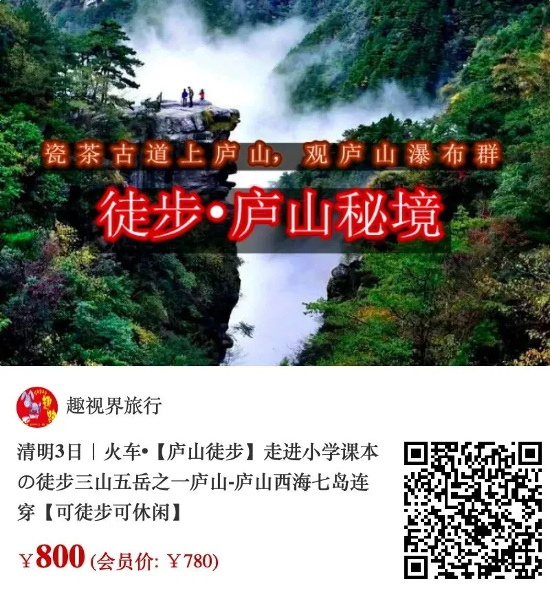 D2|庐山东线徒步15公里(五老峰-三叠泉-庐山东门)-柘林古镇夜景-德安(宿)D3|庐山西海七岛连穿8公里(云居岛-女神岛-箬溪岛-西海之星-明珠岛-沧海岛-桑田岛)-九江站解散
