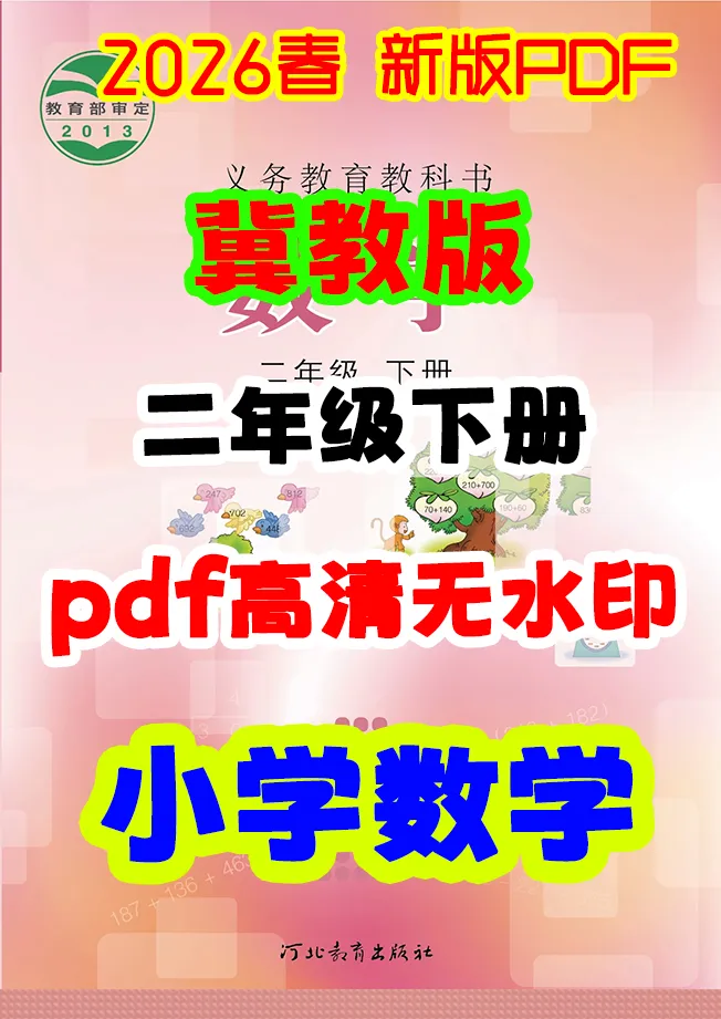#数学二年级下册#数学#二年级下册#冀教版#26年#春新#小学#人教版#统编版#电子课本#电子教材#pdf#电子版#课本#教材#预先#复习#备考#考试#教学#六三学制#五四学制#上册#下册#63学制需要其他年级其他科目其他版本的可以查看历史文章,小学阶段的基本都有,如果没找到可以点赞加关注后后台说明充,看到后会及时回复,建议将公众号设为星标⭐,需要时方便寻找!