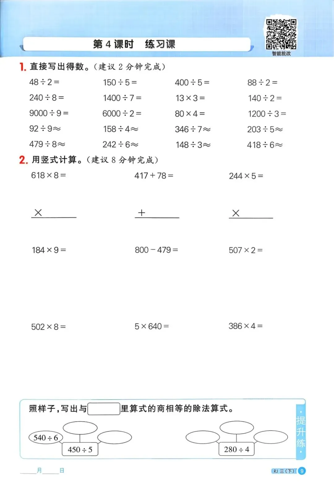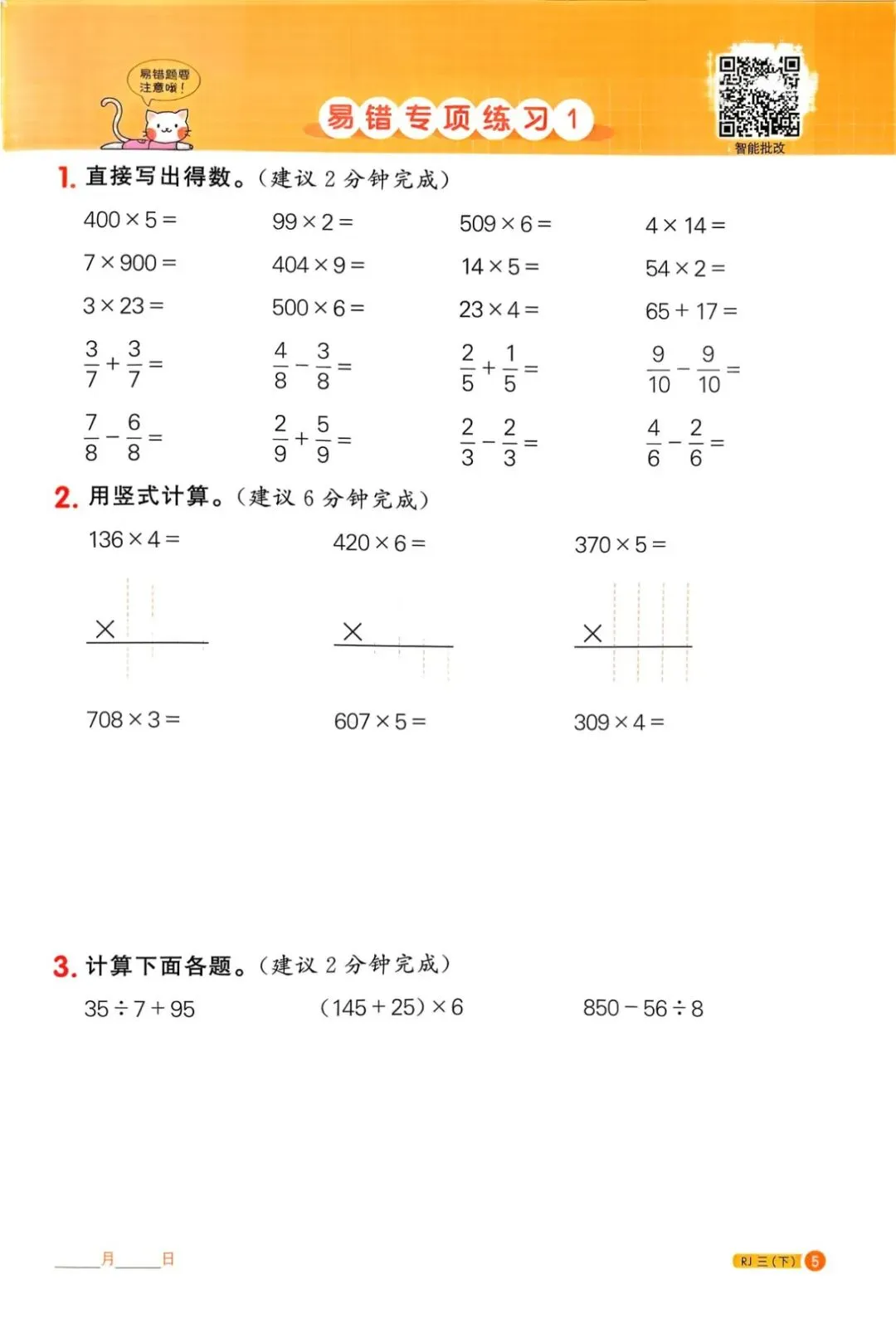 2026春新教材小学数学3年级下册计算题(可一键免费领取,pdf打印)
