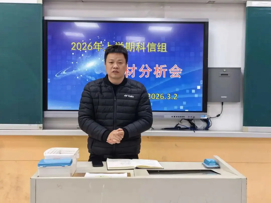 科信组老师们围绕新教材的内容、结构和教学要求进行了深入分析和交流。大家一致认为,新教材虽然提升了难度,但是紧跟了时代的发展需要,也更注重培养学生的信息素养、科学素养和实践能力。通过这次教材分析会,老师们进一步明确了这学期的教学目标和重点,为今后的教学工作奠定了坚实的基础。最后,龚校对大家的教材分析做出了精心的指导,同时也提出了很多宝贵的建议。指出全体教师要以此次教材研析为契机,持续深化教材解读,将新课标要求、核心素养培育与学生学情深度融合,做到吃透教材、用好教材,让教材内容真正落地课堂。并强调要强化学科协同与创新,结合各学科特色融入现代教育技术,挖掘教材中的跨学科育人元素,兼顾学生全面发展与个性成长,让每一堂课都有实效、有温度。