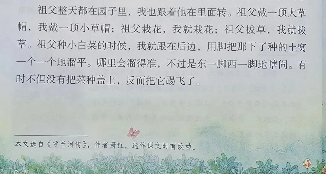 新学期伊始,人教版小学五年级下册语文课本中的第3课《祖父的园子》是选自于民国女作家萧红的代表作《呼兰河传》。