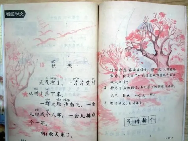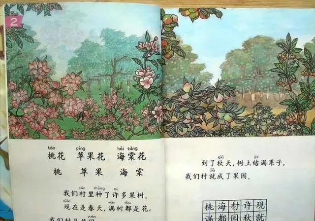 其实,那时我们的课本插图艺术水平真的很高,有种“一秒就能触动人心”的魔力。有姐妹现在还说,一看到那本画着桃花、海棠花的春天课本,心一下子又蹦回学校教室的角落里,忍不住嘴角跟着上扬。
