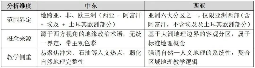 2. 去西方中心主义,彰显客观立场:“中东”是西方基于自身视角划分的地缘概念,隐含西方中心主义色彩。改为“西亚”体现以亚洲地理本体为核心的客观表述,契合全球视野下的地理教育价值观。