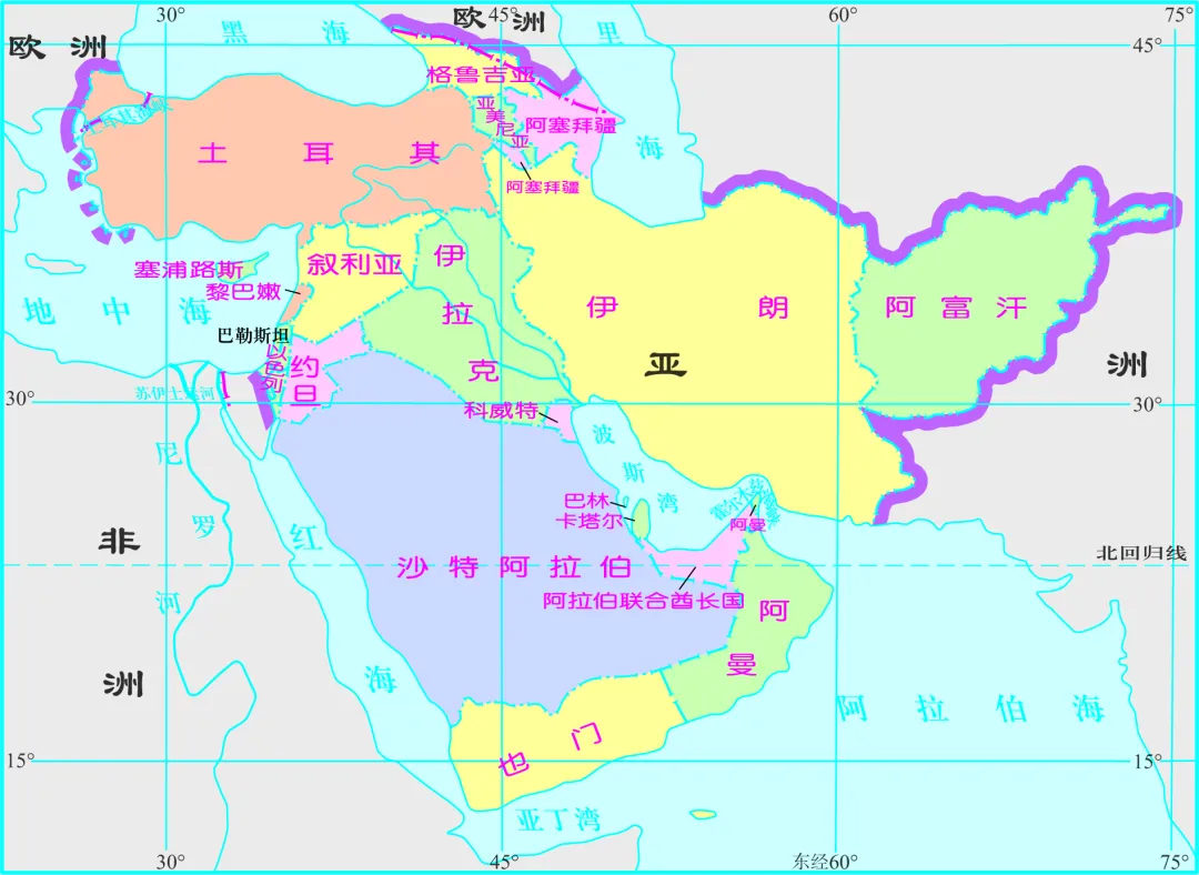 1. 地理科学性与规范性回归:西亚是亚洲地理分区的标准名称,范围清晰、边界明确,符合初中阶段“大洲 — 分区 — 国家”的认知体系,避免“中东”范围模糊带来的教学困惑。例如,阿富汗属于西亚却常被排除在中东之外,埃及属于中东却不属于西亚,易造成学生认知混乱。