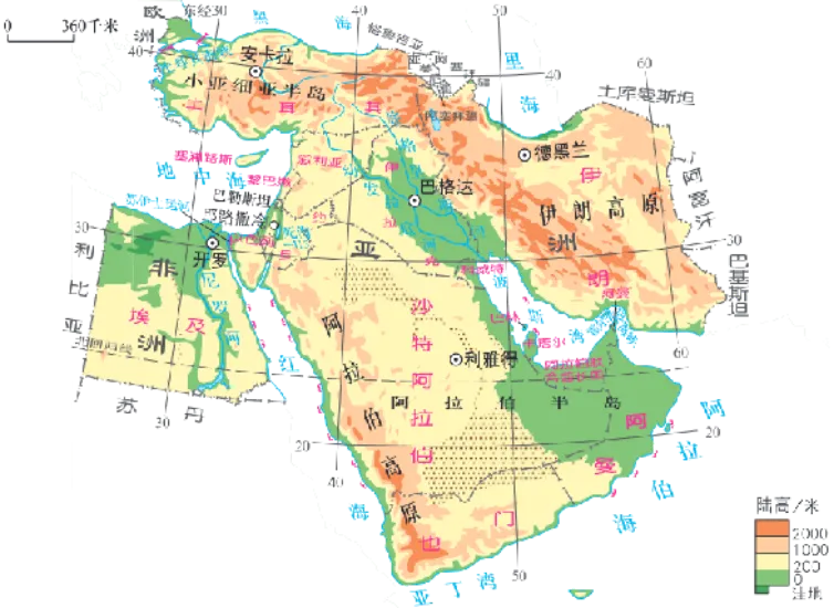 3.中东≠西亚:中东含埃及,不含阿富汗;西亚不含埃及,含阿富汗。