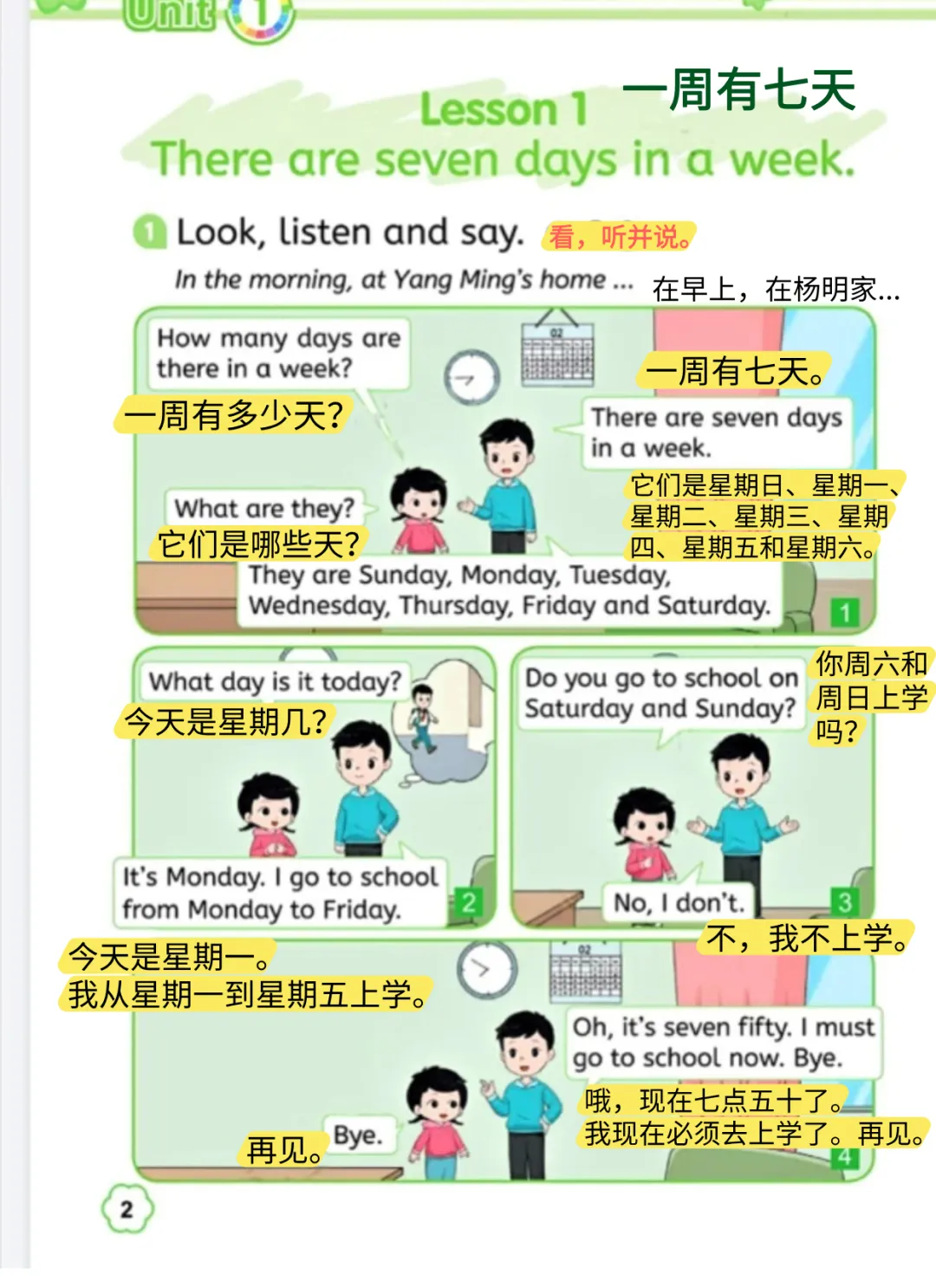 Lesson 1 There are seven days in a week.