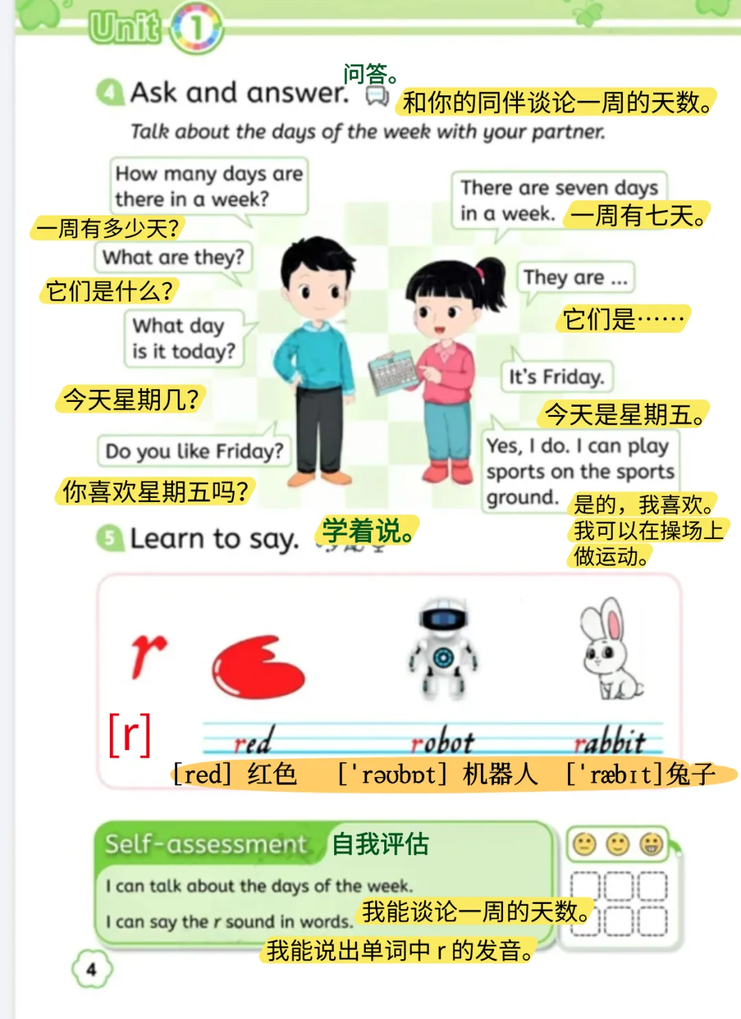 四年级下册 Unit 1 Lesson 1 核心内容提炼