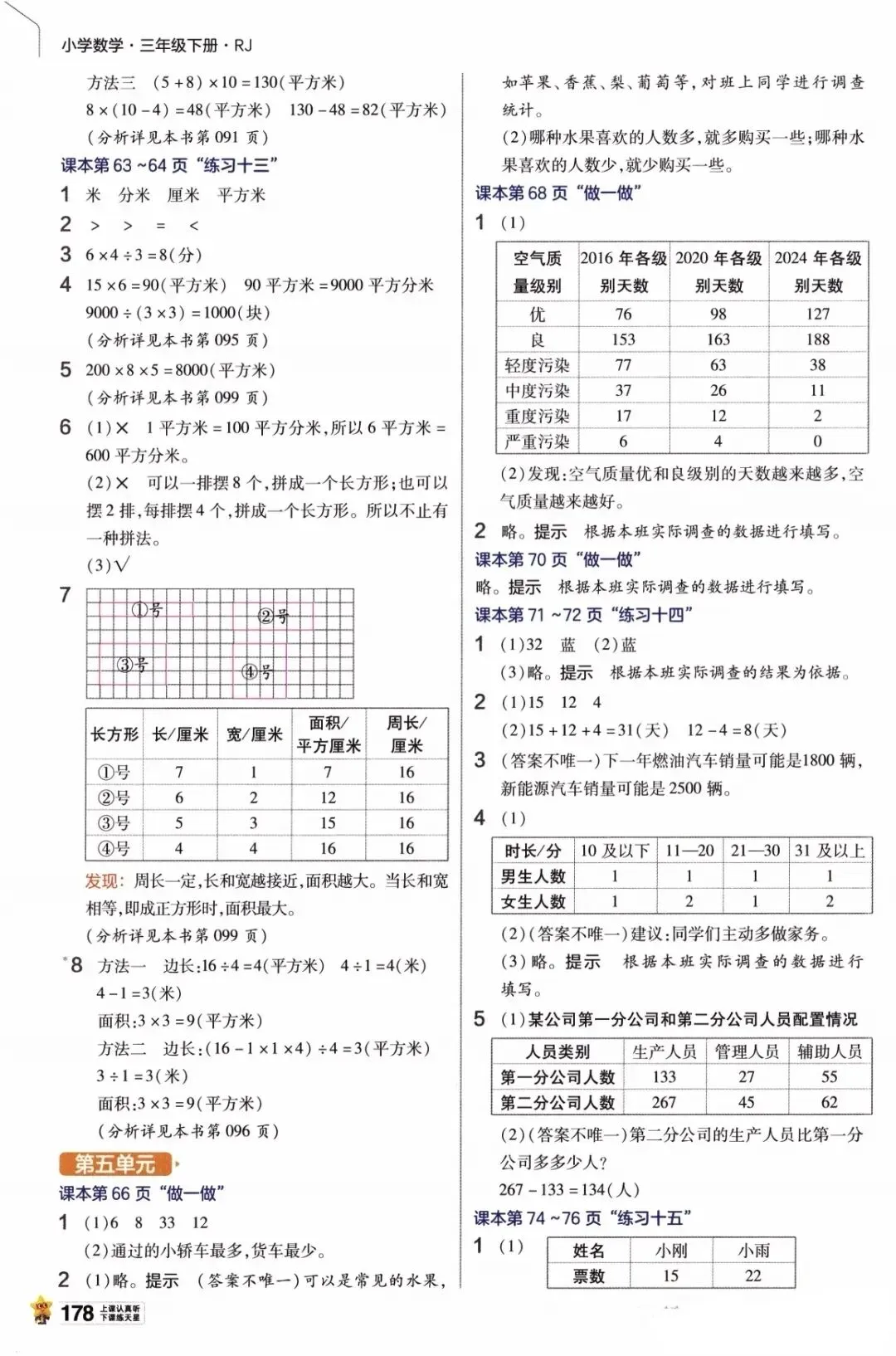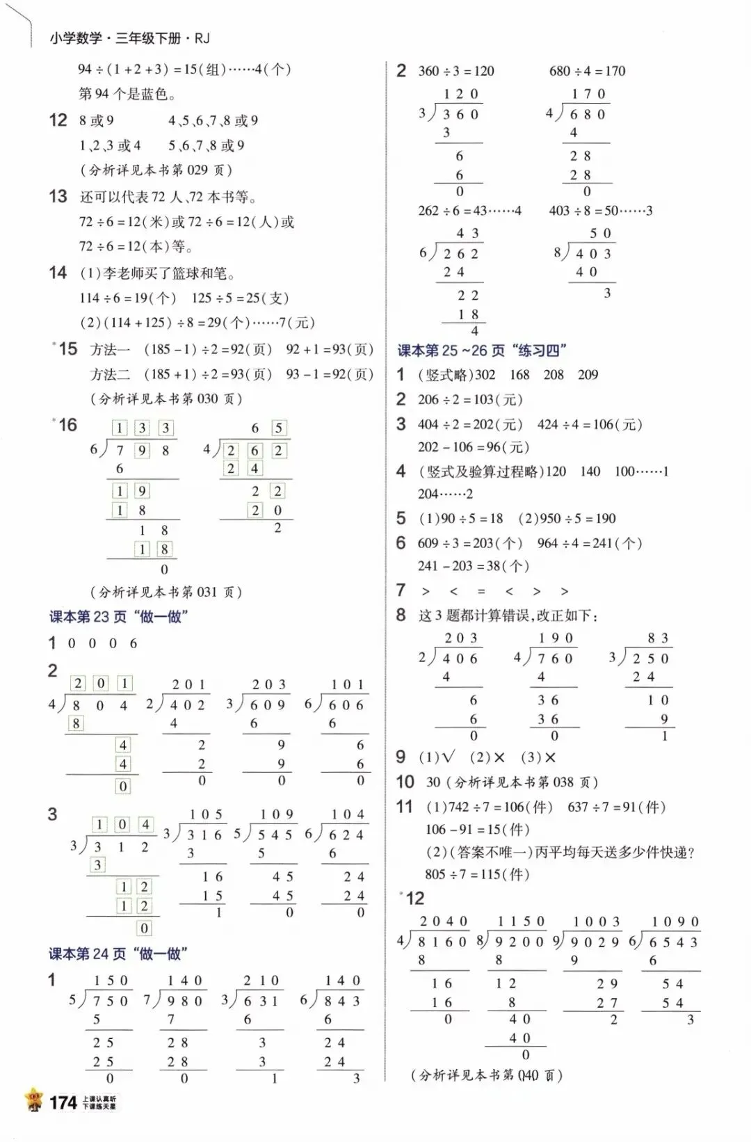 【答案】人教版小学数学三年级下册数学课本课后习题参考答案