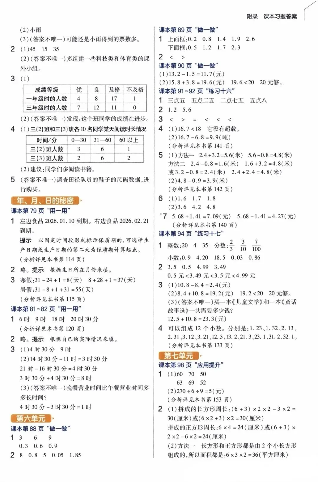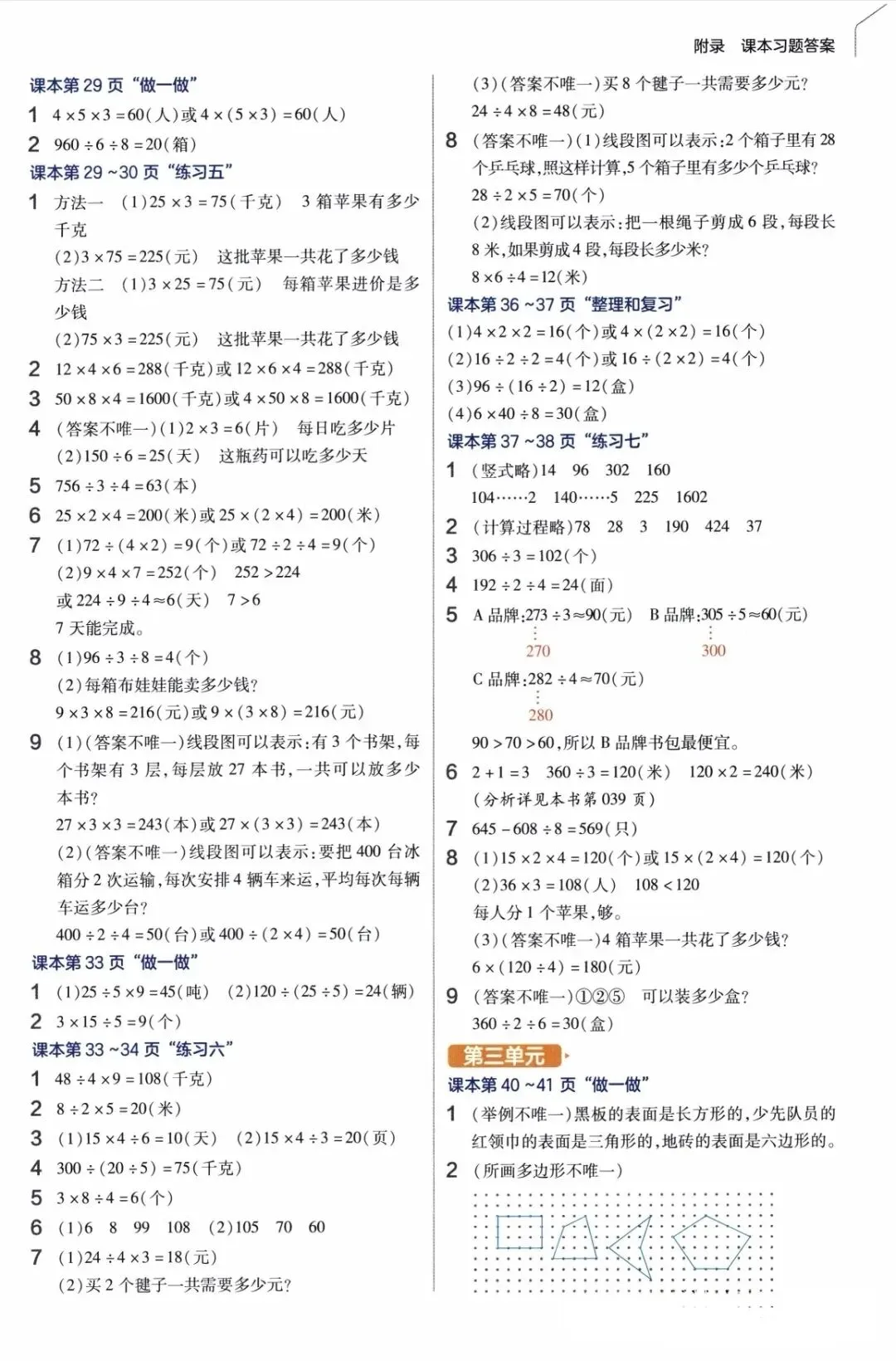 >【答案】人教版小学数学三年级下册数学课本课后习题参考答案