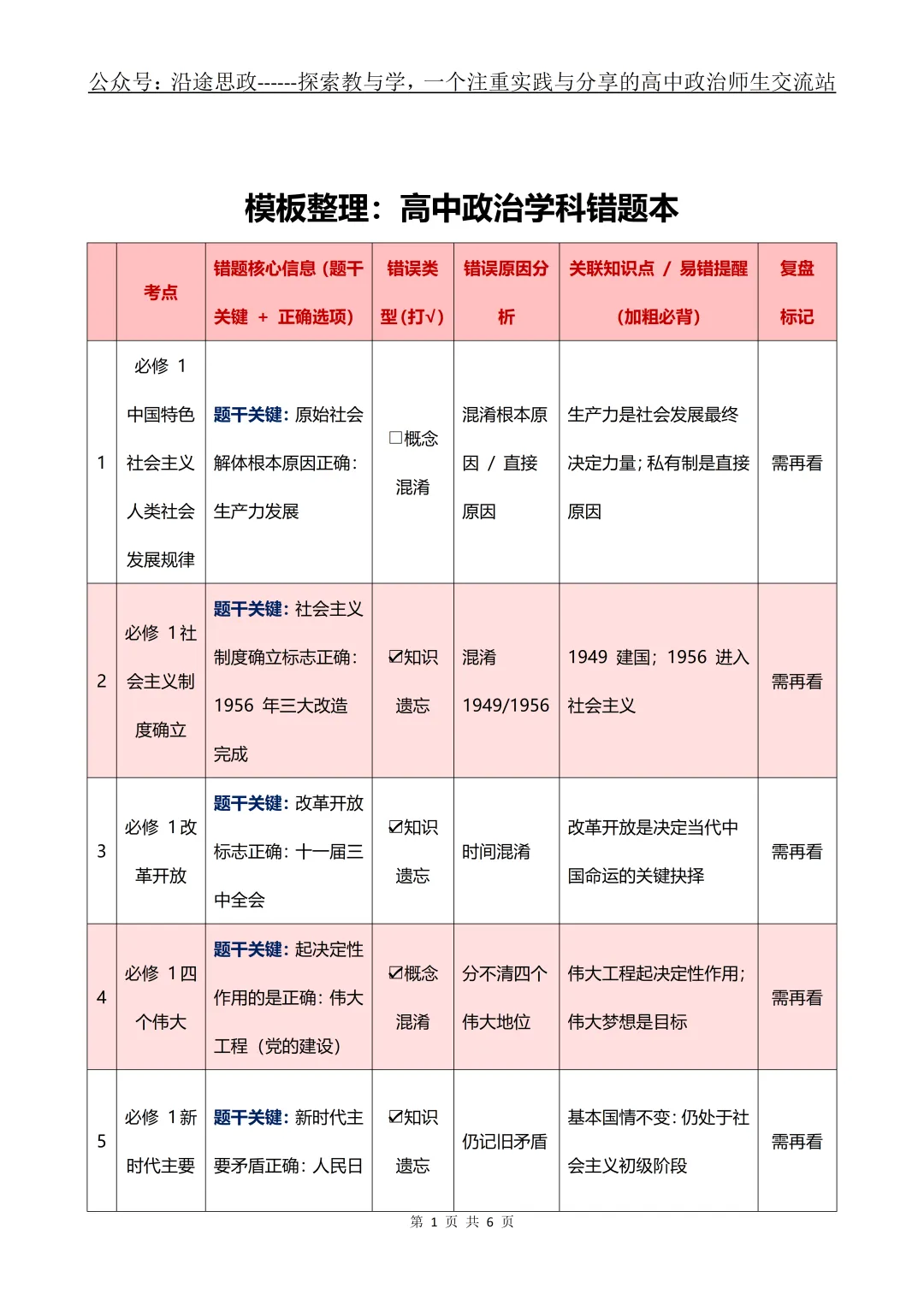 政治提分的关键,从来不是刷多少题,而是错的题有没有真正解决。抄题抄答案只是自我安慰,找到错因、记住要害,才能让错题变成分。