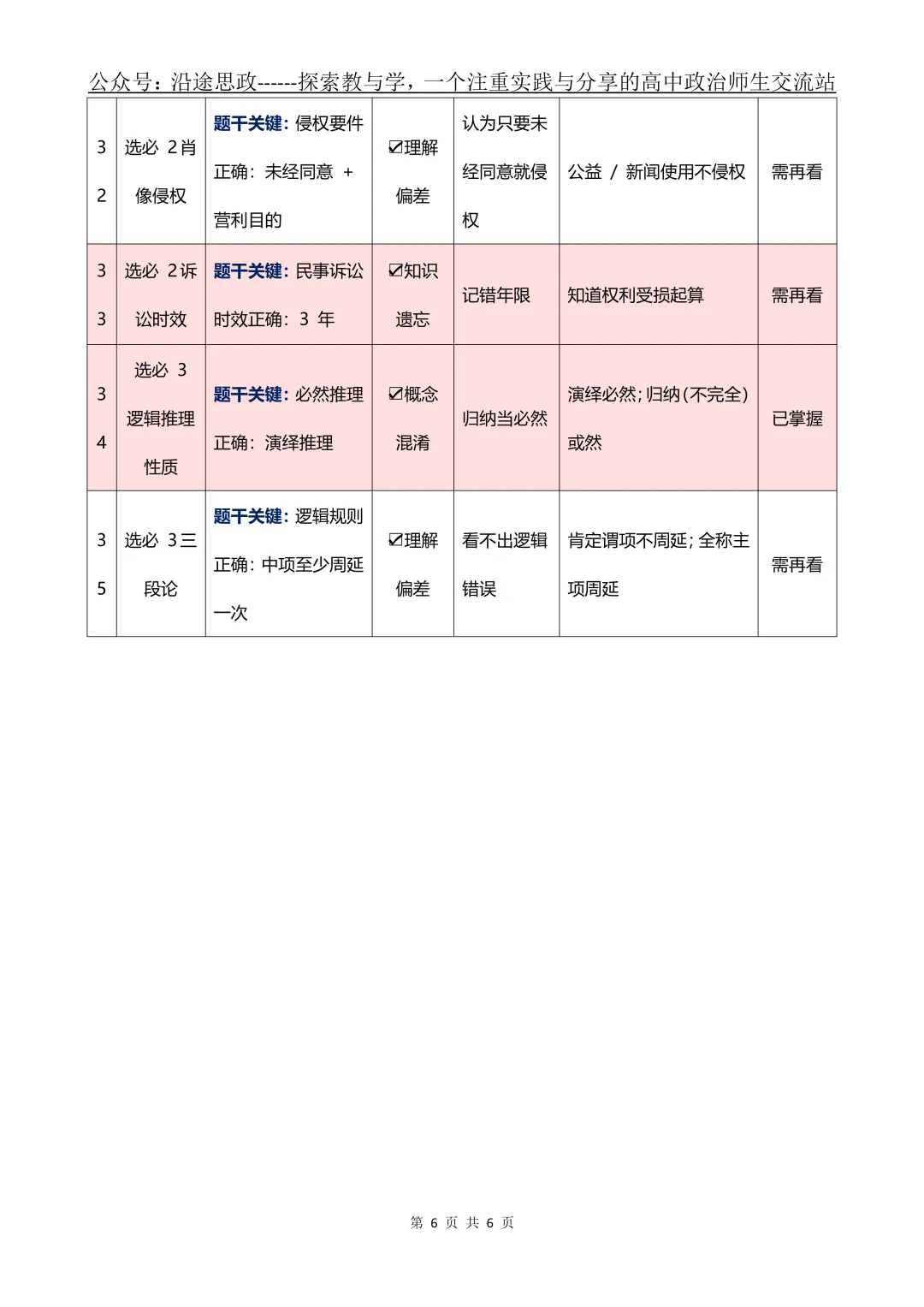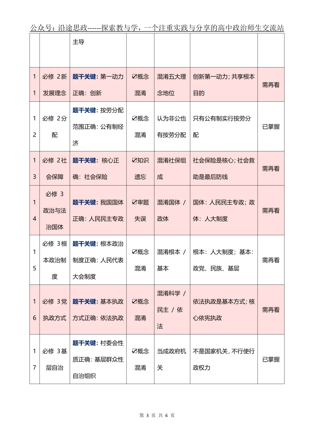 换位:高中政治7册教材目录概念“双重”思维背诵自查行动表,很治愈