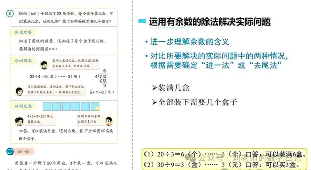 ★解決问题:利用实际情境感受“去尾法”“进一法”。