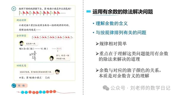 ★提供丰富的探究素材和情境,充分理解余数与被除数、余数与除数之间的关系,发展学生的推理意识。