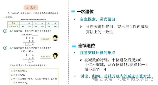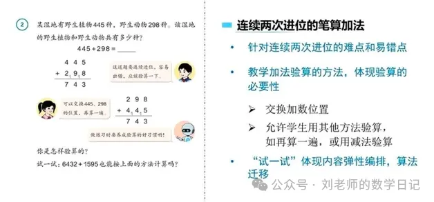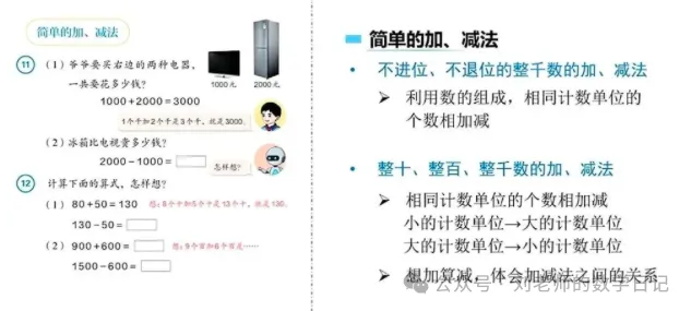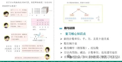 这个单元主要内容包含:万以内的加法——一次进位、连续进位;万以内的减法——一次退位、连续退位、被除数中间有0;还有一个重要的加减法各部分间的关系;用加减法来估算,解决实际问题。