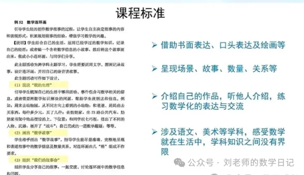 这个主题活动是让学生去结合自己的生活,运用学过的数学知识记录自己的经历,去讲一个数学知识的小故事,表达一些小的数学问题等,去感受数学知识和现实生活的联系。我们可以和语文或美术做一个学科的融合的这个活动,去感受各学科之间其实没有明显的边界。