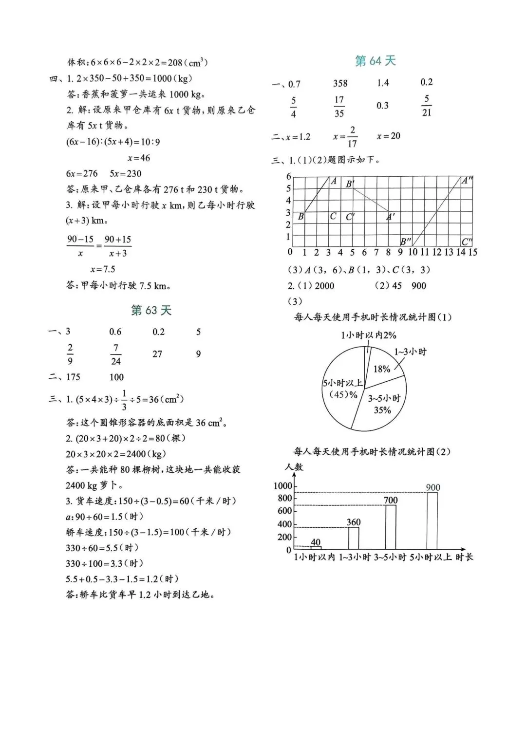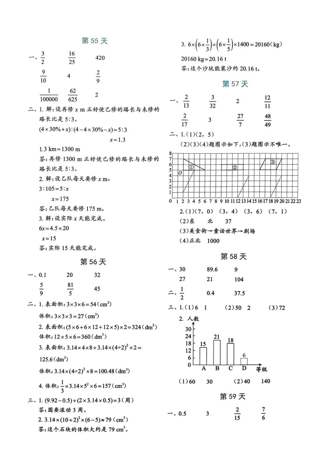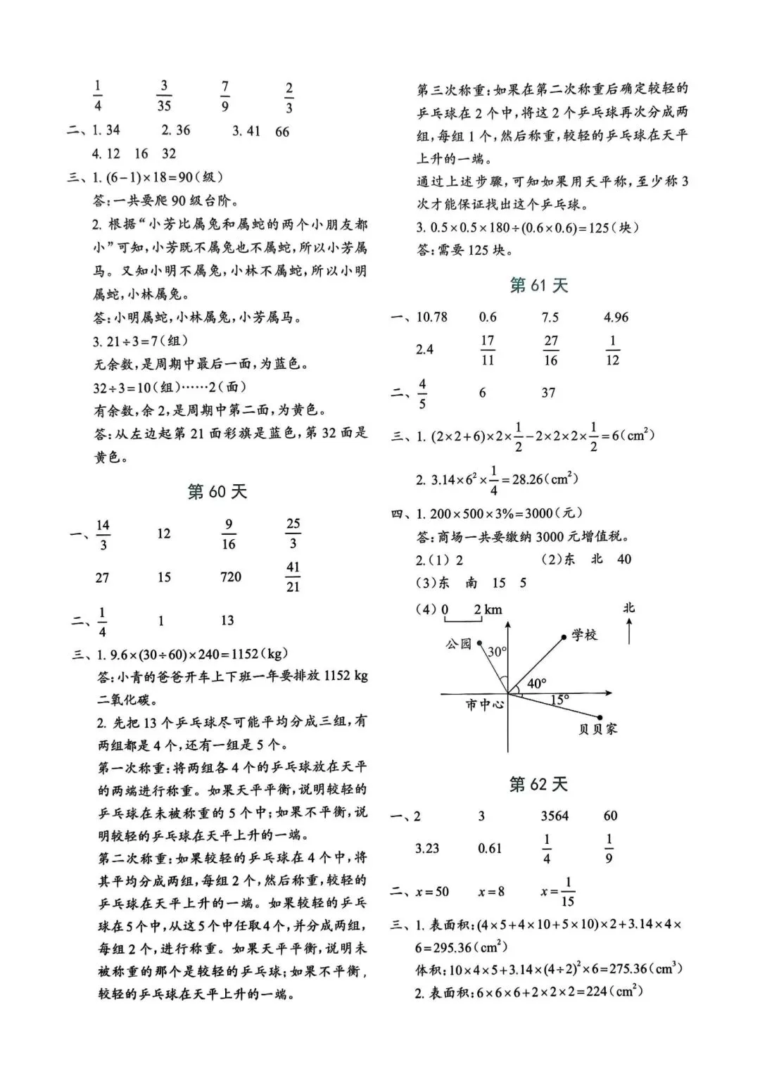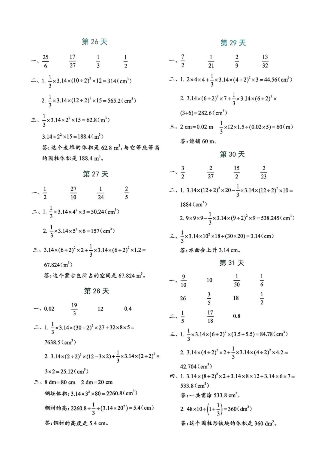 >人教版小学数学六年级下册同步课本每日一练小纸条