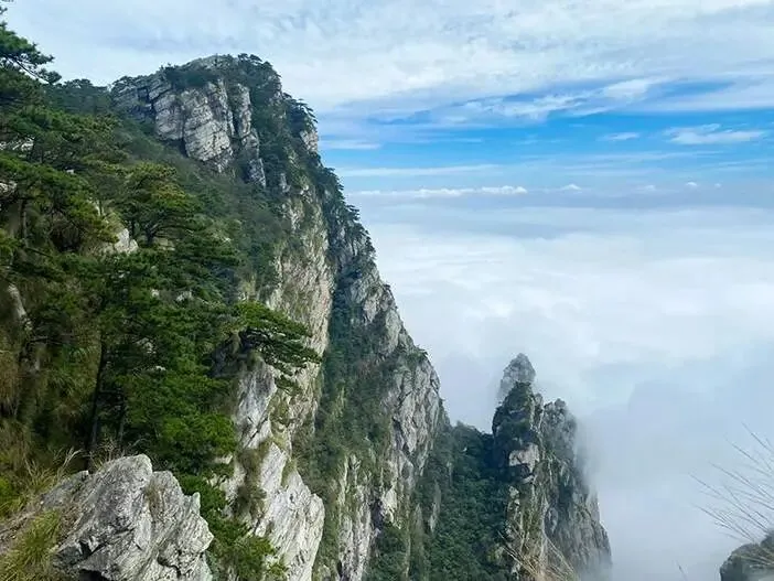 五老峰由并列的五个山峰组成,仰望俨若席地而坐的五位老翁。五个山峰各具特色,一峰到五峰景色各异,攀爬过程中可以欣赏到奇松、怪石、云海等景观。站在五老峰上,视野极为开阔,能俯瞰到鄱阳湖的浩渺烟波和周边的层峦叠嶂,让人感受到大自然的雄伟与壮观。