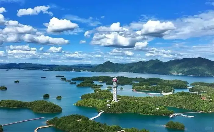 西海之星:高空观景核心。岛上的 99 米西海之星玻璃观光塔是地标,全透明的观景平台可 360° 俯瞰庐山西海数千岛屿的壮阔景观,还有归去来兮看台、护塔龙王等小景,日落时分登塔景色尤佳。