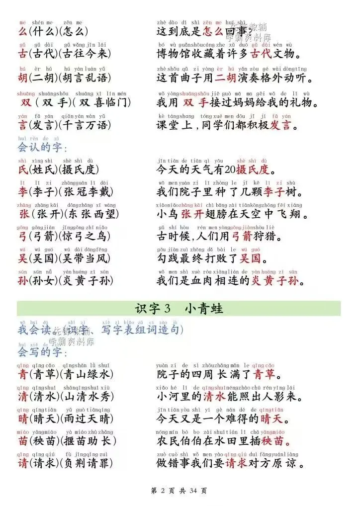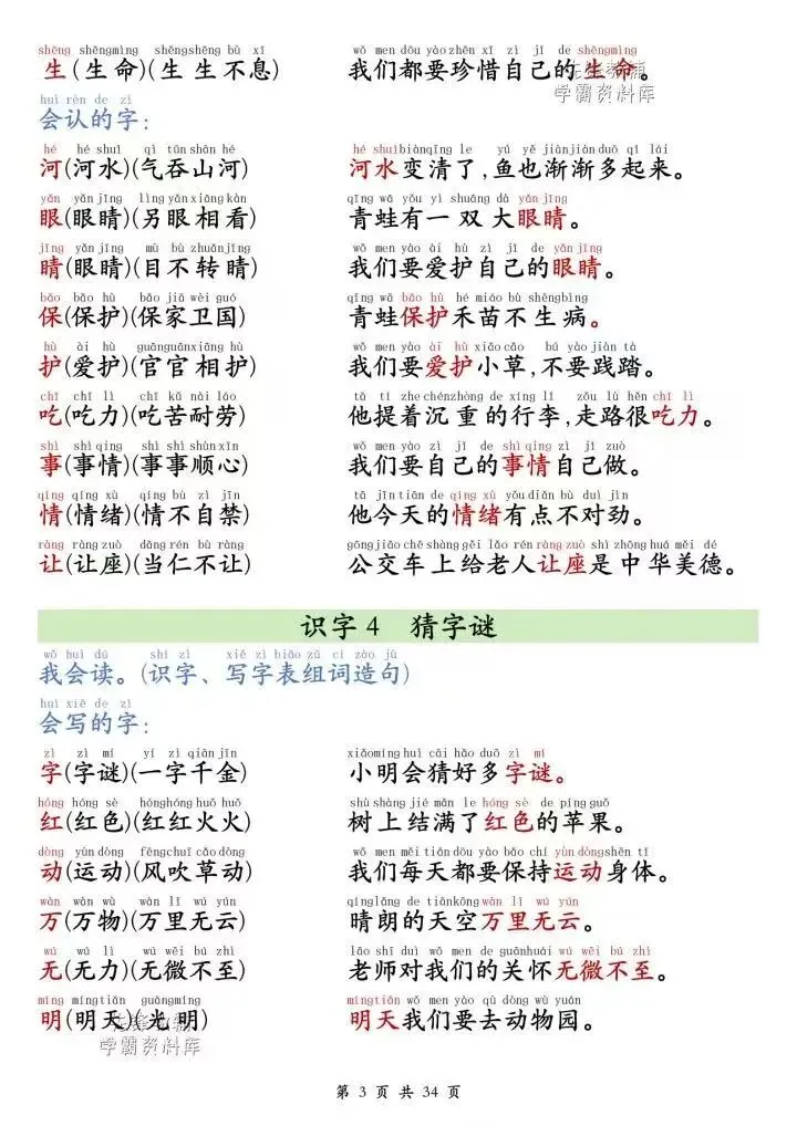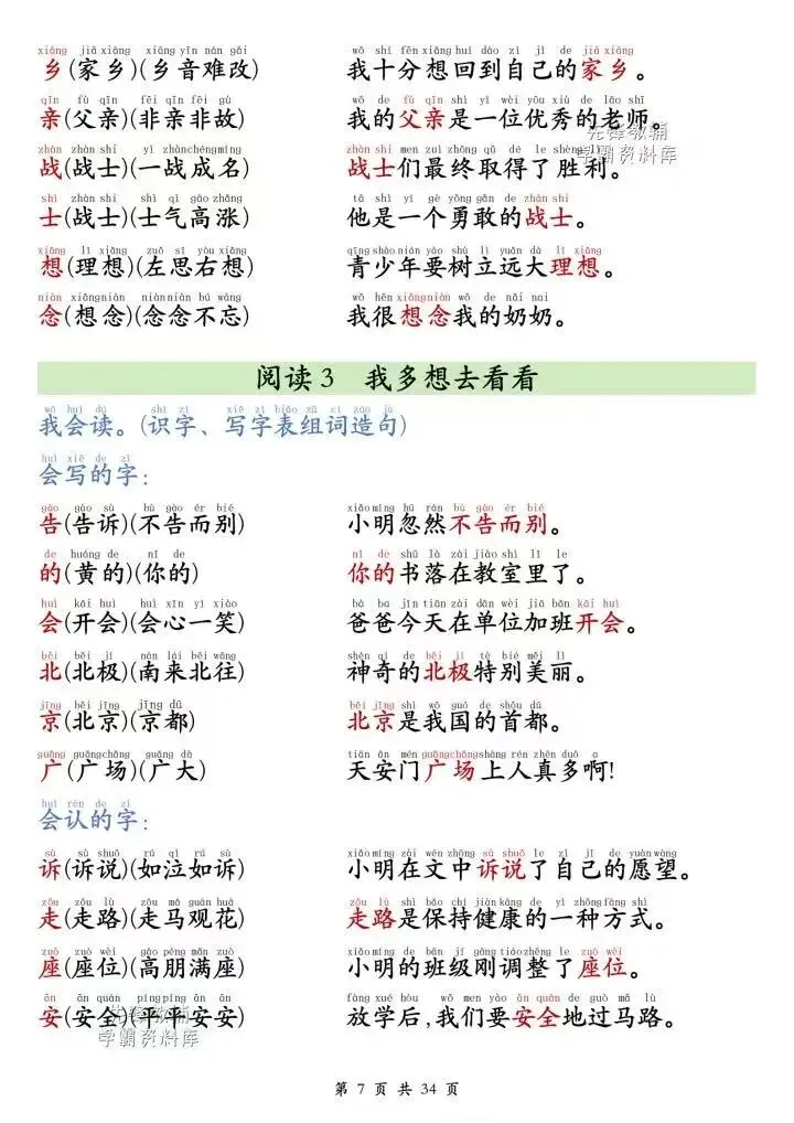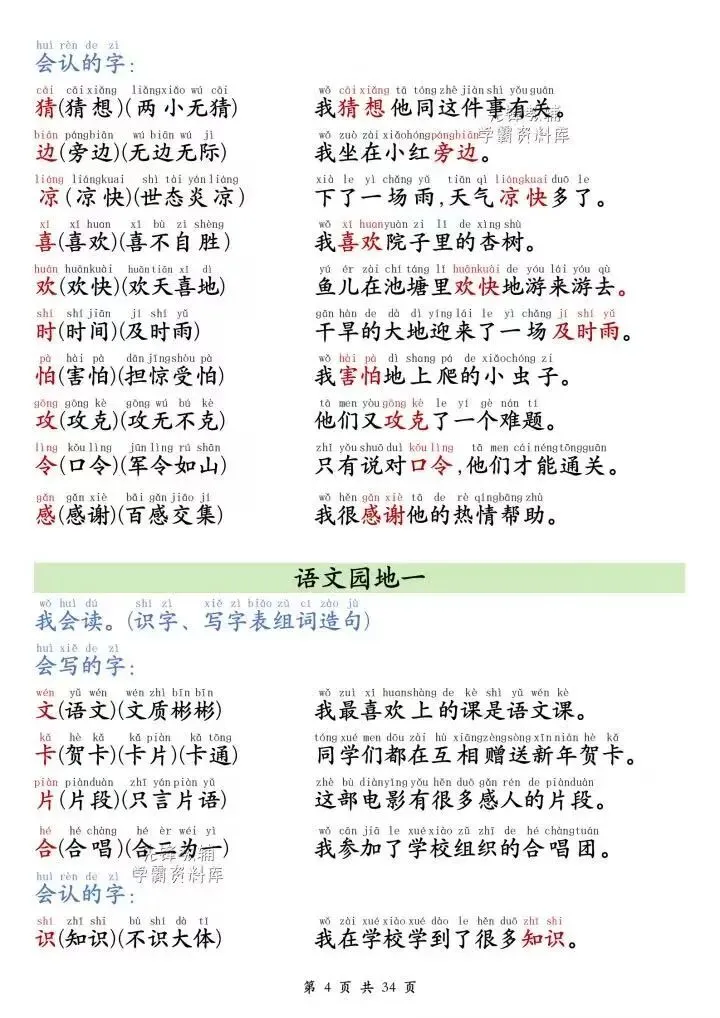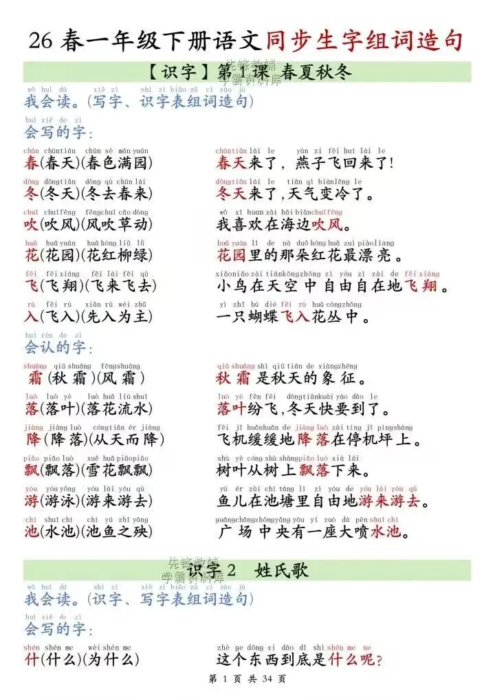 【小学语文】26春一年级下册语文课本同步《生字+组词+造句》每日晨读单 | 带注音会写字 | 会认字