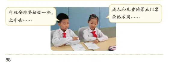 翻开北师大版三年级下册数学教材,我校学子的身影出现在多个课例之中——第24页“平移和旋转” 、第42页“周长的整理与复习”、第84页至85页“抓得住吗”、第87页“搜集旅行信息” 和第88页“制订家庭旅行计划” 都有他们学习活动的画面。镜头定格的虽是部分同学的瞬间,呈现的却是我校每一位同学的校园学习缩影——严谨的测量、专注的思考、热烈的讨论,都展示着东师学子日常学习最真实的模样。