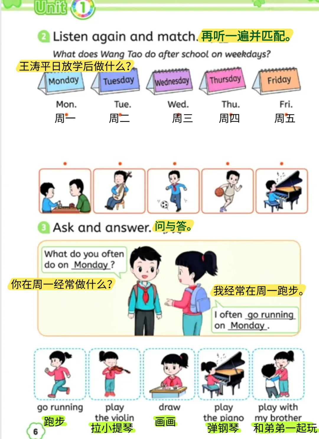 第二课 我经常在周一踢足球。