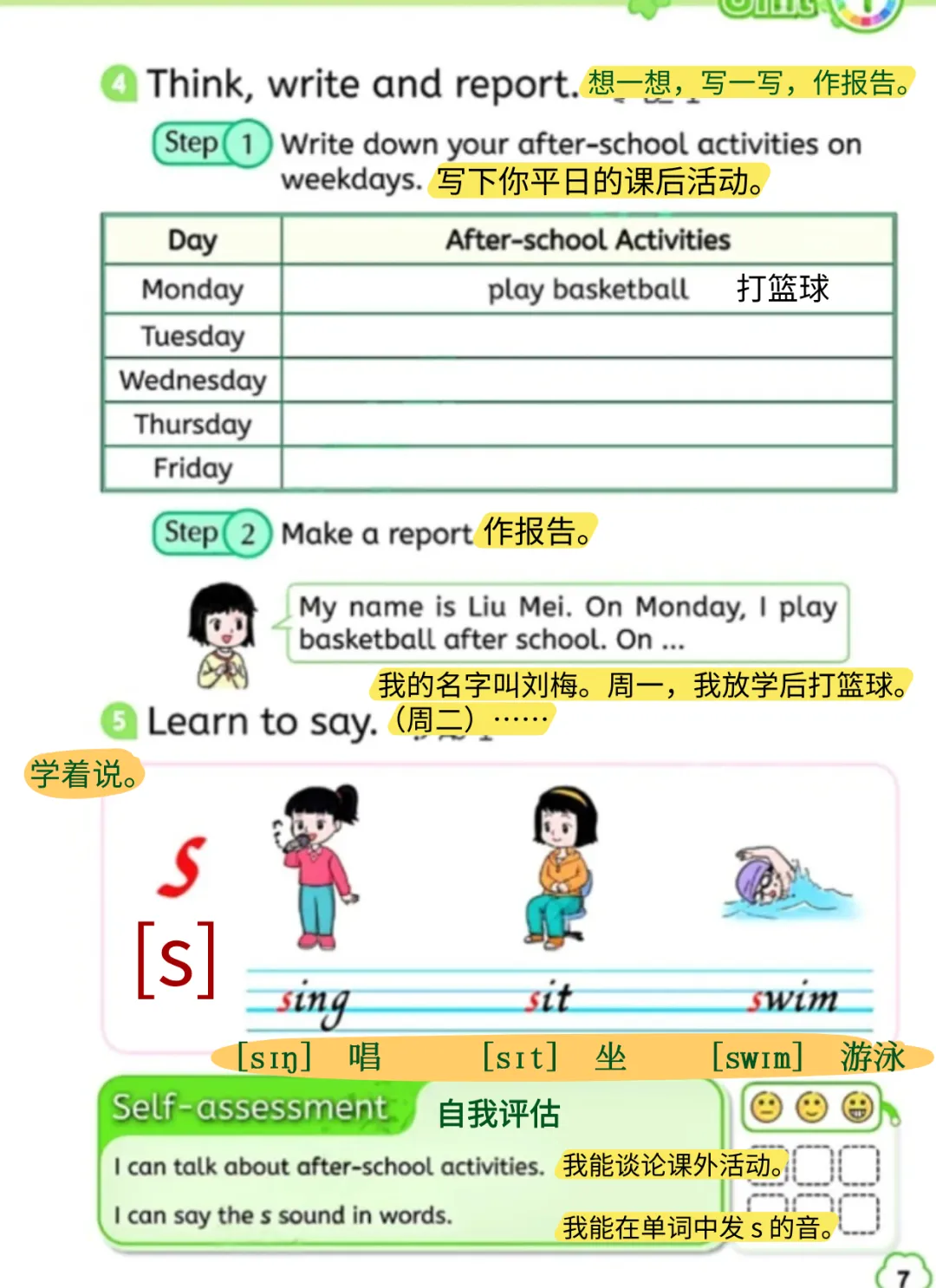 我的名字叫刘梅。周一,我放学后打篮球。在(周二)……
