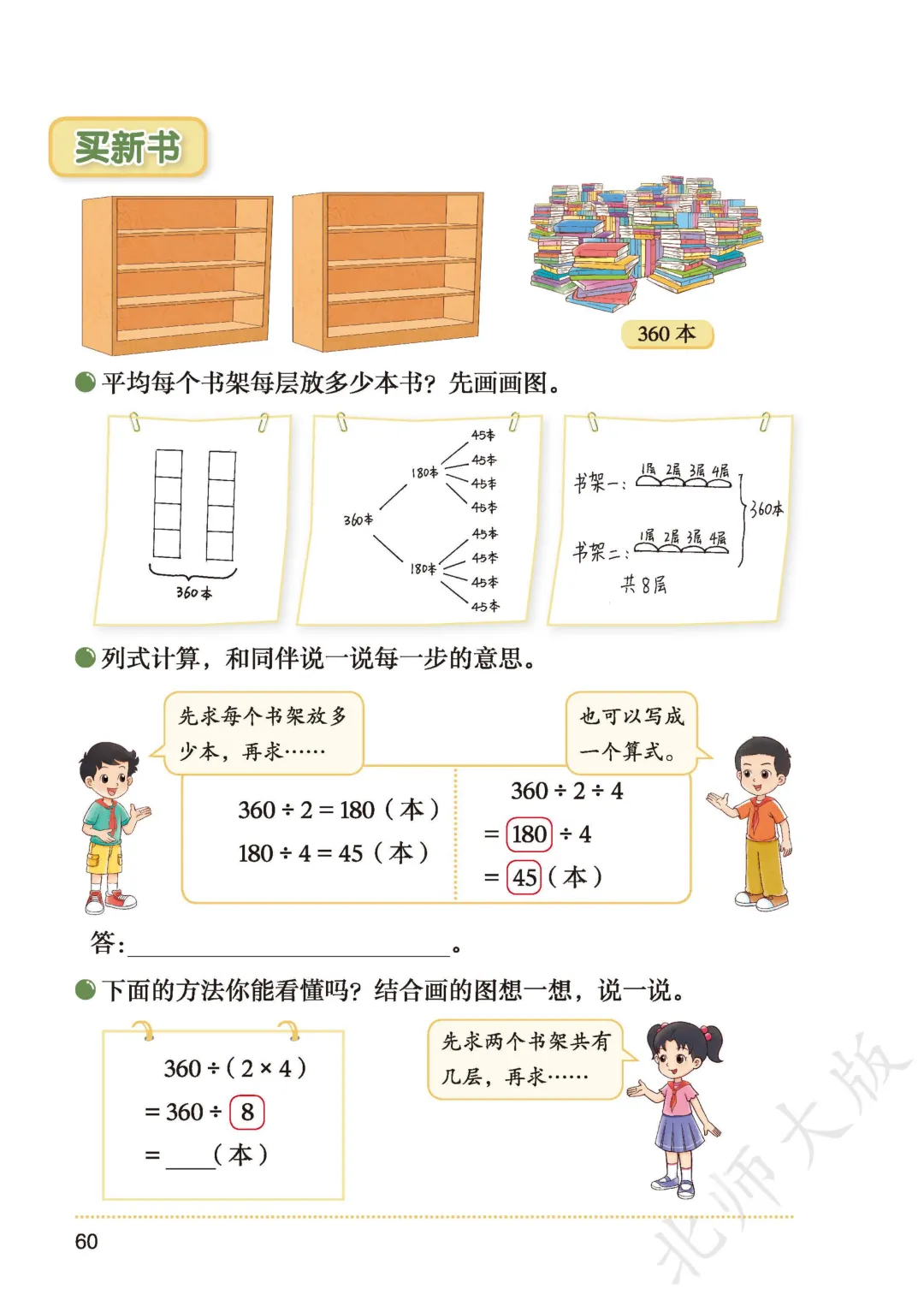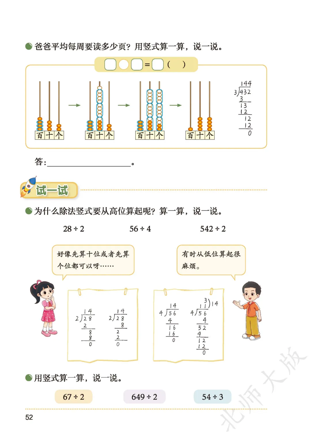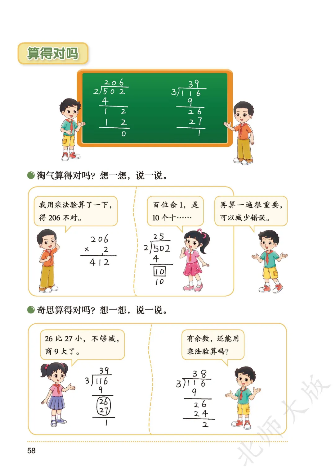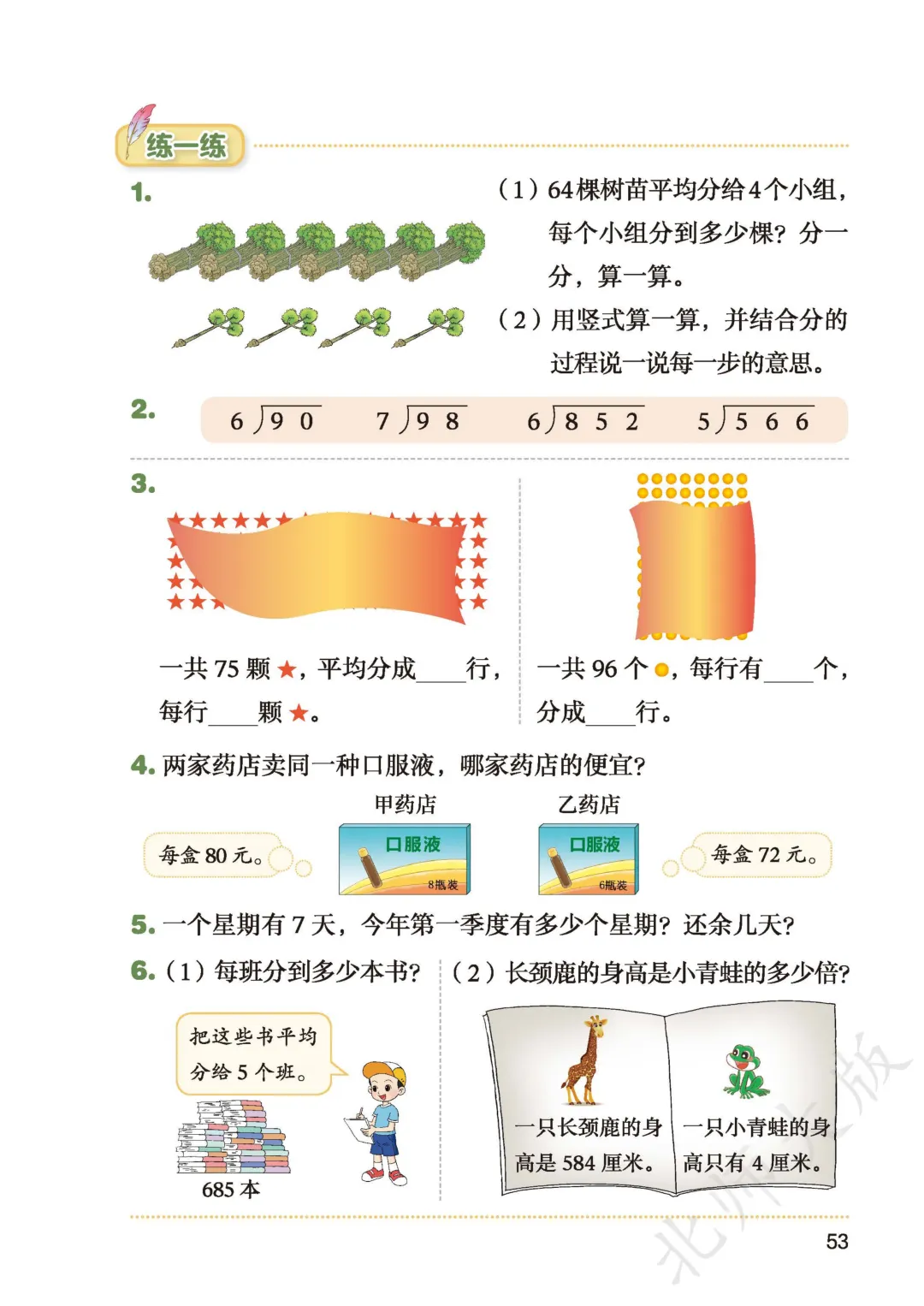 分松果、分幸运星、家庭阅读……这个单元我们学习除法。我们会用表格记录分的过程,学习用竖式计算除法,理解从高位算起的道理。我们会遇到“猴子的烦恼”——306个桃子平均分给3只猴子,每只分多少?原来商的中间有0!我们还会学习验算,确保计算正确。最后,我们要用除法解决生活中的问题,比如买新书、讲故事,看看怎样安排最合理。