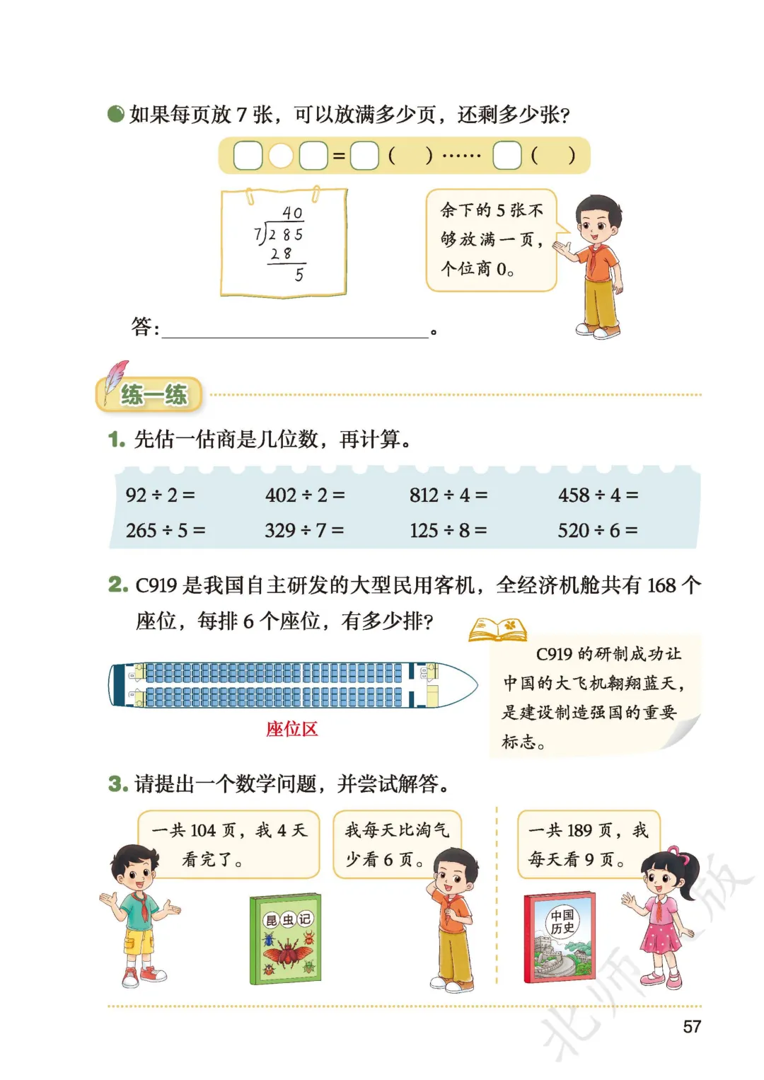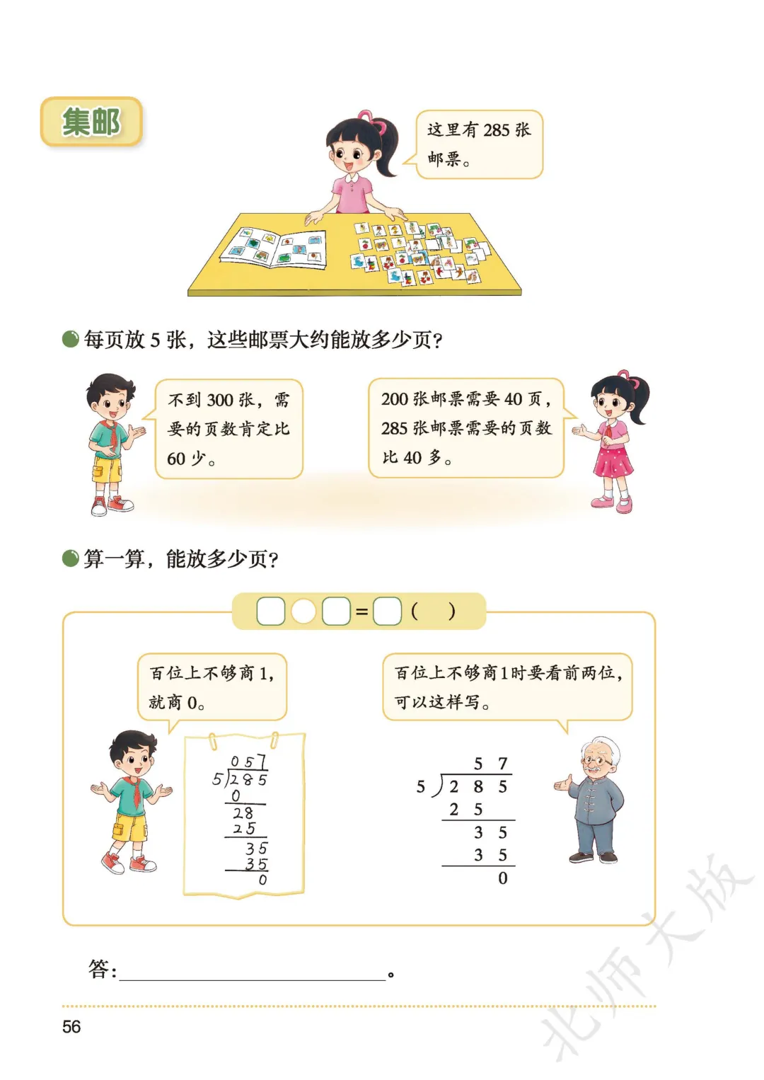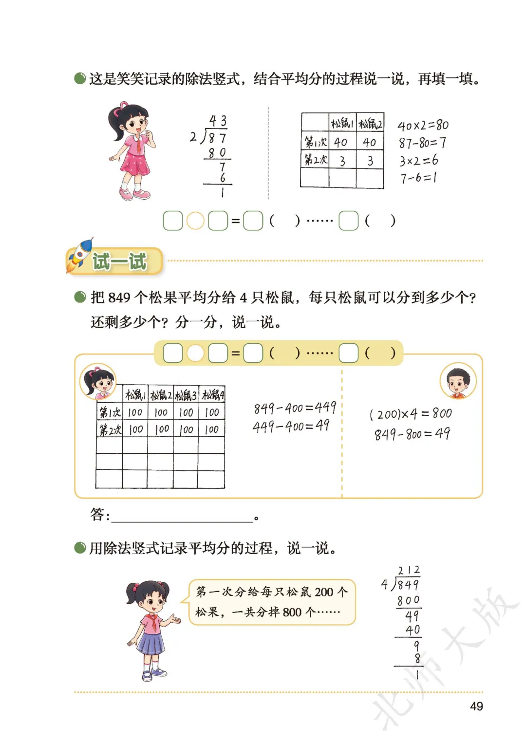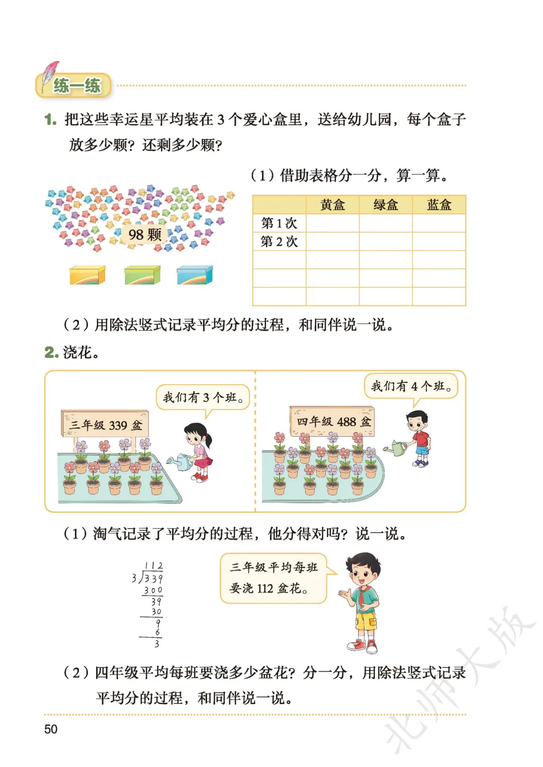 分松果、分幸运星、家庭阅读……这个单元我们学习除法。我们会用表格记录分的过程,学习用竖式计算除法,理解从高位算起的道理。我们会遇到“猴子的烦恼”——306个桃子平均分给3只猴子,每只分多少?原来商的中间有0!我们还会学习验算,确保计算正确。最后,我们要用除法解决生活中的问题,比如买新书、讲故事,看看怎样安排最合理。