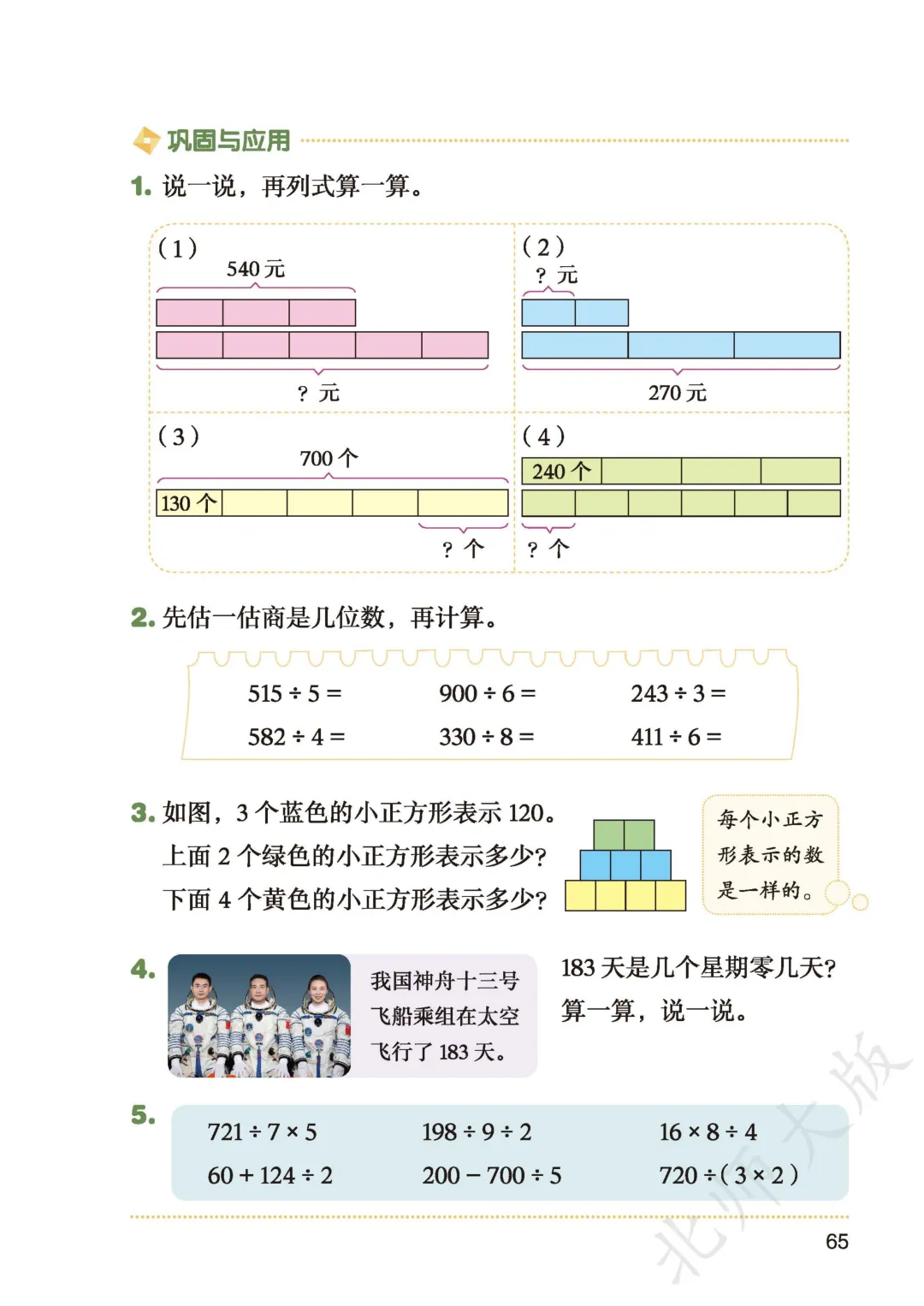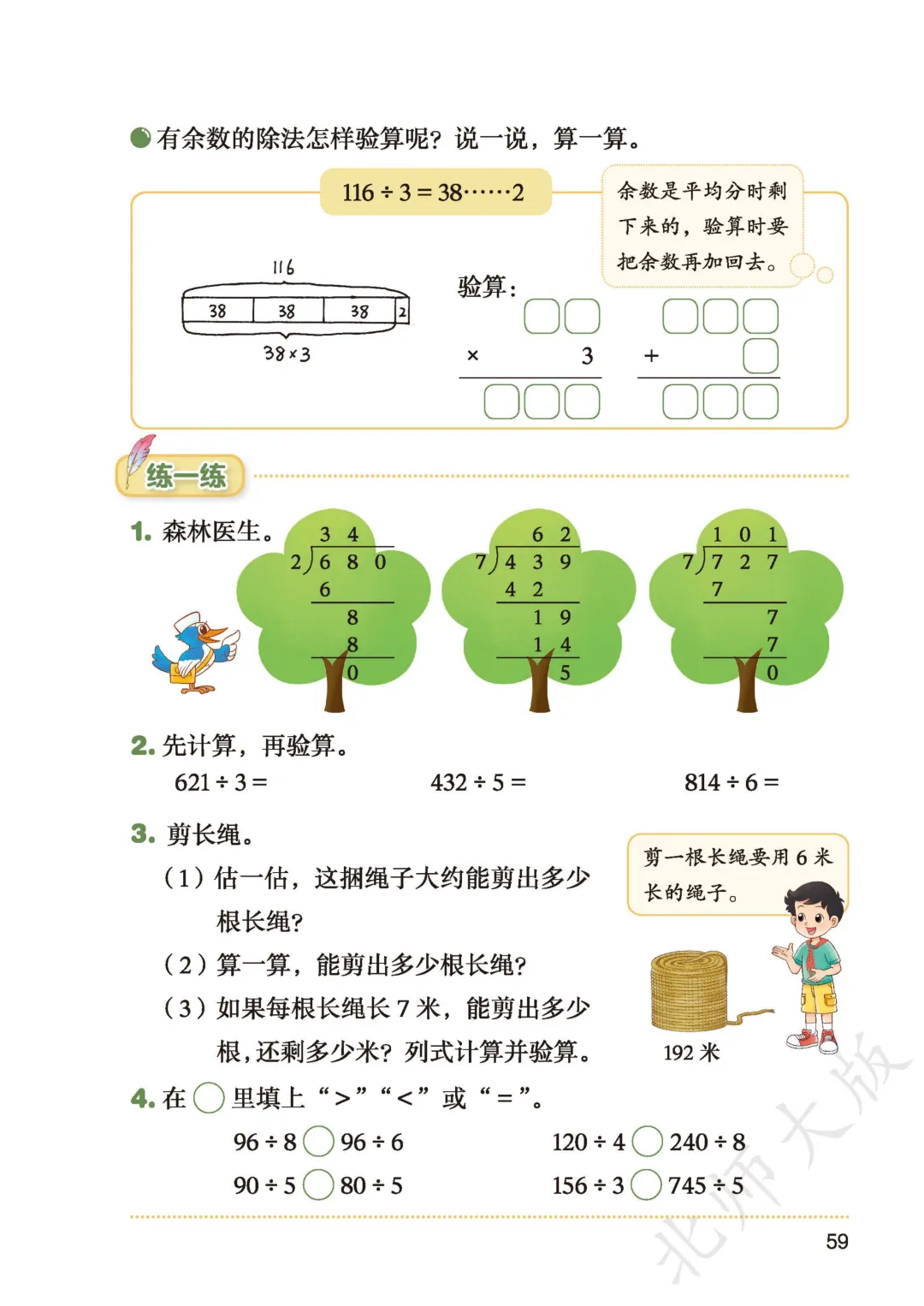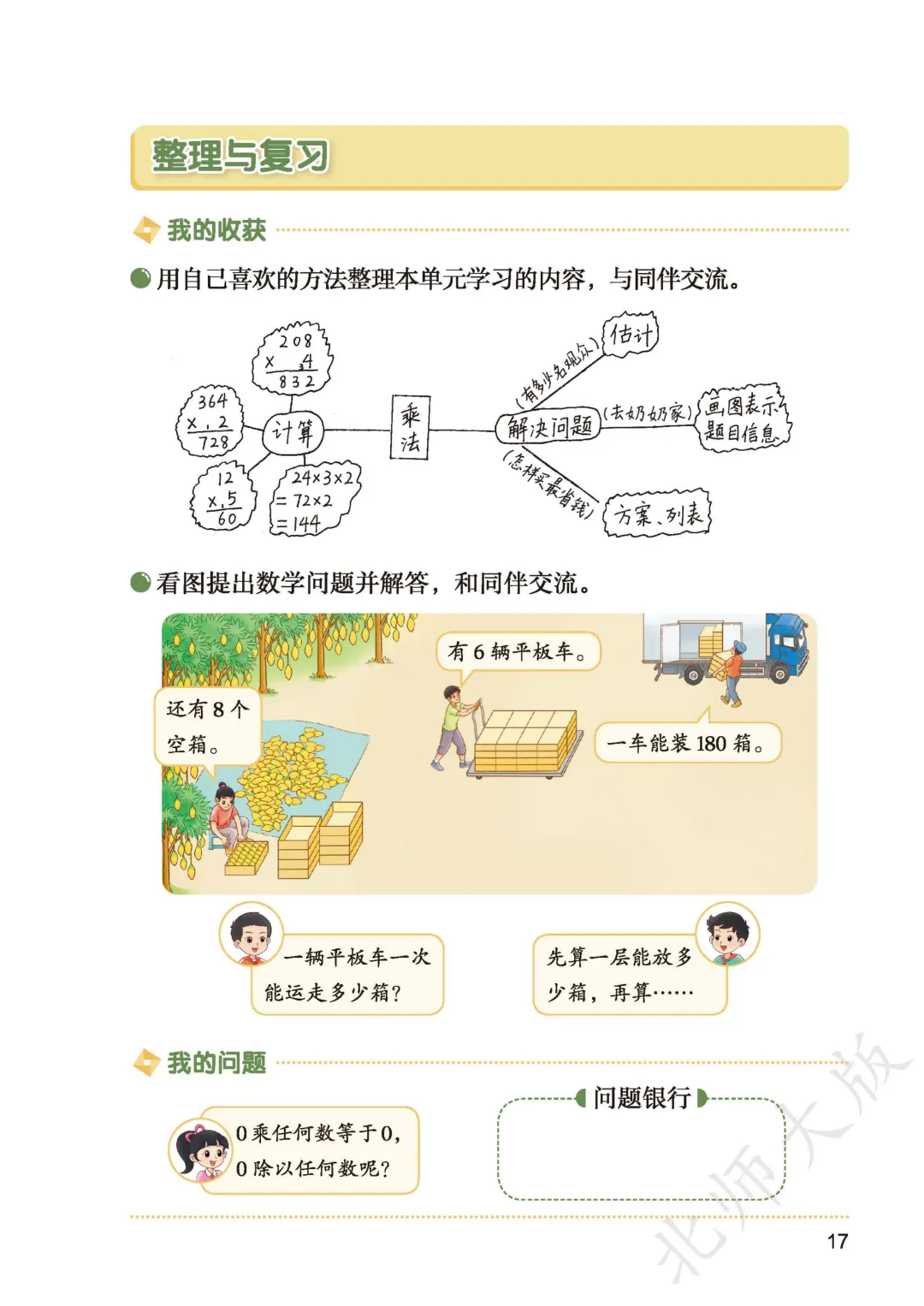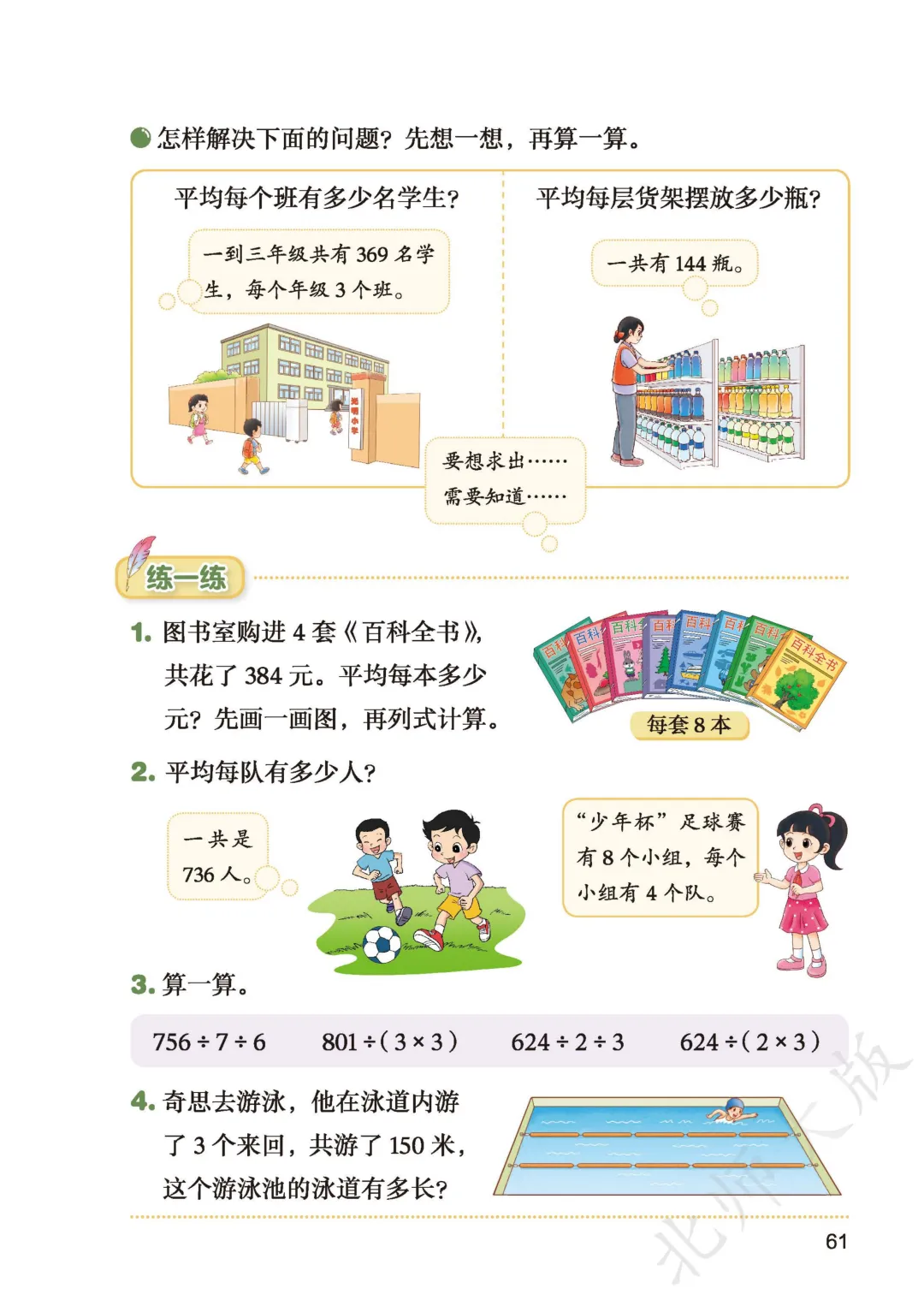 分松果、分幸运星、家庭阅读……这个单元我们学习除法。我们会用表格记录分的过程,学习用竖式计算除法,理解从高位算起的道理。我们会遇到“猴子的烦恼”——306个桃子平均分给3只猴子,每只分多少?原来商的中间有0!我们还会学习验算,确保计算正确。最后,我们要用除法解决生活中的问题,比如买新书、讲故事,看看怎样安排最合理。