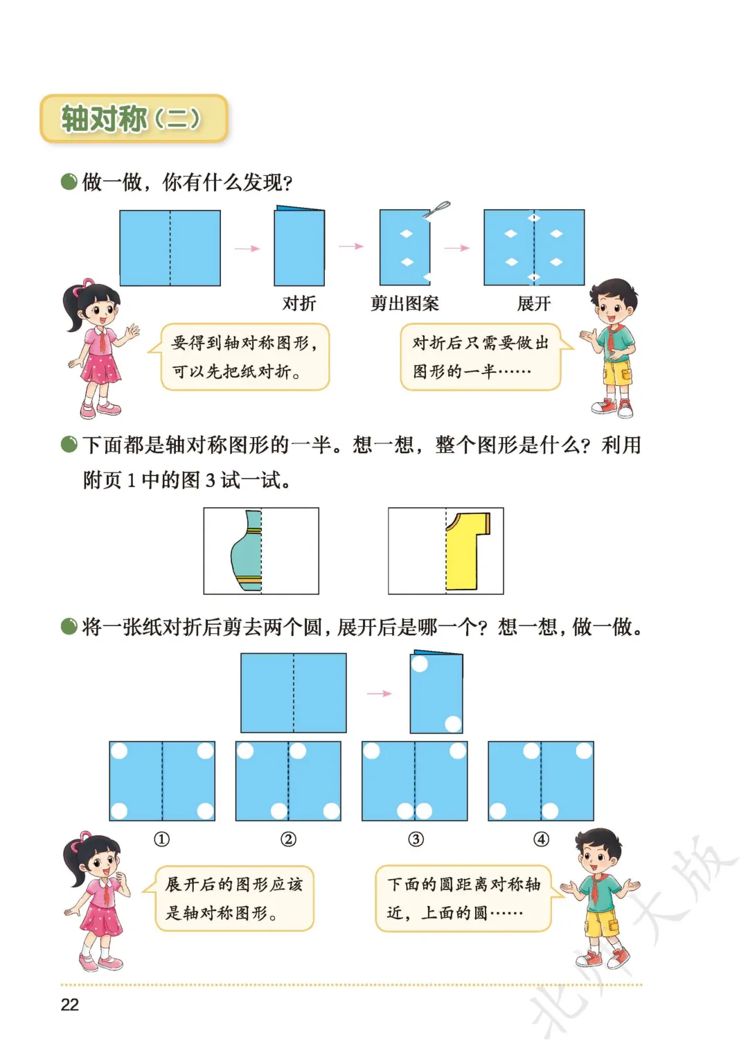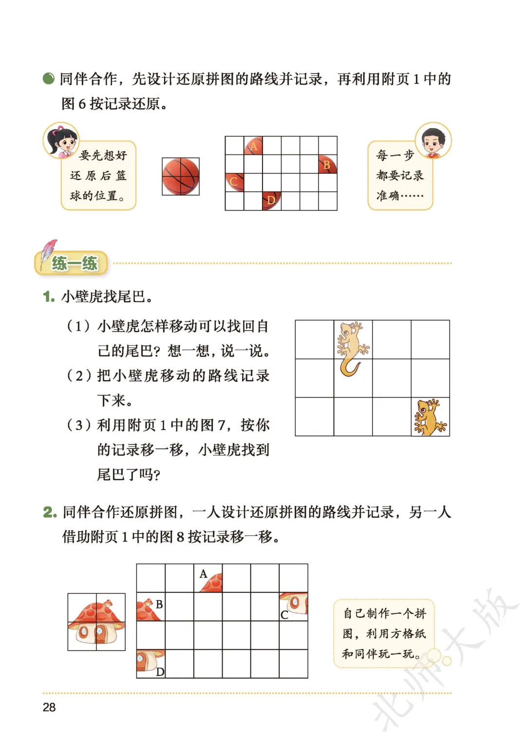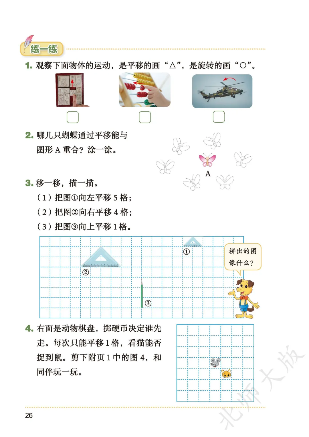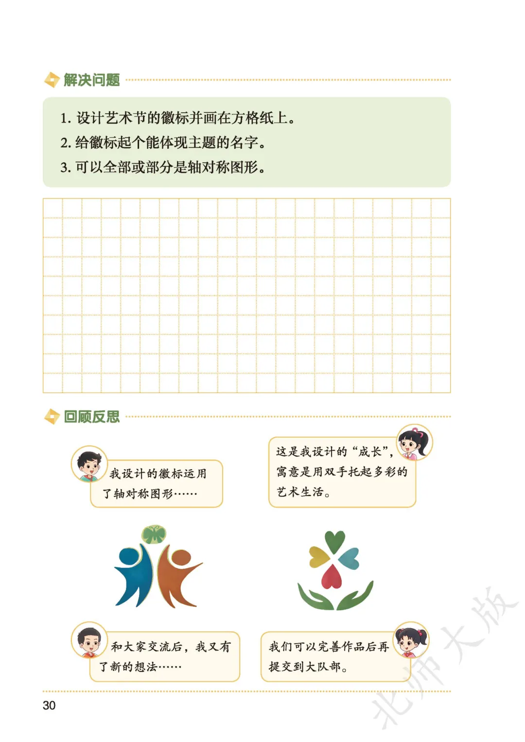 剪纸、折纸、拼图……这个单元我们动手又动脑!我们会认识轴对称图形,发现很多漂亮的图案都是对称的。我们还会研究平移和旋转,看看生活中的电梯、风车是怎么运动的。最有趣的是“能移回去吗”,我们要用平移的方法,把打乱的拼图恢复原状,还要记录移动的路线呢!最后,我们还要当“小小设计师”,为艺术节设计一个漂亮的徽标,把学到的图形知识都用上。