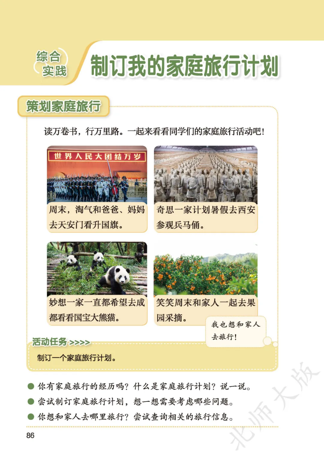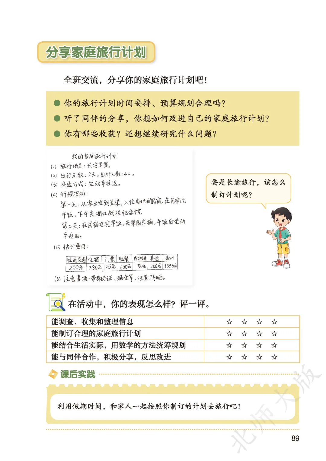 综合实践:制订我的家庭旅行计划——我是小小旅行规划师