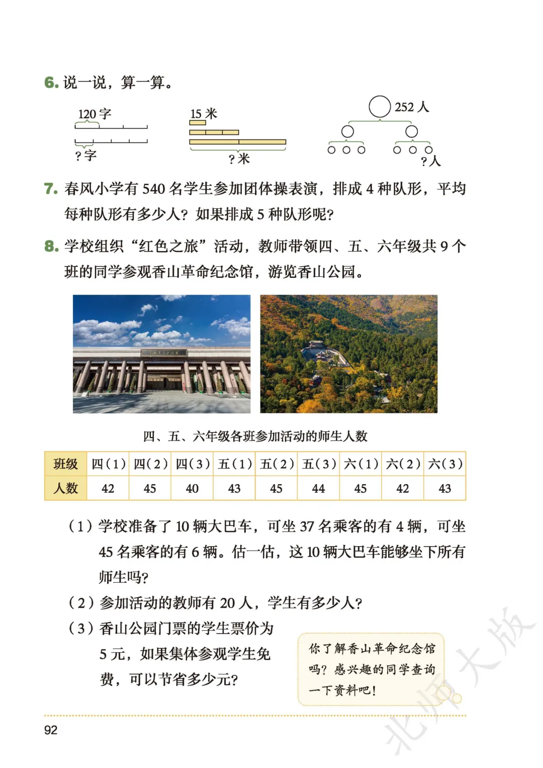 “读万卷书,行万里路”。你想和家人去哪里旅行?这个单元,我们要当一次旅行规划师,亲手制订一份家庭旅行计划。我们需要考虑去哪里、怎么去、玩什么、吃什么、花多少钱……要收集信息、计算费用、安排行程。这不仅能用到数学知识,还能锻炼我们的规划能力和决策能力。说不定,你的计划真的会被家人采纳哦!