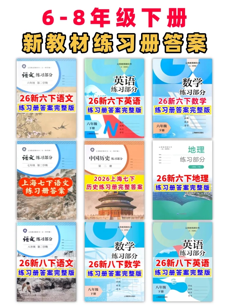 上海初中生必备!上海六年级、七年级、八年级下学期新版教材配套练习册答案已经全部整理好喽✨ !