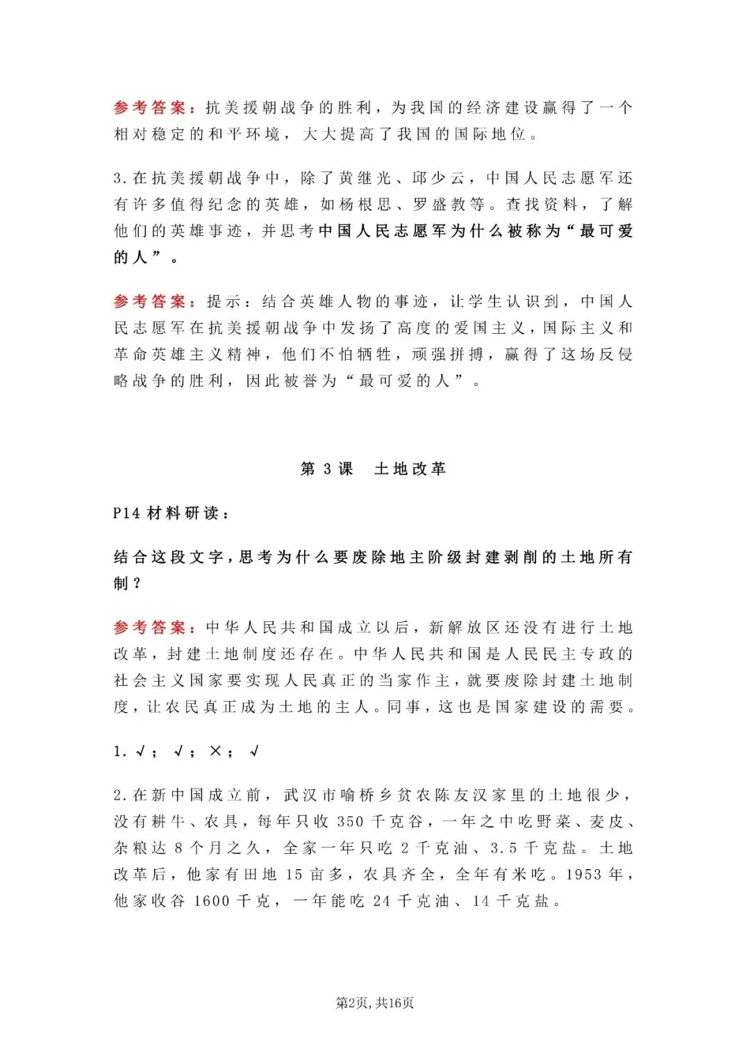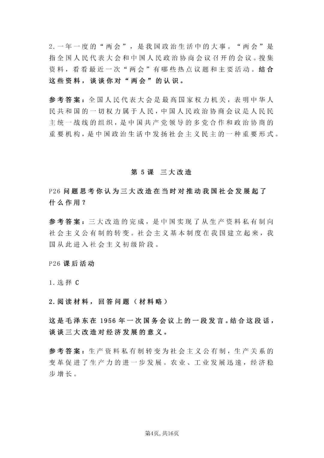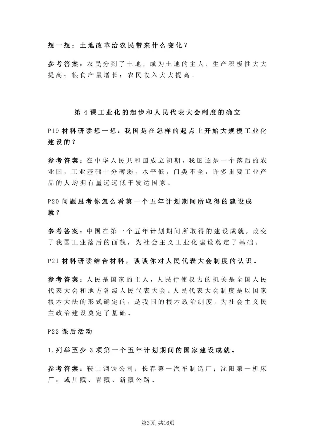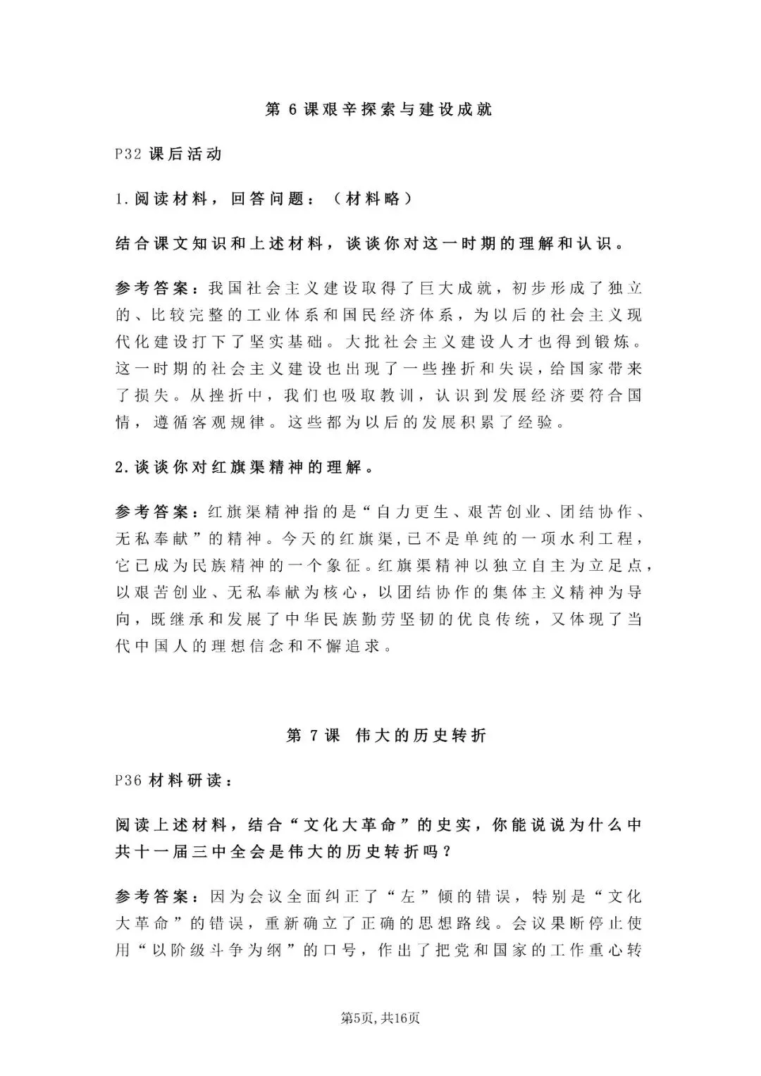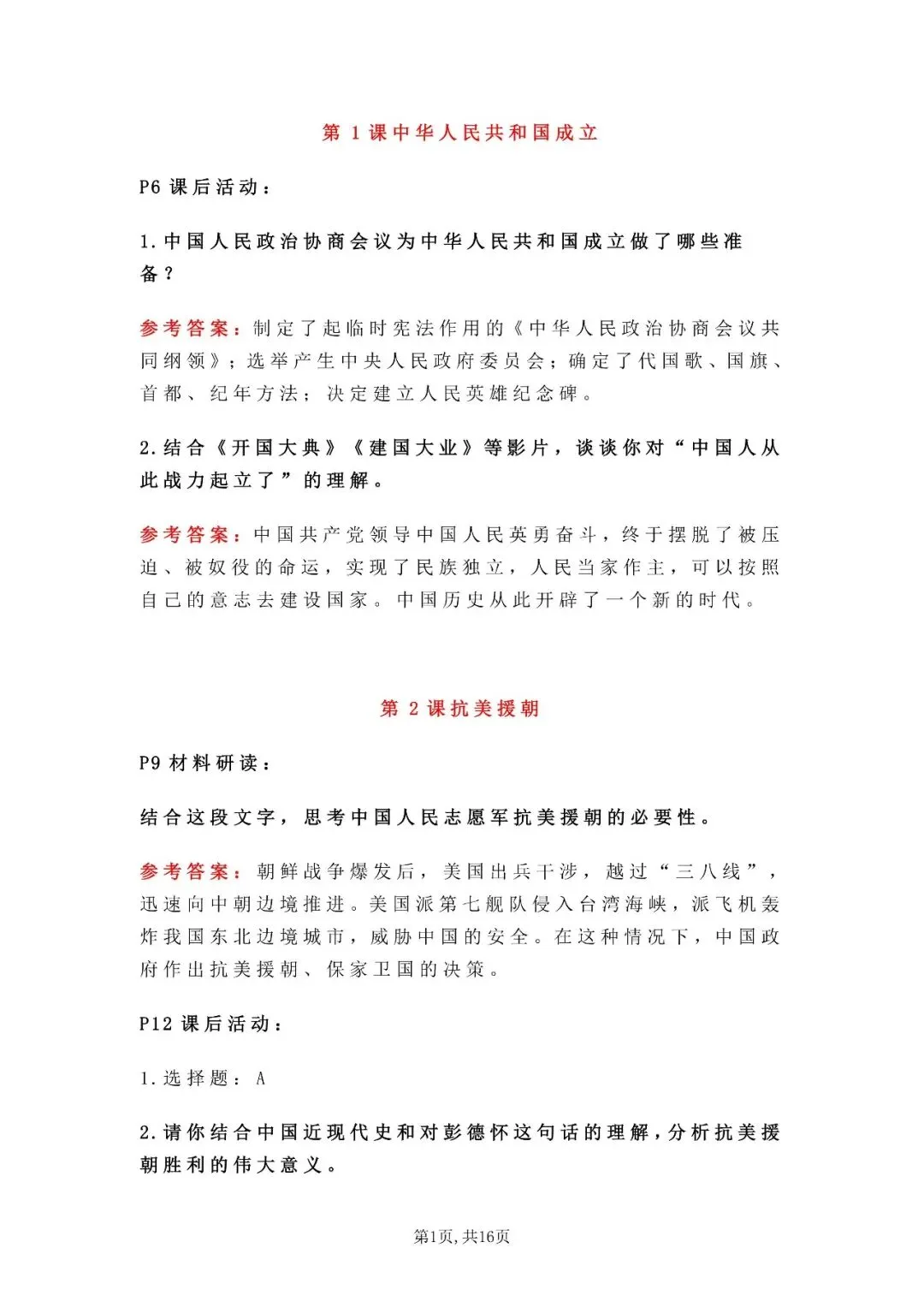 【初中历史】八下历史教材与课后习题参考答案,建议收藏!