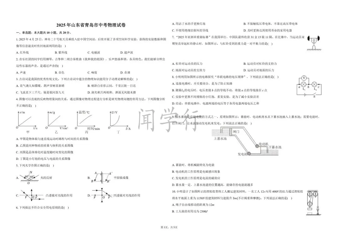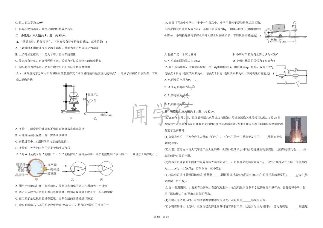 1.D;2.1000 竖直向上